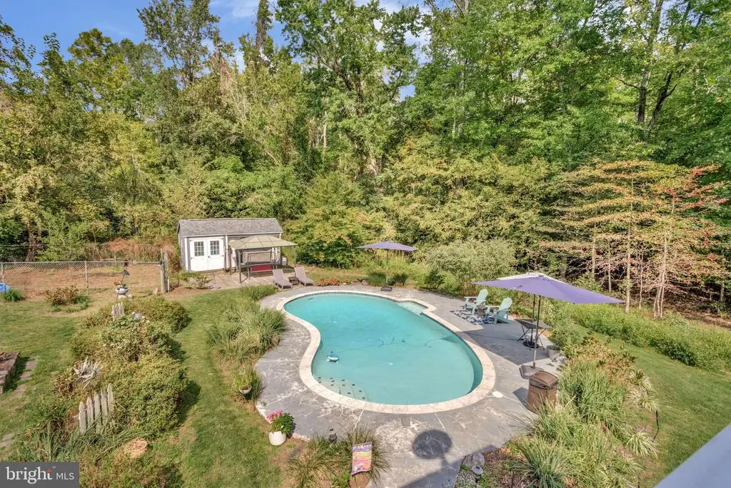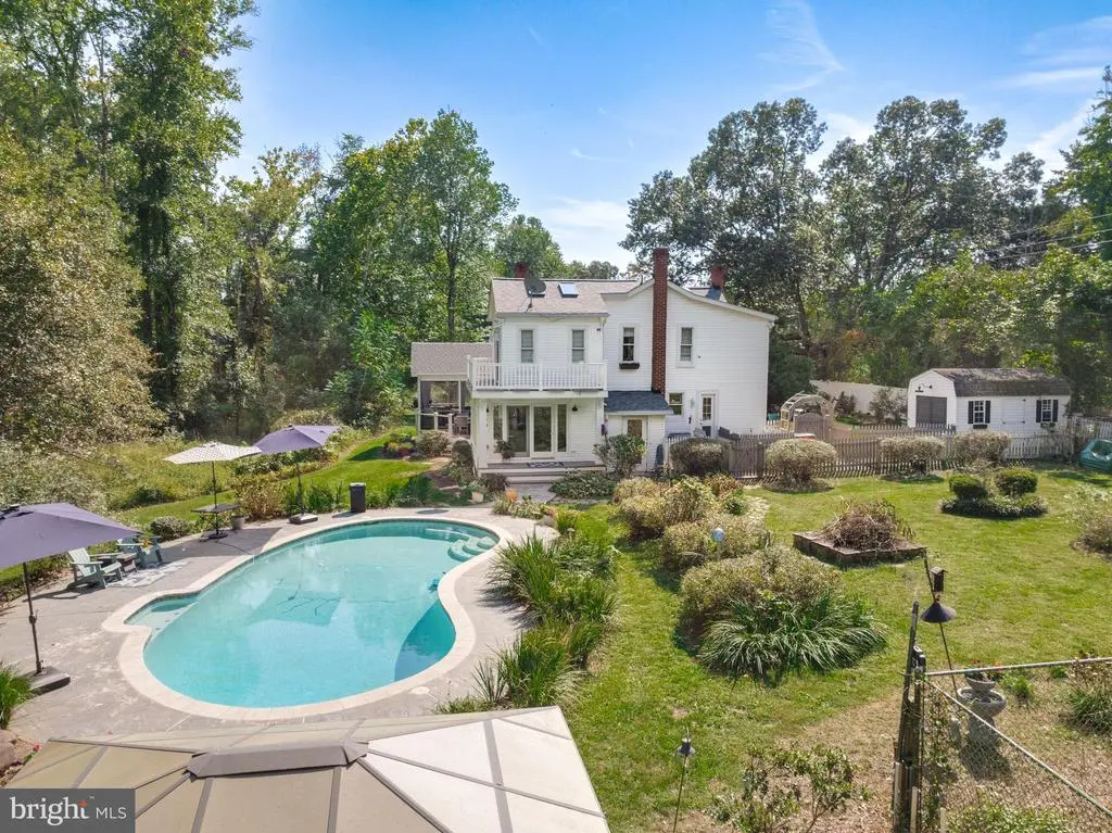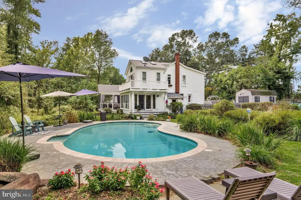 Exquisite property! Situated on 3 acres and surrounded by farmland that ensures captivating views on your drive to/from home, this 2 story home with an in-ground pool is sure to captivate your mind and spark that feeling that you want to call this "home". Recent interior upgrades include, added granite counters in the kitchen, all new stainless steel high end appliances, cabinet hardware, lighting, LVP flooring, renovated primary bathroom, and more. 2 bedrooms on the upper level with the light-filled primary having a vaulted ceiling, skylights, attached full bathroom and personal balcony. The secondary bedroom also has an attached full bathroom, 2 loft spaces overlooking living space below (can be blocked off for privacy) and attached full bathroom. Wait until you see the breathtaking, newly added wrap-around deck that includes spacious front and side covered porches and the open deck area perfect for grilling outdoors. You can sit outside and enjoy nature rain or shine! Landscaped gardens with tons of flowering trees and plants adorn this property and you can even have your own fenced area for chickens! Have a hobby? There’s a very nice shed with electric, ceiling fan and shelving that could be easily used for storage or a trendy “she-shed”, plus 2 more sheds on the property - one for more storage and the other is setup for pool equipment and has an extended roof/patio for the private hot tub! This home is unique and has so much personality. It’s one-of-a-kind!