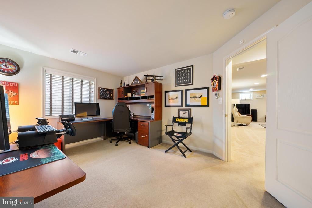 Welcome to 400 Shipyard Way – The Harbours at Solomons Island. Experience refined coastal living in this exquisite Craftsman-style residence, the former builder’s model home, showcasing superior craftsmanship and every available upgrade throughout. Upon entering, the foyer opens to a private home office, ideal for remote work or study. Continuing down the main hallway, you’ll discover a stunning gourmet kitchen and dining area, featuring 42” maple cabinetry with crown molding and hardware, a custom tile backsplash, granite countertops, center island, built-in pantry, and ample space for a large dining table. The two-story family room flows seamlessly from the kitchen, complete with custom built-ins, a gas fireplace with granite surround and mantle, and access to the rear deck—perfect for entertaining or relaxing outdoors. The main-level primary suite offers a true retreat with a tray ceiling, private access to rear deck, and a luxurious en-suite bath boasting a soaking tub, glass-enclosed walk-in shower, dual-sink granite vanity, private water closet, and a linen closet with convenient pass-through to the laundry room. Upstairs, you’ll find three additional bedrooms, a loft library or reading nook, and a full hall bath featuring a dual-sink vanity and ceramic tile shower. The open-concept overlook to the family room below enhances the sense of spaciousness and light. The finished lower level is an entertainer’s dream, complete with a media room with surround sound, a large recreation area with built-in wet bar, granite countertops, sink, and refrigerator. A fifth bedroom, full bath, and generous storage area with home utilities complete this level. Exterior highlights include: Lawn irrigation system, Kohler whole-home generator, Expansive rear deck with retractable SunSetter awning, Front brick porch, Extended concrete driveway for additional parking, Extensive hardscaping, Front-load garage with epoxy flooring and automatic openers, Corner lot with one of the largest lawns in the community. Additional interior features include custom window treatments, recessed lighting, transom windows, crown molding package, security system, hardwood, ceramic tile, plush carpeting, and abundant storage on all levels. Community amenities include a clubhouse, fitness center, swimming pool, community pier for fishing and crabbing, kayak/canoe launch, sidewalks, manicured common areas, and a marina offering discounted boat storage and slips. HOA fees also include personal lawn care, ensuring a truly maintenance-free lifestyle. Located in a 55+ community (with up to 20% of homes available for residents under 55 with other restrictions still applying), this home offers the perfect blend of comfort, convenience, and coastal charm. Enjoy close proximity to PAX River Naval Air Station, Solomons Island, fine dining, beaches, boardwalks, shopping, parks, museums, concert venues, local wineries, and theaters—everything Southern Maryland has to offer. Every detail of this home reflects the builder’s pride and attention to excellence, making 400 Shipyard Way a true showcase property.