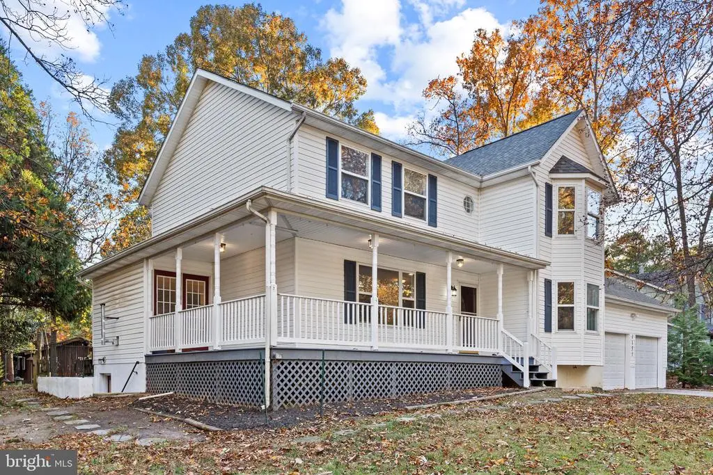 Discover peace, privacy, and space in this charming 4-bed, 2.5-bath farm house style with a wraparound porch. This home is situated on a FLAT wooded 0.67-acre lot in Chesapeake Ranch Estates. Enjoy an open layout, spacious bedrooms, finished lower level, and attached 2-car garage. Outdoor living shines with a level yard surrounded by trees—ideal for play, pets, or gardening dreams. Neighborhood perks include two private Chesapeake Bay beaches, Lake Lariat, walking trails, and community events. Minutes to Solomons Island, dining, and NAS Patuxent River. Experience the best of Calvert County living—nature, neighbors, and a home that fits your lifestyle.