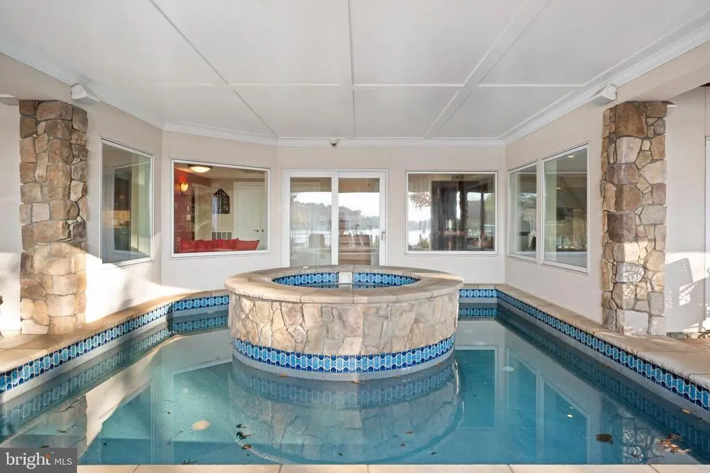 Welcome to your over 4500 sq ft dream waterfront on the deep, navigable waters of Mill Creek! A show-stopping Mediterranean masterpiece with an almost 200 ft pier… bring ALL the water toys! Every inch of this one-of-a-kind waterfront estate was designed for elegance, entertainment, and effortless living. Step through the grand mahogany doors and immediately take in the sweeping water views that frame the heart of the home. The main level showcases rich exotic Bubinga wide-plank flooring, custom built-ins, and open, light-filled spaces that invite you to gather, dine, and unwind. Tray ceilings with built-in lighting and abundant recessed lights set the perfect mood. The inviting family room features a gas fireplace, built-in shelving, and captivating views of the water. The gourmet kitchen is as stunning as it is functional… featuring travertine flooring, inset cabinetry, and professional-grade top-of-the- line appliances including Sub-Zero, Wolf, and Miele. Just beyond, the multiple living areas open to expansive decks overlooking the water — perfect for morning coffee or sunset cocktails. The entire second level is dedicated to the primary suite, offering two private balconies, a wet bar and beverage center, office area, spacious sitting area, dual closets, and a spa-inspired bath complete with heated travertine floors, a soaking tub, and a walk-through shower with a steamer. The upper level includes three spacious bedroom suites, each with their own private bath and gorgeous water views. Bring the party to the basement level where the memories are made — an entertainer’s dream with a custom bar, media and game spaces, and a private saltwater plunge pool and spa that can be enjoyed year-round. The pier includes two slips, a 12-ft boat lift, 50-amp shore power, and approximately eight feet of water depth, ideal for all the boating and waterfront adventures. With thoughtful details throughout, this home offers many other luxury features such as an elevator, generator, high efficiency 3-zoned HVAC with separate controls per room, 10 and 9 ft ceilings throughout, Ipe decking, tons of outdoor hardscaping, speaker system throughout entire house, and a laundry chute! Additional nearby lot with a shed for storage and water toys convey. A rare opportunity to own a remarkable waterfront residence that effortlessly blends luxury, comfort, and coastal living. Welcome to the good life on Mill Creek!