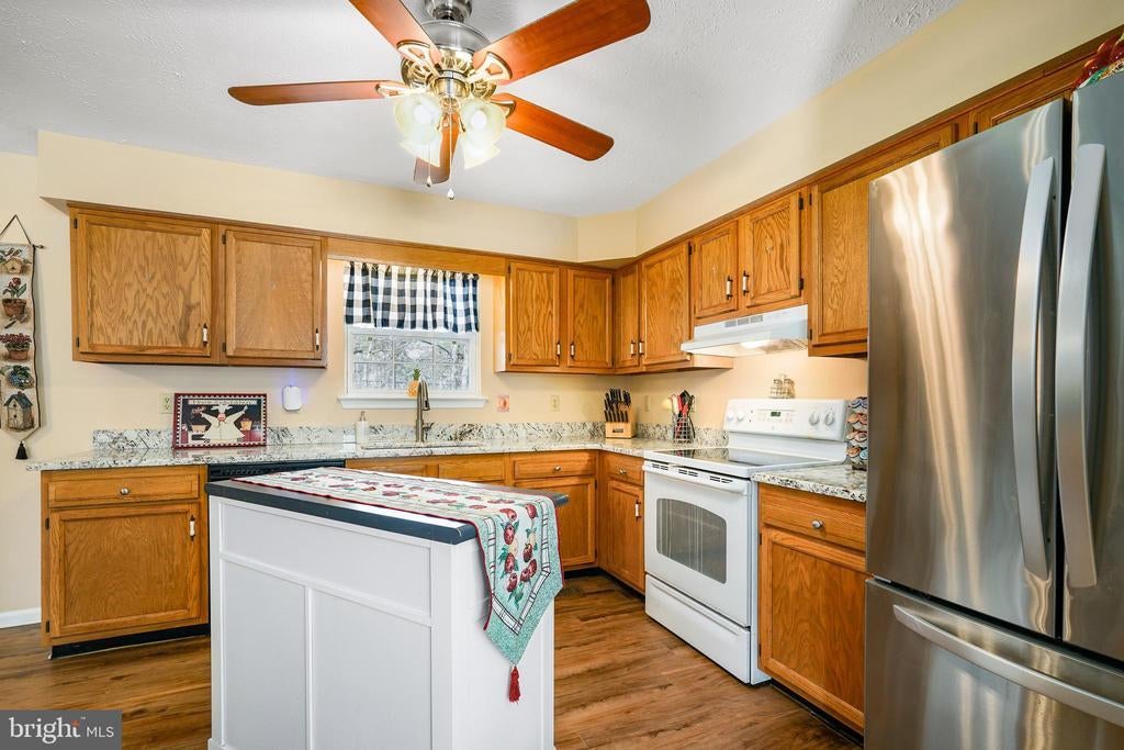 Dishwasher, Dryer, Exhaust Fan, Freezer, Oven/Range-Electric, Range hood, Refrigerator, Stove, Washer, Water Heater