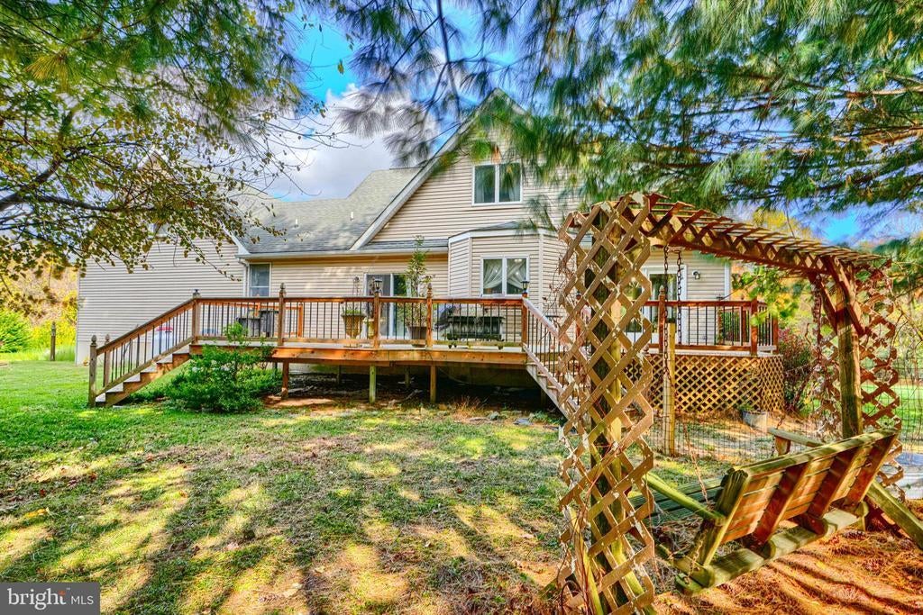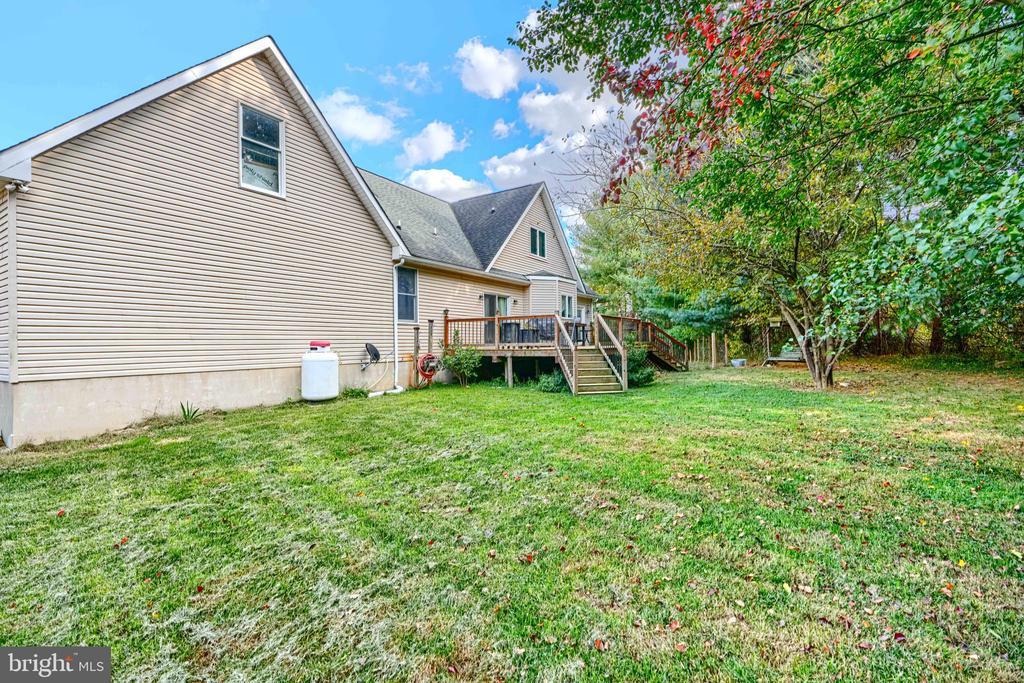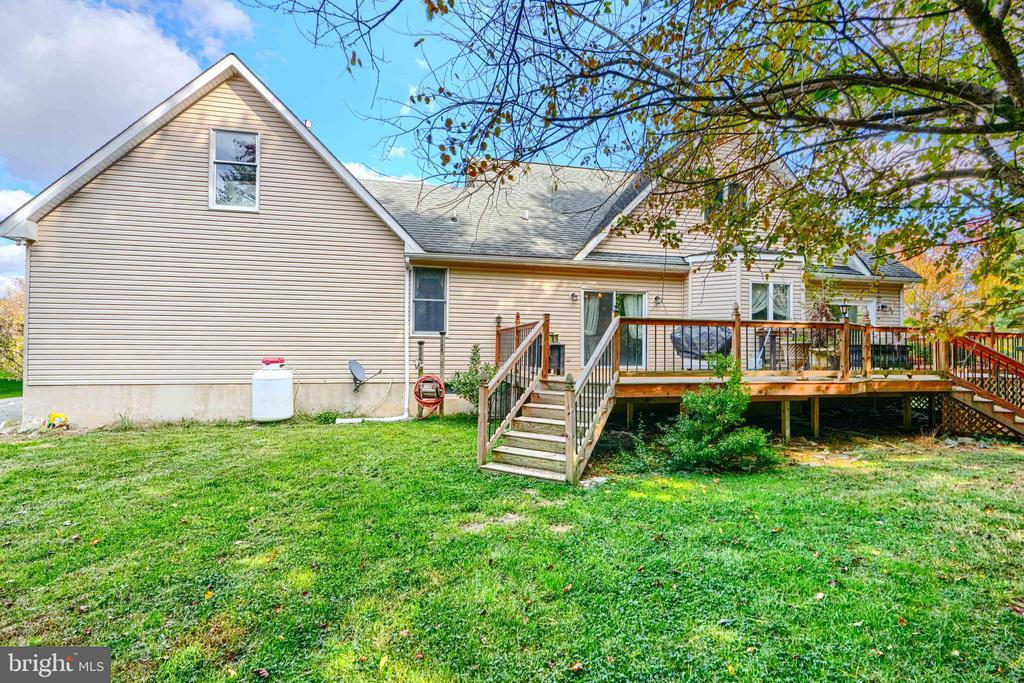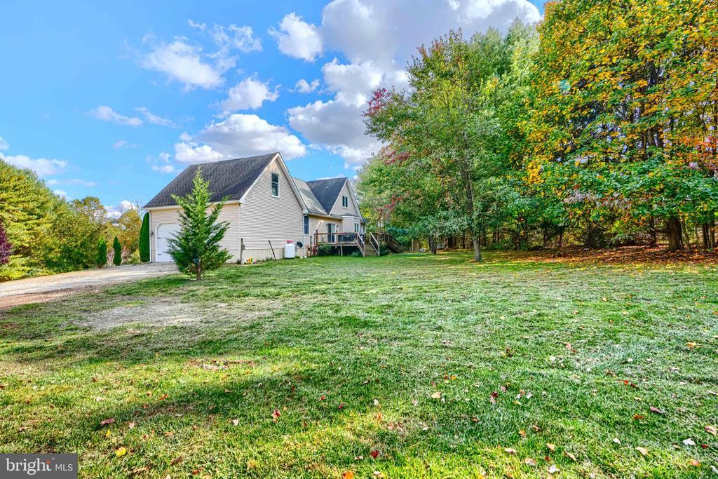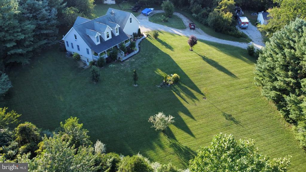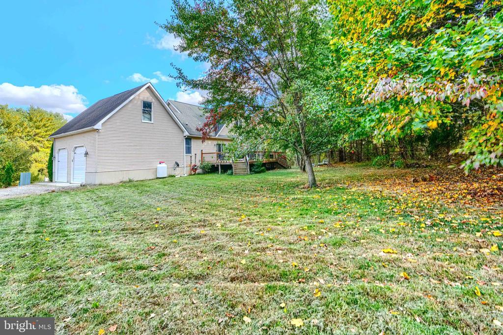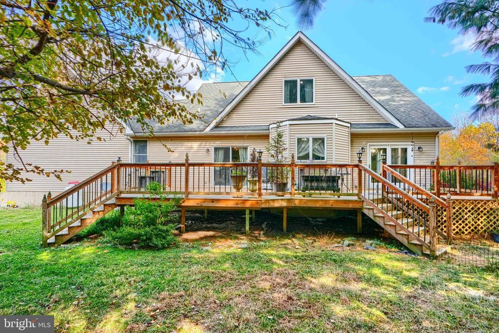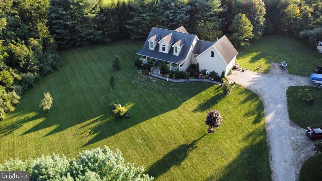 Spectacular Cape-cod with main level bedroom and bathroom, laundry and additional half bathroom, large living room and formal dining room, kitchen and breakfast room. Nine foot ceilings on main level and two-story foyer. The second floor features two large bedrooms and a full bathroom. The full, unfinished basement has a walk out to the partially fenced yard. Large front porch, large deck and oversized garage on 2 acres. Garage is heated with propane, tank is leased. This is an estate sale and does need some TLC and is being sold AS-IS. Loads of potential! Long driveway to a private setting, backing to trees.