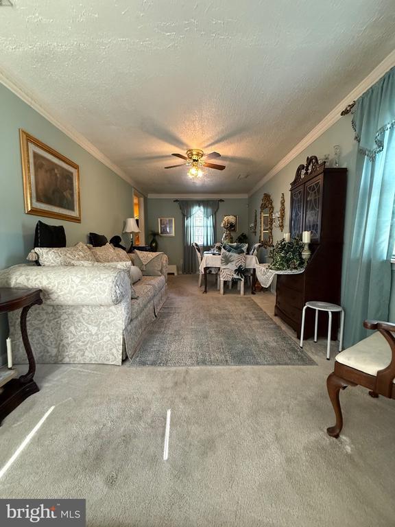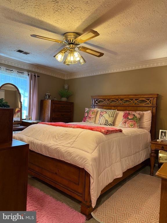 Tub Shower, Carpet, CeilngFan(s), Crown Molding, Entry Lvl BR, Shades/Blinds