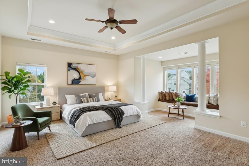 Chair Railing, Crown Molding, Master Bath(s), Stall Shower, Soaking Tub, Built-Ins, Carpet, CeilngFan(s), Recessed Lighting, Walk-in Closet(s), Wet Bar/Bar, Wood Floors