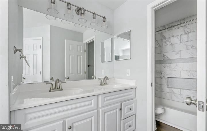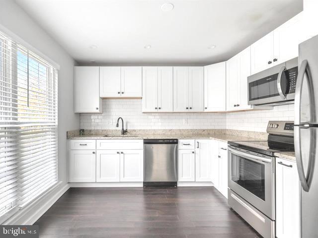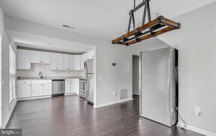 Welcome to this beautiful 3-bedroom, 2.5-bathroom home tucked away on a quiet cul-de-sac. This spacious property offers comfort, style, and modern upgrades throughout. Step inside to sunlit rooms, durable engineered wood floors on the main level, and wall-to-wall carpet upstairs. The updated, open kitchen with its stylish tile backsplash and granite countertop features stainless steel appliances and plenty of space for cooking and entertaining. Throughout the home, you’ll notice sophisticated touches throughout, including but not limited to unique modern fixtures and updated bathrooms. The spacious owner’s suite is a private retreat, featuring a modern split bathroom design, with a separate vanity area and a private toilet/shower room. This home offers a cozy, vacation home vibe, convenient to shopping and all major transit routes. Make it yours TODAY!