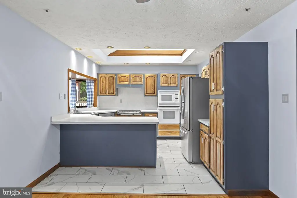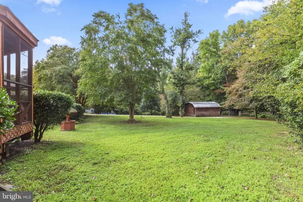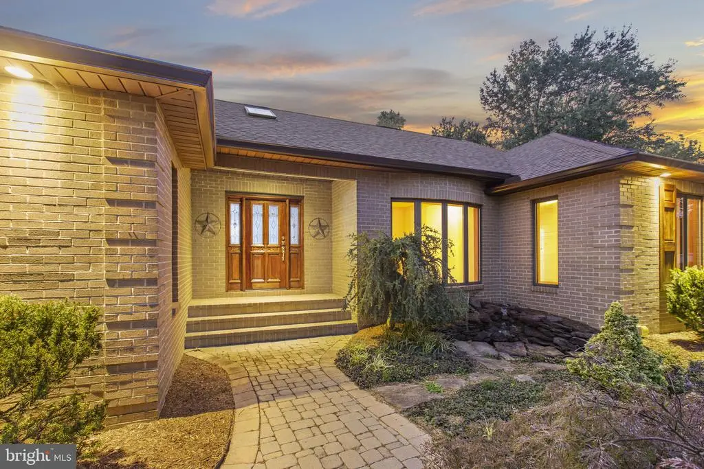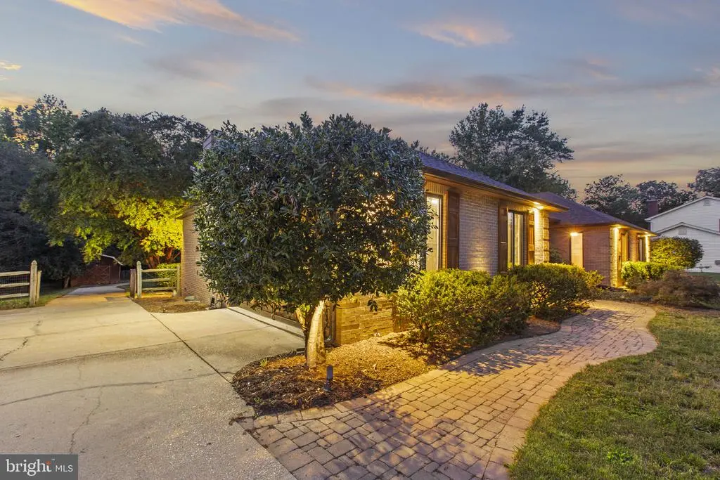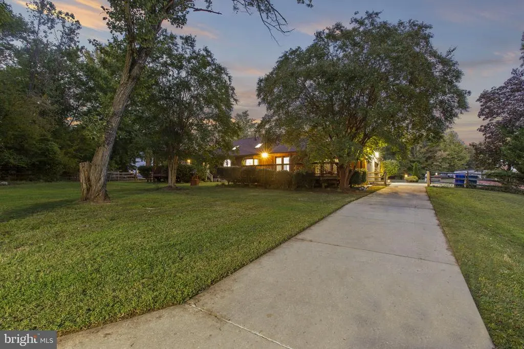 Welcome to 212 Morgans Ridge Ct, a one-level all-brick ranch with new hardwood and tile flooring throughout, a new roof, fresh paint, and a brand new deck to be installed. This home sits on 1.55 acres just outside the La Plata town limits; no HOA fees or town taxes! The impressive great room is the heart of this home, boasting a wood-beamed vaulted ceiling, a brick fireplace, and built-in shelves. A spacious deck overlooking the large, fully-fenced backyard can be accessed from both the dining and great rooms. The current deck will be renovated by the sellers in the coming weeks. The home offers three bedrooms away from the main living area for added privacy. The primary suite includes a walk-in closet and an ensuite with a jetted tub, double sinks, and a walk-in shower. French doors in the primary suite lead to a second private deck with a screened gazebo. A bonus room off the foyer can be used as a formal living room, den, office, or fourth bedroom. Exterior highlights include refinished shutters and front door, a koi pond with a fountain, sprinkler system, and landscaped lighting. The garage and concrete driveway offer ample parking and a 50-amp RV outlet. The driveway extends into the backyard to a large shed/workshop, which is complete with electricity, exhaust fan, ceiling fan, and loft storage. There is an extra parking pad, perfect for even more recreational vehicles. Come see this lovely home today.