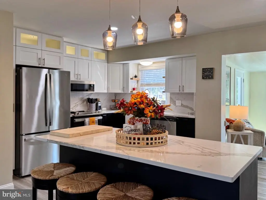 Beautifully maintained home offering 3 bedrooms and 2 full bathrooms, including a spacious primary suite with its own private bath. Fully renovated just 3 years ago, this home combines modern updates with thoughtful upgrades throughout. Inside, the kitchen is a true centerpiece with a large quartz island, stainless steel appliances, and plenty of custom-built cabinet space. Just off the kitchen, the sunroom provides a bright and inviting spot to relax or entertain. Durable luxury vinyl plank flooring runs throughout the entire home—no carpet anywhere—and both bathrooms are finished with gorgeous tiled showers. Step outside and enjoy multiple outdoor living spaces with three composite deck areas—one along the side of the home and two flanking the sunroom. The backyard retreat features a hot tub, above-ground pool, fenced yard, and a patio just off the garage. Car enthusiasts and hobbyists will love the 32x30 detached garage, complete with a vehicle lift in the center bay, ductless mini-split system, 100-amp service, and a 50-amp RV hookup. Additional highlights include a large asphalt parking area, metal roof and gutter guards on both house and garage, encapsulated crawlspace with dehumidifier, and a well-kept shed for extra storage. This home truly offers the perfect blend of comfort, function, and outdoor enjoyment.