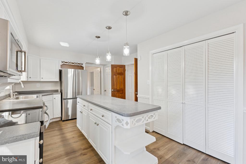 Welcome to this stunning 4 Bedroom, 2 Bath Cape Cod, perfectly blending classic charm with modern living. Newly renovated, every detail has been thoughtfully curated to create a warm and refined living experience. Step inside to an inviting layout featuring beautiful new LVP flooring that flows seamlessly throughout and a gorgeous eat-in kitchen with large island, corian counters, and stainless steel appliances. This home offers a spacious main level bedroom and full bath, making it perfect for a variety of living arrangements. Other features include a charming den/family room with cozy wood burning fireplace, large separate dining room for family gatherings, and a sun-drenched living room with plantation style blinds. Upstairs, you'll find the primary bedroom with beautifully refinished hardwood floors and walk-in closet, a spacious full bath with super shower, and two generously sized bedrooms. Relax & enjoy summer entertaining on the large deck overlooking the in-ground pool & sprawling fenced backyard! There is plenty of storage in the one car garage and shed. Perfect commuting location & close to shopping, restaurants and more! Don't miss your opportunity to be the proud new owner of this stunning home!