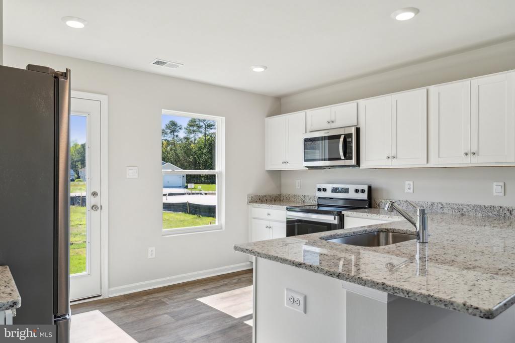 Discover the Perry in Kinnamon Meadows, a soon-to-be-built 1,059 square foot open concept cottage-style ranch home, offering two bedrooms and two bathrooms at 124 Parkland Road in Greensboro, MD. A welcoming front porch leads you into the spacious living room that seamlessly flows into the kitchen, creating a perfect space for entertaining guests or enjoying family time. The well-equipped kitchen is complete with modern gray cabinetry, granite countertops, stainless steel appliances, a spacious peninsula island with room for seating, and a corner pantry. The large main bedroom is a retreat in the back of the home; its private bathroom has a double bowl vanity, shower, and an impressive walk-in closet. The second generously sized bedroom is in the front of the home along with a full bathroom and linen closet. The laundry room is tucked away near the entrance of the home. The included white blinds and an innovative Smart Home package will give you complete peace of mind living in your new home. Pictures, artist renderings, photographs, colors, features, and sizes are for illustration purposes only and will vary from the homes as built. Image representative of plan only and may vary as built. Images are of model home and include custom design features that may not be available in other homes. Furnishings and decorative items not included with home purchase.