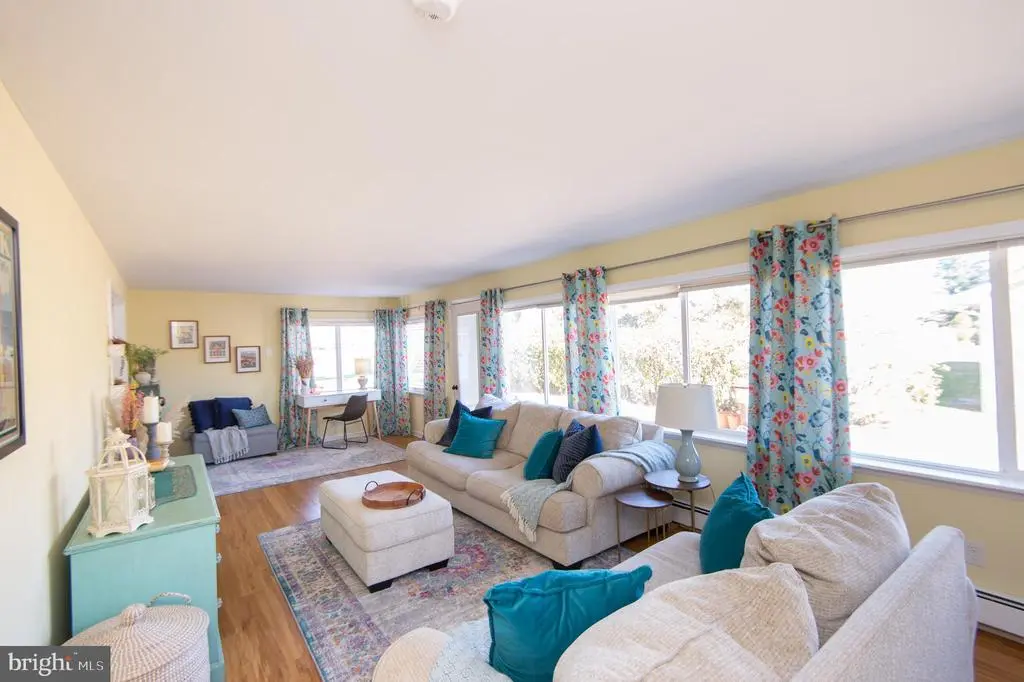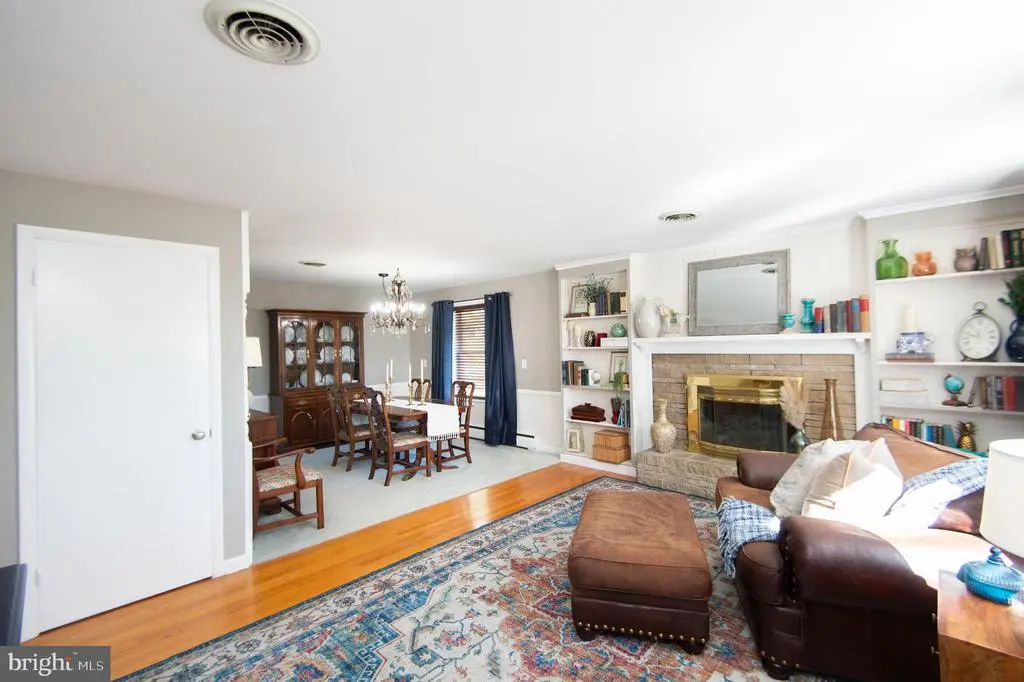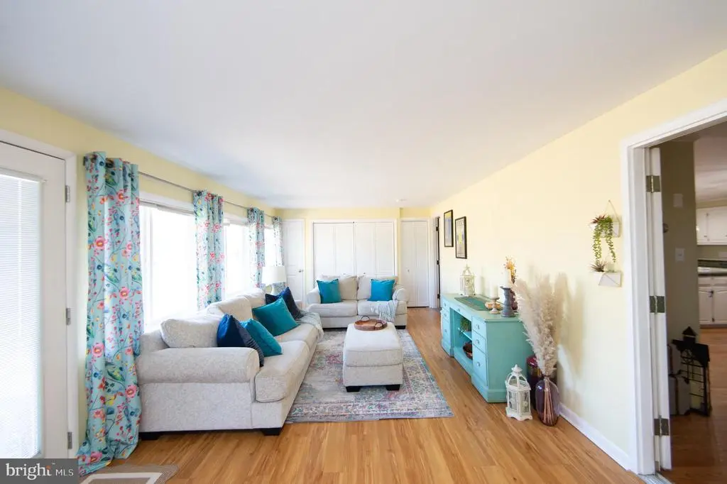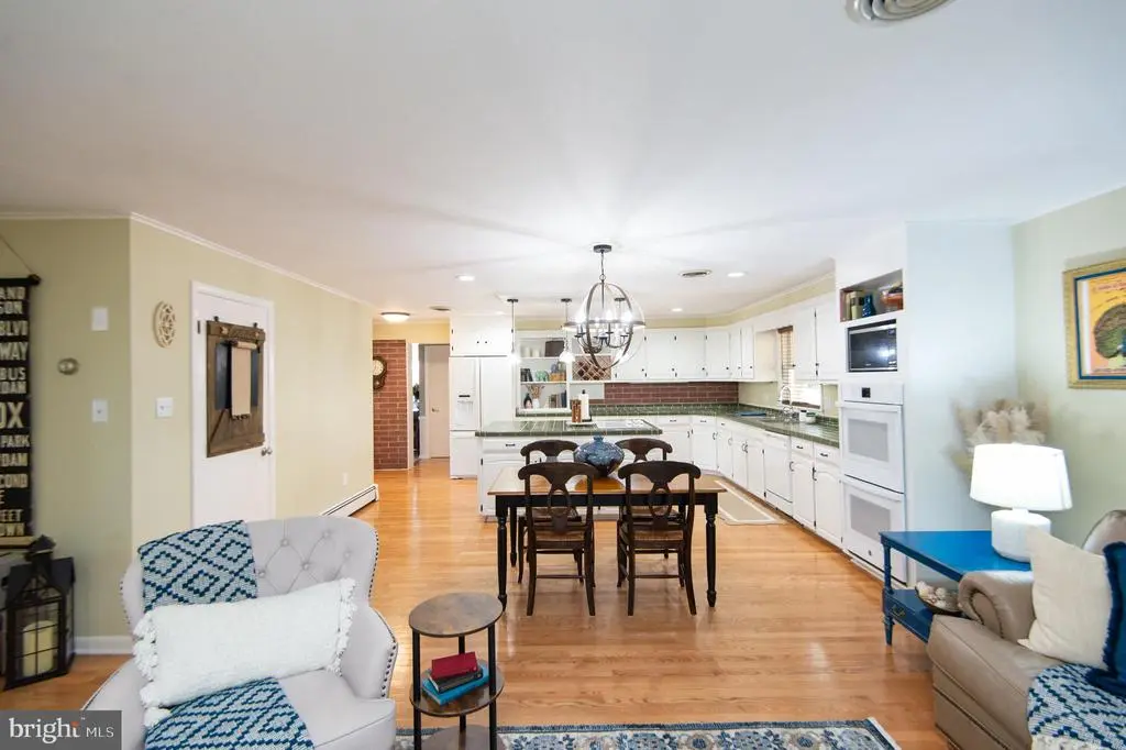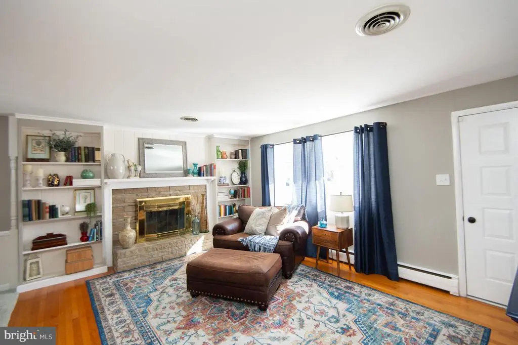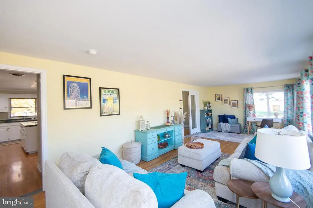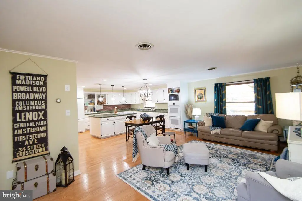 Beautifully maintained and move-in ready 2BR/1.5BA expanded Rancher on a sprawling lot in the open landscape of Wright's Wharf. Pull into the long driveway that wraps around to the attached two-car garage, make your way past lush green lawns, adult trees and landscaping, on the way to the front door of your forever home. Step inside to a home with tons of natural light, recessed lighting, an open floor plan, a soft color palette, and hardwood floors. The main living space offers a spacious living room with a stacked stone wood burning fireplace surrounded by custom built-in shelving, a large dining room with chair railings, a half bath, and the heart of the home, an open concept family room, breakfast area, and kitchen. The kitchen offers plenty of cabinets and countertops, a separate pantry closet, newer appliances including an electric cooktop and a double wall oven, a double sink under a window, and an island with pendant lights. Down the hall is a large secondary bedroom, a larger primary bedroom featuring a walk-in closet, and a full bath. Just off the family room is an enclosed sunroom that looks out over the vast landscape and the wonder of nature. The lower level is clean and dry with so many possibilities as your family's needs grow. The yard offers plenty of acreage with so many possibilities. This home is ideal for any new homeowner and is located in close proximity to shopping, restaurants, and commuter routes.
