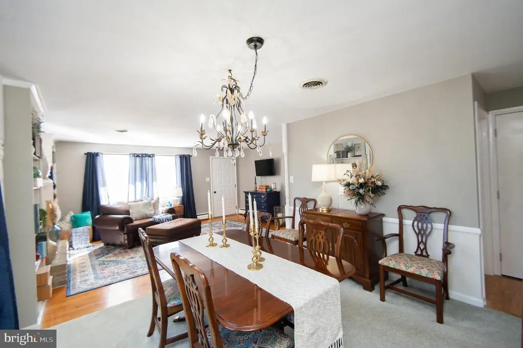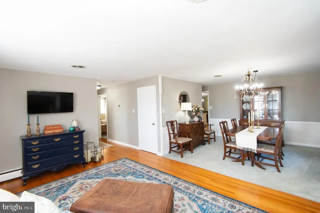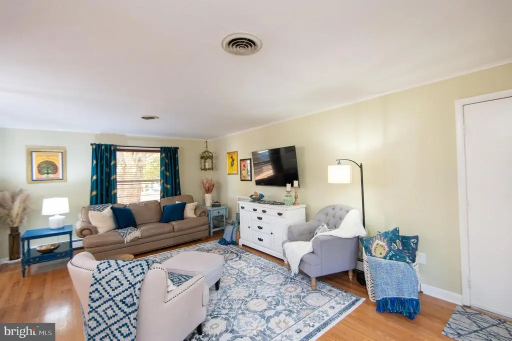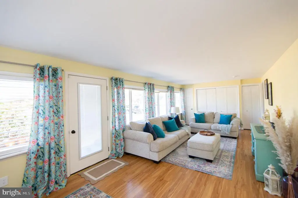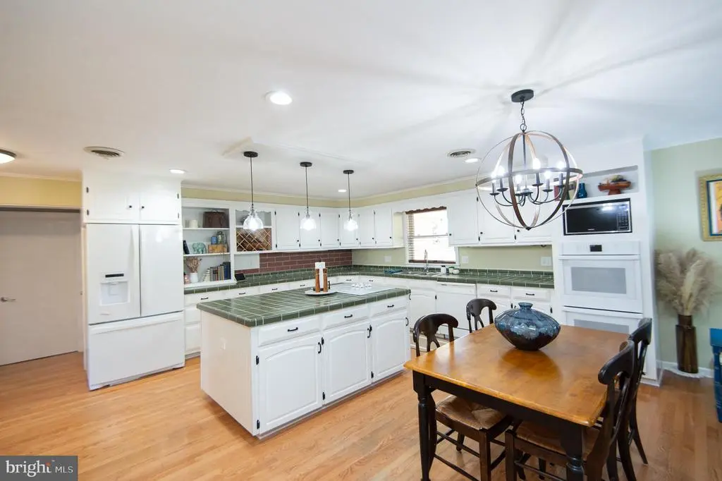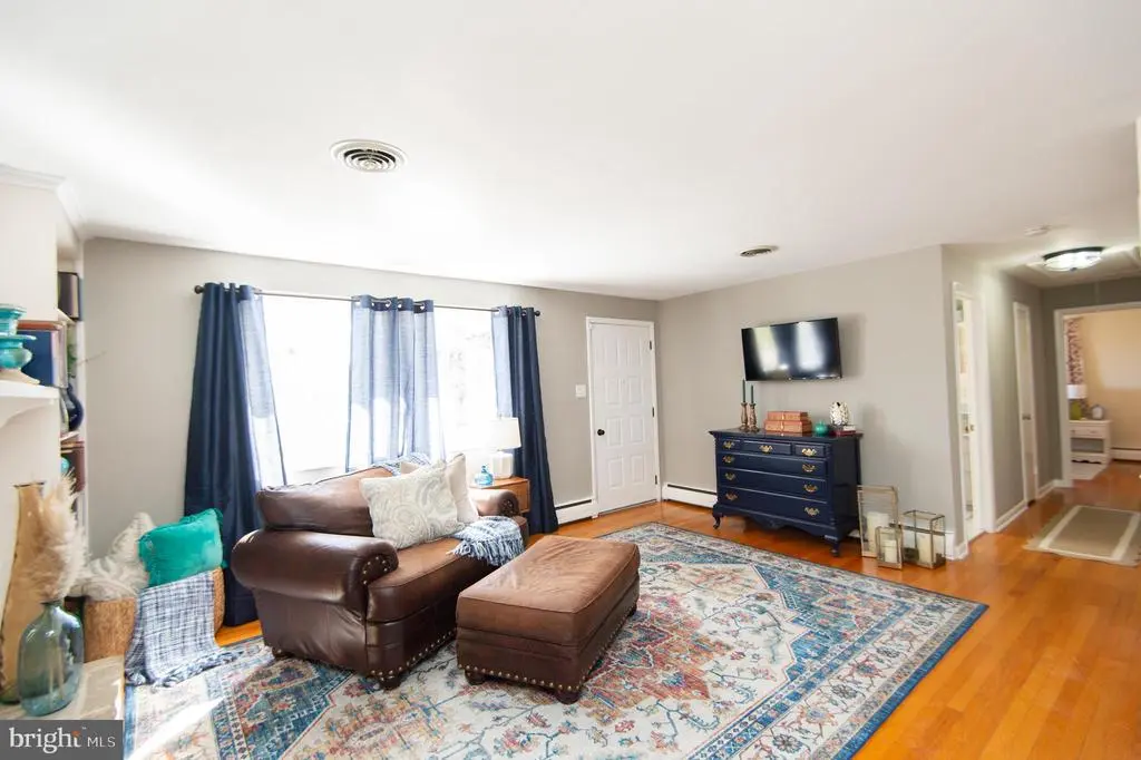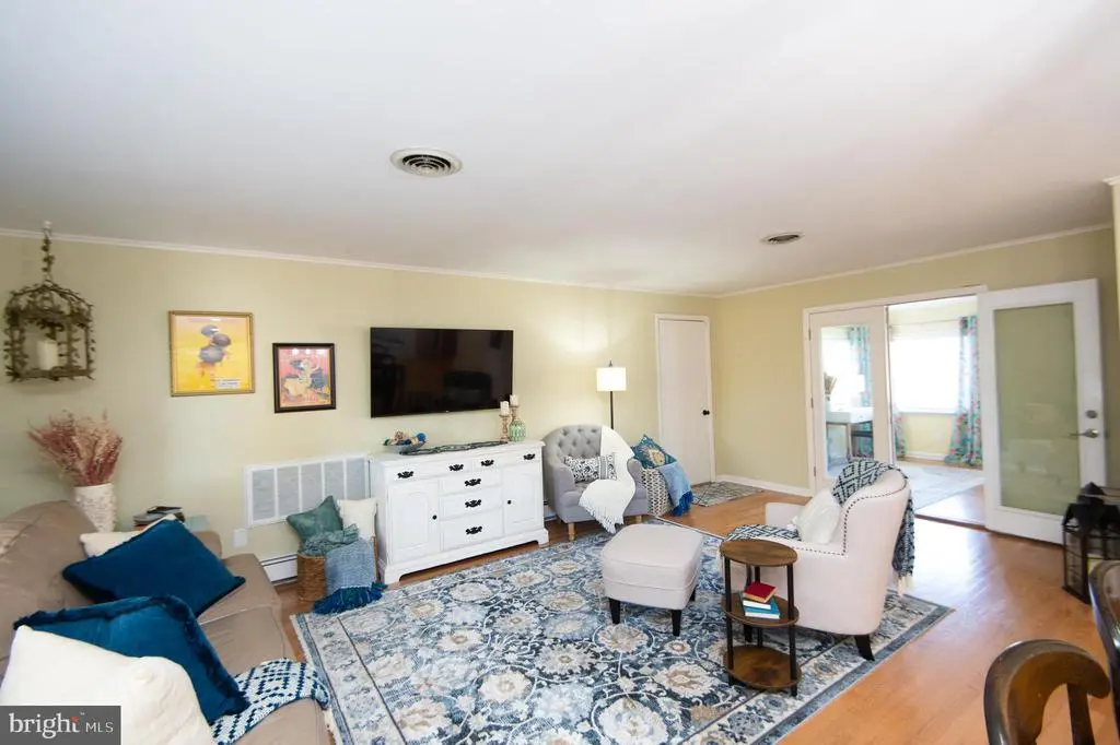 Beautifully maintained and move-in ready 2BR/1.5BA expanded Rancher on a sprawling lot in the open landscape of Wright's Wharf. Pull into the long driveway that wraps around to the attached two-car garage, make your way past lush green lawns, adult trees and landscaping, on the way to the front door of your forever home. Step inside to a home with tons of natural light, recessed lighting, an open floor plan, a soft color palette, and hardwood floors. The main living space offers a spacious living room with a stacked stone wood burning fireplace surrounded by custom built-in shelving, a large dining room with chair railings, a half bath, and the heart of the home, an open concept family room, breakfast area, and kitchen. The kitchen offers plenty of cabinets and countertops, a separate pantry closet, newer appliances including an electric cooktop and a double wall oven, a double sink under a window, and an island with pendant lights. Down the hall is a large secondary bedroom, a larger primary bedroom featuring a walk-in closet, and a full bath. Just off the family room is an enclosed sunroom that looks out over the vast landscape and the wonder of nature. The lower level is clean and dry with so many possibilities as your family's needs grow. The yard offers plenty of acreage with so many possibilities. This home is ideal for any new homeowner and is located in close proximity to shopping, restaurants, and commuter routes.