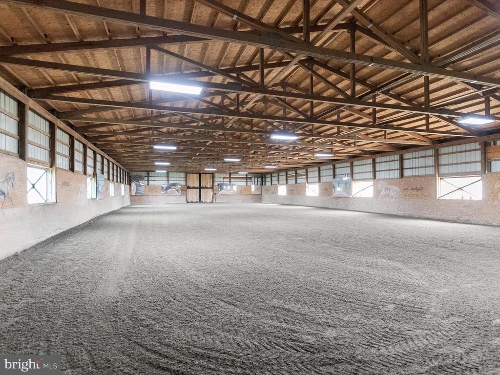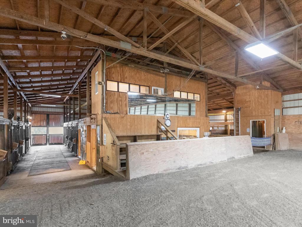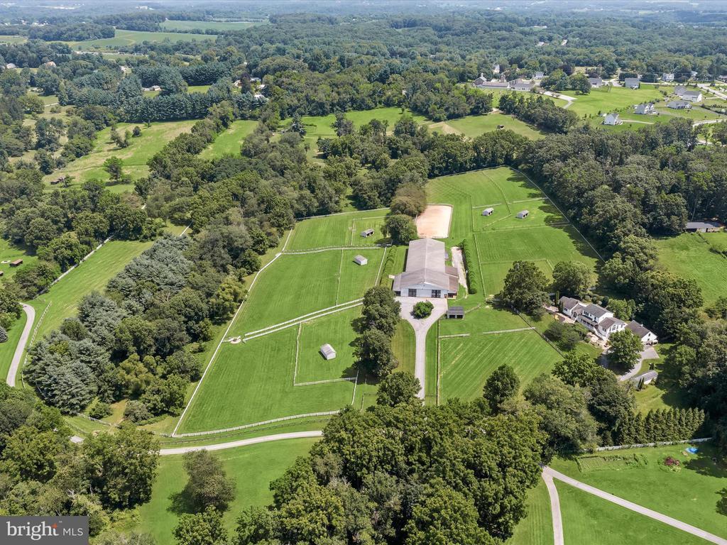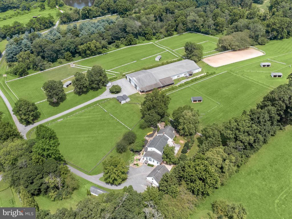 Welcome to 1955 Valhalla Drive, a breathtaking 25-acre horse farm tucked away at the end of a long private driveway in a peaceful, secluded setting. This exceptional property offers the perfect blend of equestrian functionality and refined residential living. The farm features a gorgeous 10-stall barn with attached individual runs for each stall and infrastructure in place to expand to 13 stalls as three stalls are oversized. The thoughtful equestrian amenities include a wash stall with hot and cold water, a heated lounge and tack room, ample loft storage, and custom lockers. The indoor arena features a custom blend of rubber and sand footing, LED lighting, mirrors, and viewing stands perfect for hosting clinics or teaching lessons. The climate-controlled lounge in the barn offers a warm gathering space with oak cabinetry, a kitchenette, and vinyl flooring. Additionally, there is a separate feed room with custom cabinetry and shelving and multiple equipment and hay storage nooks carefully placed in the barn for ease of care of the horses on a daily basis. Additionally, there is a bathroom with full laundry in the barn perfect for clients and guests, and an incredible amount of storage for barn equipment, tractors, and hay as well . Need extra stalls? There is plenty of room to expand either by converting the three oversized stalls or adding stalls in the storage area attached to the main barn. See the included floor plans for measurements and possibilities. The barn operates on a separate electric meter and is served by its own well and septic system. The property also includes multiple storage sheds and safely fenced pastures each with run-in sheds surrounded by a combination of wood and vinyl fencing and a full size 20 x 60 meter sand outdoor riding arena, making it ideal for both casual and competitive equestrian pursuits. The custom-built 5 bedroom, 3 full and 2 half bath home offers nearly 5,000 square feet of living space with fresh neutral paint throughout. The kitchen is designed for everyday living and entertaining, offering ample cabinetry, dual wall ovens, a large five-burner Kenmore range, and stunning views of the pastures. A spacious great room with vaulted wood ceilings sits just off the kitchen and offers access to the mud room, while a separate large living room with vaulted wood ceilings and a wood-burning fireplace provides a warm and welcoming gathering space. The first-floor primary suite features a large custom dressing room and a spa-like en suite bath with dual vanities and a custom tile shower. The first-floor laundry room with storage adds everyday convenience. The unfinished basement includes a powder room and several additional rooms that can easily be converted into a home office, gym, or home theater. Upstairs, you’ll find four additional bedrooms, including a junior suite with an en suite bath and walk-in closet. A secondary full bath is located off the hall and serves the other three bedrooms. One of the upstairs bedrooms includes a built-in sink, and was previously an art studio, offering flexible space that can be repurposed to suit your needs. Outside, the home is flanked by gorgeous perennial gardens, a large two story detached three car garage, a charming wooden bridge to the barn, and manicured lawns as well as a large rear deck and patio with a grilling station. Xfinity internet serves the home and barn ensuring connectivity. This is a rare opportunity to own a fully appointed, private equestrian estate with such attention to detail and meticulous care. Whether you’re a professional equestrian seeking a permanent base of operations, a discerning competitor looking for top tier accommodations for you and your show horses, or someone simply looking for peaceful country living with luxurious farm amenities, 1955 Valhalla Drive has so much to offer. Shown by private appointment only. Please no drive bys. Sale includes two parcels and totals 25.38 acres.