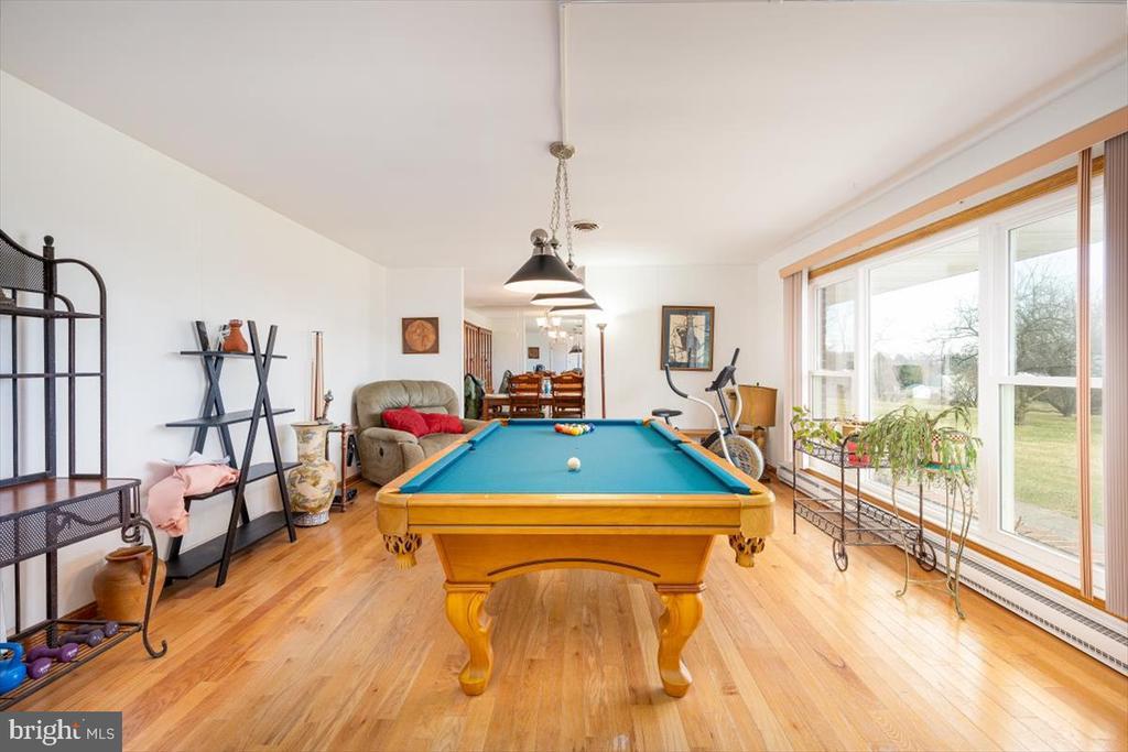 PRICE REDUCED, GREAT DEAL! + Seller just added an extra 1/2 Bath in the Basement!! This unique 90 foot all brick rancher sits on 5.4 acres and is located in the heart of Finksburg with so much to offer any buyer. As you enter the home you will notice the large living room to the left, then 3 nice size bedrooms, 2 full bathrooms off to the right side. Continue through the cozy family room that includes a brick wood burning fireplace and a french door that leads to the 3-season room. Nice hardwood floors throughout. The kitchen was renovated just a couple years ago with quartz counter tops, all wood/soft close cabinets & drawers plus all new SS appliances. It includes an island and ceramic tile floor as well. Off of the kitchen is a large pantry, laundry area w/ a drop-down table for folding and a powder room. There is an interior access door to the garage, a staircase to the basement and an exterior door leading to an enclosed area that could be used as a mudroom. There is a separate dining room off the kitchen that connects around to the living room. The fully finished basement runs the length of the house, with a wood stove, utililty room and 2 extra bedrooms. The suspended ceiling is brand new, the floor has been sealing and all the walls painted. The 3 season room is located off the family room, includes skylights and a ceiling fan. It leads you to the enclosed, in-ground, heated pool. When the heater is turned on it helps to heat the 3 season room in the winter and was just replaced recently. This home sits on a flat lot, has a fenced area perfect for pets and fruit trees (3 pear, 3 apple and 1 peach). The Barn is maintainence free, 40x30 and has 8 stalls. Many upgrades to this impressive property with room to add your own touches. Don't miss it, set an appointment today!