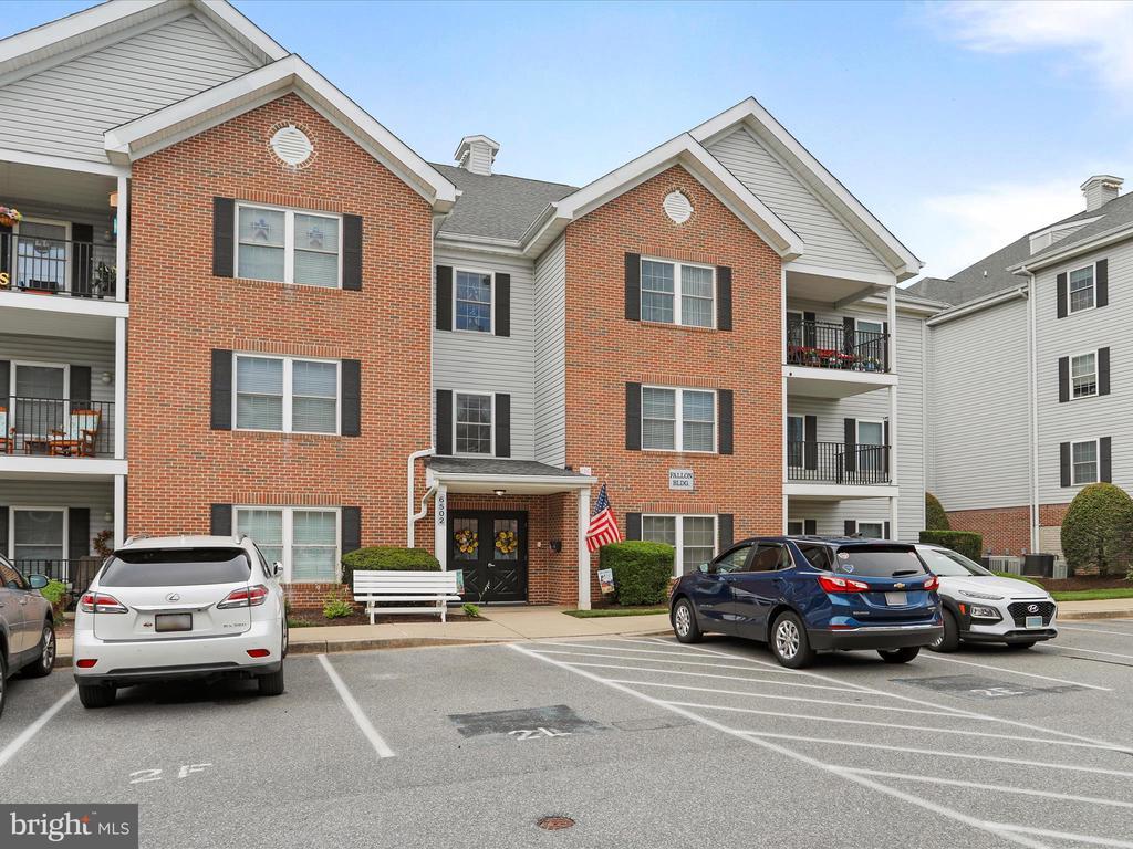 Welcome to Nells Acres, a peaceful 55+ community in Sykesville. Convenience is everything here—this condo is the very first door on the right as you enter the secure building, with your assigned parking spot located just steps from the front entrance. Daily errands and coming and going couldn’t be easier. Step inside to an open living space with updated flooring, a cozy gas fireplace, and sliding glass doors that lead out to your private patio. The kitchen features granite counters, a double sink, and newer appliances, including a fridge, oven, and microwave. The layout flows into a separate dining area and a laundry space with an upgraded Samsung washer and dryer. Down the hall, you'll find two bedrooms and two full baths, including an primary suite with two closets and a newly installed shower surround. Additional perks include a dedicated storage unit in the basement (100 CF), one reserved parking spot, and plenty of guest parking nearby. Residents also enjoy access to a community clubhouse with a meeting room, fitness space, and game area. Roof replaced in 2022, water heater in 2017, and HVAC has been maintained regularly. Easy, comfortable living in a well-kept setting.