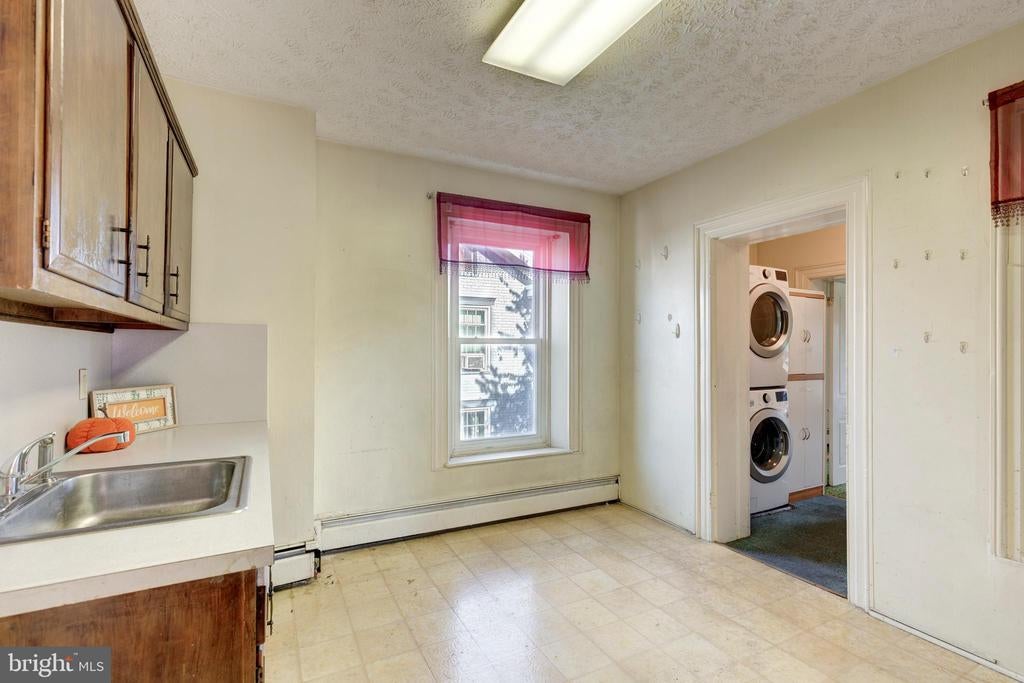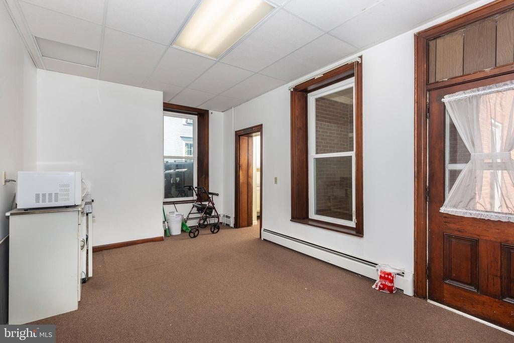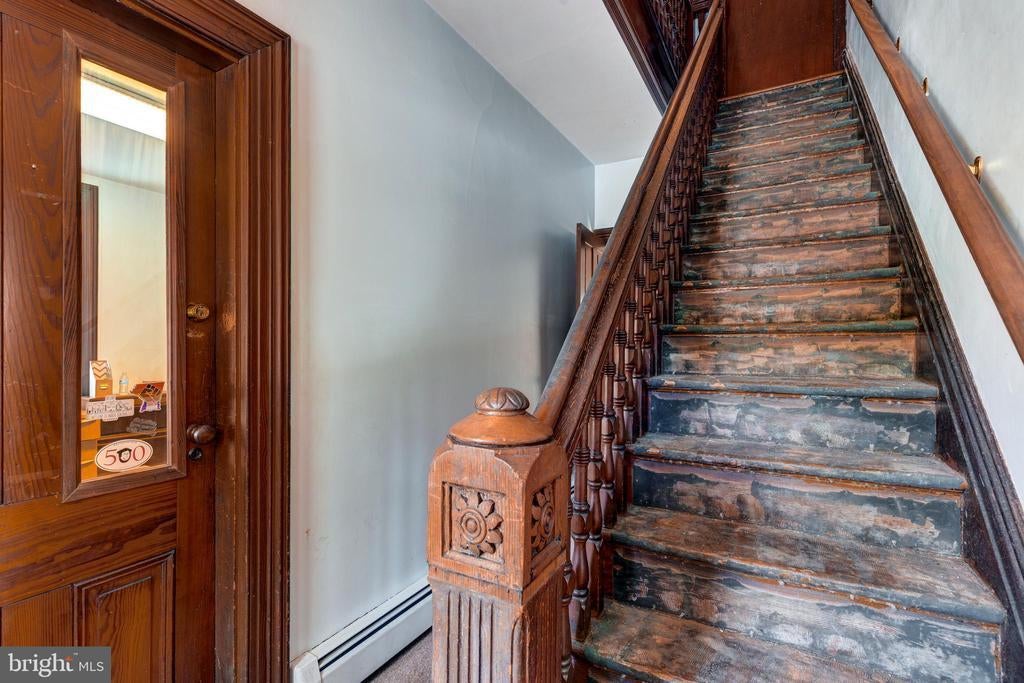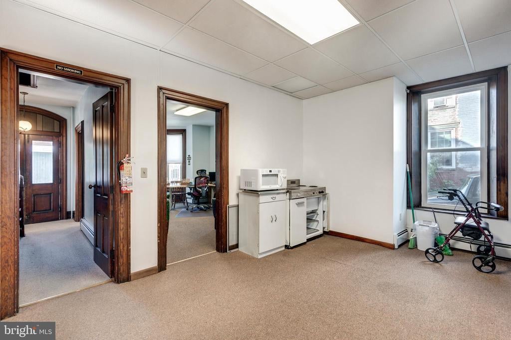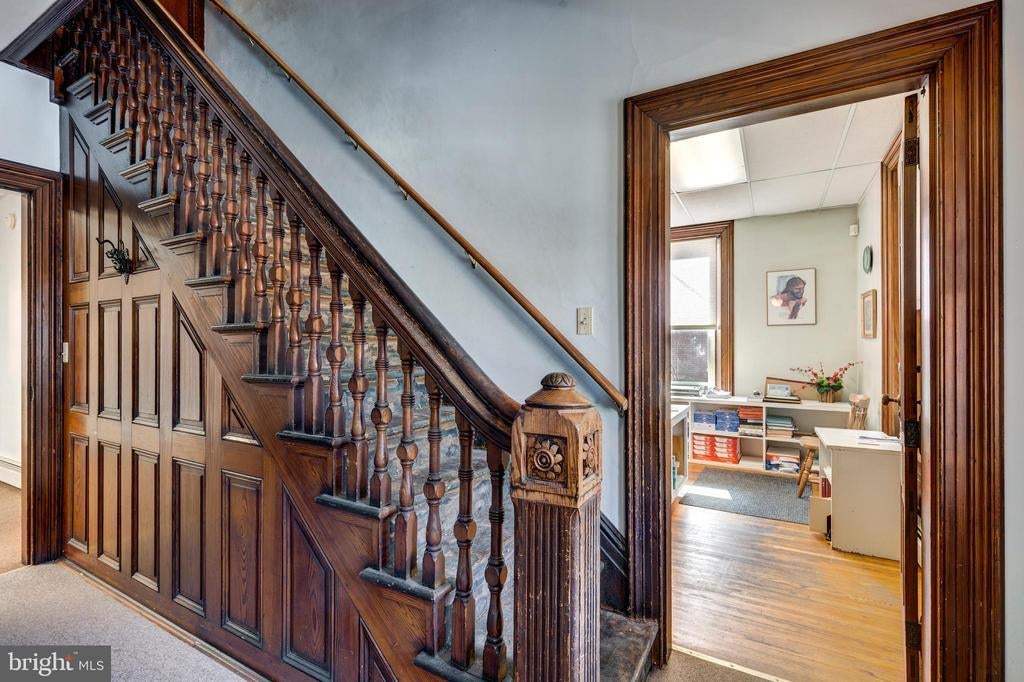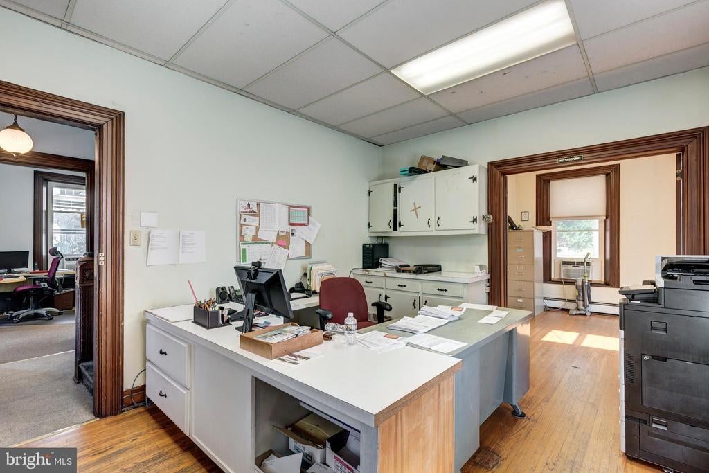 Big two unit brick house owned by the Church is used for their office on the first floor and 3 bedroom apartment on the second floor. This property has a lot of charm and character on the first floor. The condition is decent for the age but would likely need renovations. The first floor could be made into an apartment or kept as an office. Nice level rear and side yard will be roughly 1/4 acre once re-sized. Survey work in progress for new deed description. Stone foundation, oil heat, big attic and a storage shed. Street parking. Chimney repointed, new liner and new roof last year. Nice space to work with and much potential for the right buyer.