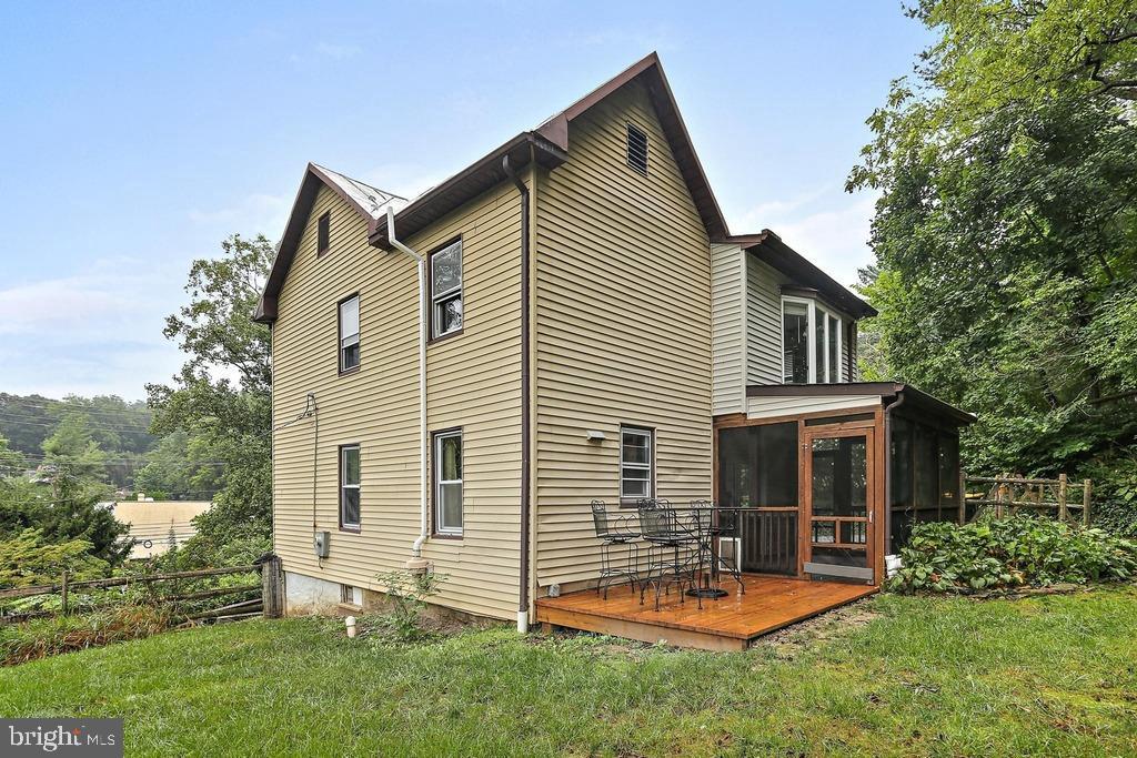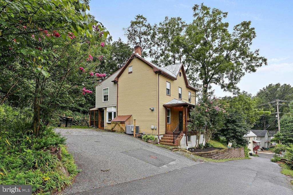 PRICE ADJUSTMENT!! Own a piece of history! This charming colonial built in 1892 and located in the Historic District of the Town of Sykesville is ready and waiting for you! This home has historical charm along with modern updates. The cedar front porch with hand hewn logs custom built by a local architect is a perfect spot for a quiet evening. The main level features a living room with hardwood floors and a freestanding pellet stove that can heat the entire main level and a stunning cedar shiplap wall with a built-in reading nook. You will also find on the main level a separate family room with luxury vinyl plank flooring, an updated kitchen with granite counters and custom oak cabinetry, and a beautiful sunroom/breakfast room that leads to a screened porch with timber flooring overlooking the landscaped rear yard. The upper level features three roomy and bright bedrooms with plenty of closet space, and a spacious full bath. The air conditioning unit is new in 2025 and has a 10 year warranty available. This lovely colonial has over 1700 finished square feet of interior space along with plenty of outdoor living space. Located just off of Main Street Sykesville, you are steps away from quaint shops, restaurants, and Town events like the Farmers Market, Fall Festival, Craft Beer Festival, and more. Come be a part of the Coolest and Best Small Town in America!