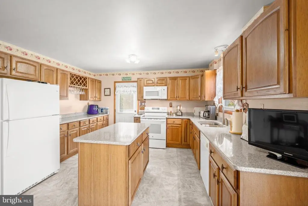 This charming ranch-style home, built in 1986, offers a cozy retreat on a spacious 1.24-acre. With 3 bedrooms and 2 full bathrooms, it's perfect for those seeking comfort and convenience. The heart of the home features the large eat-in kitchen & dining area with island, including a built-in microwave, dishwasher, and extra refrigerator/freezer, making meal prep a breeze. Sliders open to large deck with a stunning view. The partially finished basement provides additional space for creativity, whether it's a playroom, home gym, or extra storage. With a driveway for parking and a peaceful setting, this home is a wonderful opportunity to embrace a lifestyle of comfort and community. Experience the warmth and charm that this property has to offer!