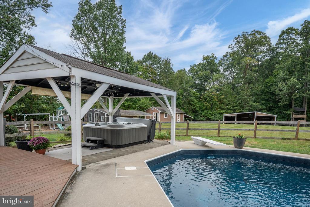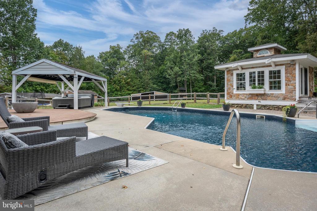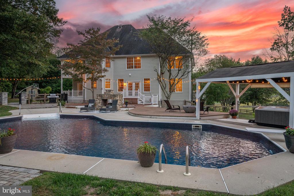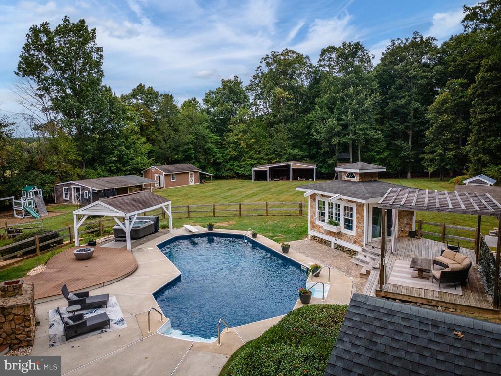 OPEN HOUSE SATURDAY (OCTOBER 4TH) FROM 12-2PM!! Welcome to this stunning, custom built, 4,700+ sf entertainer's paradise on over 2 acres situated on picturesque Babylon Rd in Taneytown. With 6 bedrooms, 5 full baths, a fully finished basement, fireplaces on every floor, extensive hardscaping and tiered decking, in ground pool with pool house, hot tub, barn with 2-3 stalls, workshop shed, fire pits, and multiple outbuildings, this estate will cater to whatever hobbies or activities you enjoy. Meander down your long private driveway, flanked by trees on one side and a neighbor's farm on the other. Indoors, soaring ceiling surround the center double staircase. With hardwoods spanning the first floor, enter to an office with double paned French doors on your left, and a formal dining area to your right with updated light fixture and wainscotting. Through the wet bar/butler area to the kitchen, you'll be ready to entertain - whether formal dinners or gathering family and friends for football. The kitchen features custom two tone cabinetry, stainless appliances, a gas range, center island and bar area, pot filler, and is adjoined by a pantry area with access to the garage, as well as a perfect eat-in space for dining table, breakfast nook, homework spot, and more with double paned French doors leading out to a covered deck. The kitchen is also open to the expansive living room, with tall windows, fireplace, and access to the fully fenced, incomparable pool area through double doors. The first floor is the perfect place for bringing family, friends, seasons, and memories together. The first floor also has a full bath with custom tiled tub/shower combo and large bedroom, perfect for those that need one floor living. Upstairs, the retreat-like primary suite is drenched in natural lights given the extra large windows and glass paned doors leading out to your private, covered, second story porch. The perfect spot for tranquil moments enjoying the complete privacy this home offers, whether with a morning coffee or evening refreshment. The primary bath is vast with vaulted ceilings, a double sink vanity, Roman stand shower, and jetted corner tub with access to the large walk-in closet. There are 4 other large bedrooms each with their own custom features - one has a vaulted ceiling, private en suite bath, and walk-in closet. A jack-and-jill full bath connects two other bedrooms, and the remaining has oversize windows, custom rustic closet cabinetry and storage. The laundry is also on the second floor for convenience. The fully finished basement contains a large playroom/family room with wood stove and fireplace, walk out to the side yard, full bath, gym room, and additional finished space for an office or craft room. Outdoors, dive into a complete outdoor living experience. Multiple levels of decking surround the low maintenance in ground pool with waterfall and hold multiple areas for gathering and enjoying the countless amenities. String lights twinkle above the hot tub with pergola, the outdoor stone fireplace with seating, the raised deck with pergola that connects to the pool house, and the views of your open, flat yard surrounded completely by trees. The yard space has outbuildings dotting the perimeter - a multiple stall barn with electric, a large workshop/"man cave" with electric and furnished for working, hunting, fishing, or other outdoor pursuits. There is also a large machine shed with 3 bays, perfect for parking mowers, tractors, or smaller equipment. Additional outdoor amenities include a previous goat shed, chicken coop, tree house, storage shed, and ample parking and driveway space. With too many features and upgrades to imagine, you will be wowed by 4703 Babylon Rd.