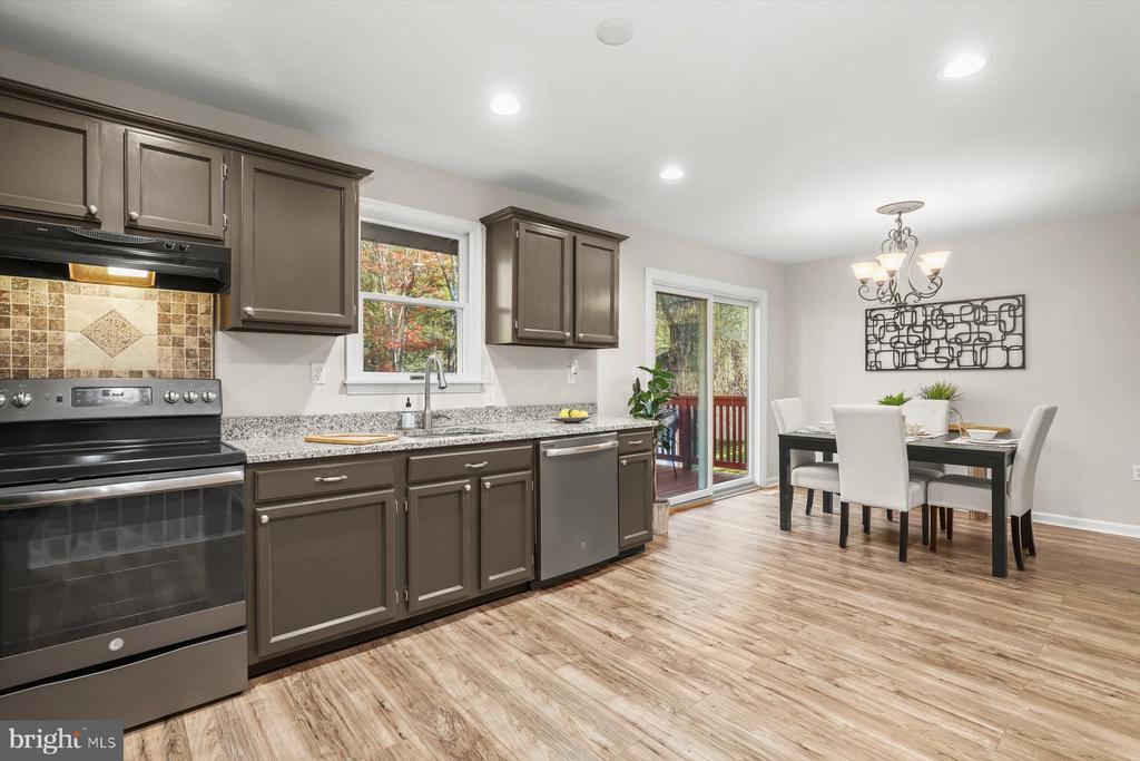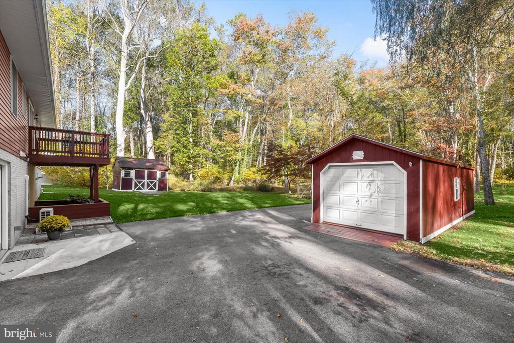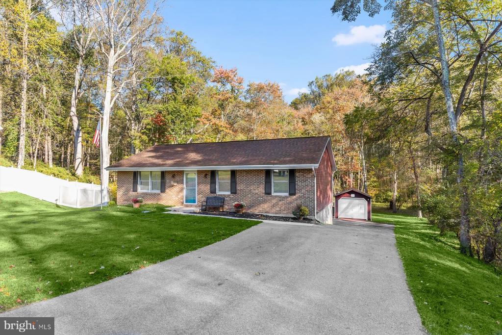 Welcome to this charming ranch-style house on a 1.42 acre lot in Sykesville. The main level features an elegant living room with an electric pellet stove, and overlooks the lush front yard. The dining area with chandelier opens to the modern kitchen with stainless steel appliances and granite counters. It also provides access to the deck for easy outdoor dining with views of the forest. The serene primary bedroom offers wall-to-wall carpet. There are two other bedrooms on this floor and a full bathroom as well as powder room for convenience. The finished lower level could serve as a separate apartment. It offers a spacious living area with room for dining, a full second kitchen, fourth bedroom, bonus room, and full bathroom, plus laundry room. Outside, enjoy the beautiful front and back lawns, a fenced garden, and handy storage shed. There is driveway parking as well as a two-car tandem garage. Don't miss this wonderful opportunity to live in Freedom Forest.