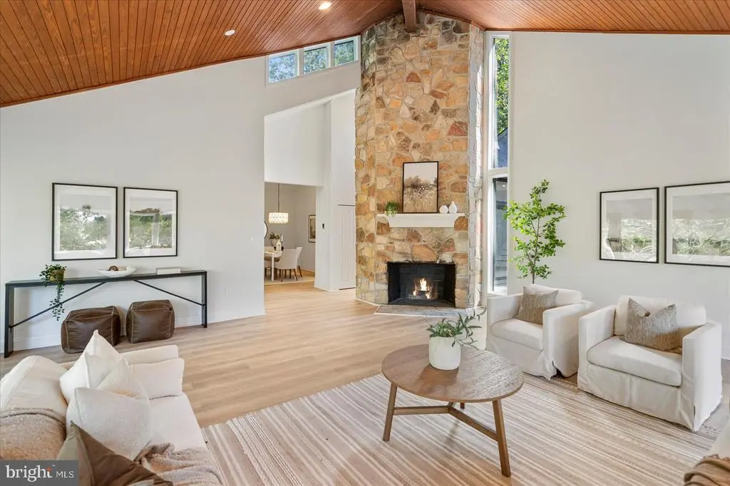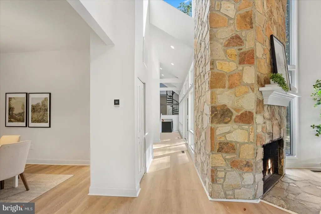 Experience contemporary luxury in this fully renovated home, perfectly set on over 10 acres of serene countryside. Soaring ceilings and walls of windows fill the interiors with natural light, creating an airy, open atmosphere throughout. The great room is anchored by a striking stone fireplace, one of several fireplaces that lend warmth and character to the home. The gourmet kitchen boasts sleek quartz countertops, high-end finishes, and generous space for both cooking and entertaining. A dramatic spiral staircase leads to a loft area, ideal for a private retreat, home office, or creative space. Every detail has been thoughtfully updated, blending modern design with timeless comfort. This is more than a home—it’s a statement of style and sophistication, offering both privacy and elegance in an idyllic natural setting.