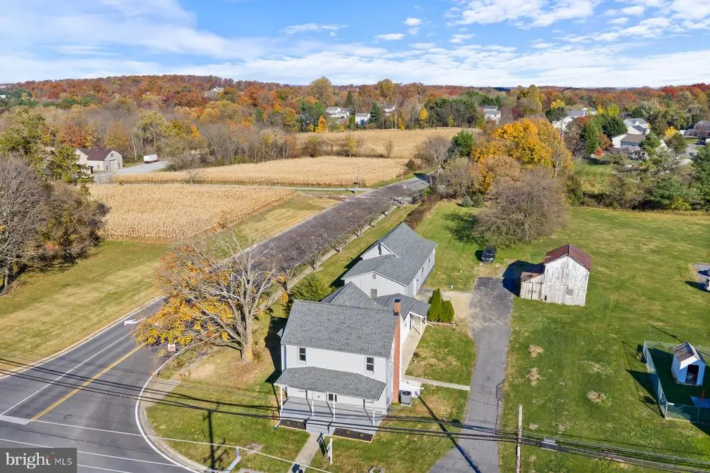 Newly Renovated & fully permitted 4 bed /2 full bath colonial has all new plumbing & electric, new architectural shingled roof, double pane windows, new septic line, new siding, all new HVAC ductwork with a new 90% efficiency gas furnace w/air conditioning and a fire sprinkler system for safety & lower homeowners insurance! The first floor offers a large family room, laundry w/mudroom, full bathroom & private den/4th bedroom. The kitchen features white shaker cabinets, quartz countertops, a large island, gas cooking and a custom tiled backsplash. Upstairs you will find 3 spacious rooms, a full bath & walk up stairs to a full attic for storage. On the exterior there is a large flat yard, front porch and huge 63x25 garage with separate heating, hook ups for water & sewer and a 2nd story room for a potential office! *Note the shed at end of driveway on right is on the neighbors property*