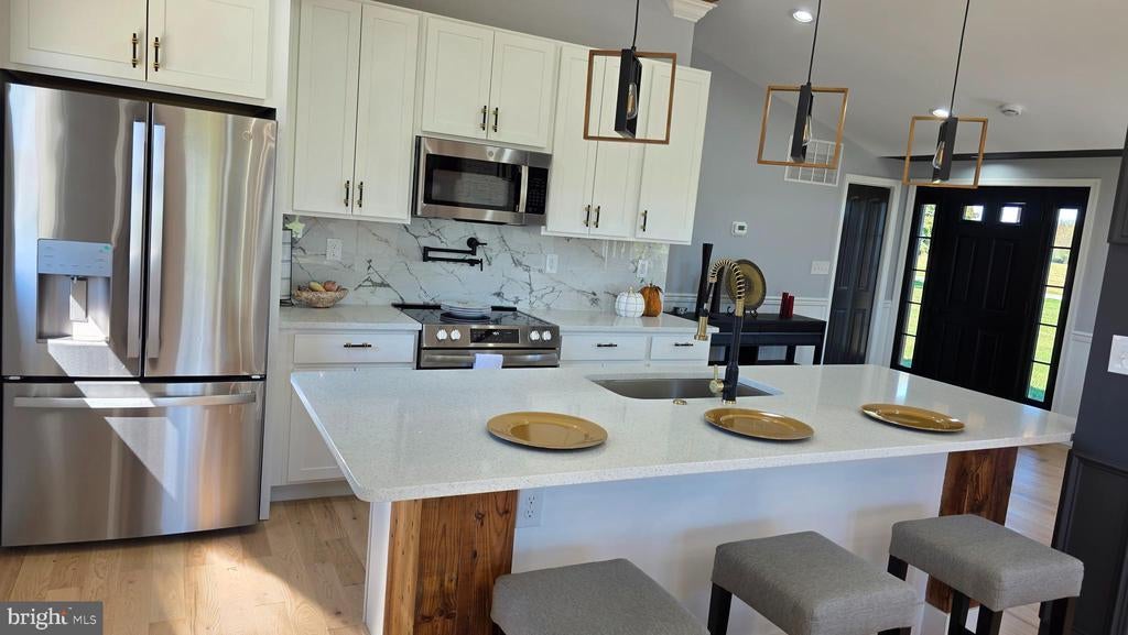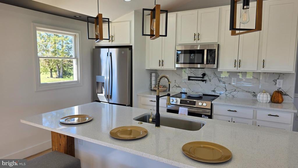 Stunning Renovated Home with Scenic Views and Modern Amenities This beautifully renovated 3-bedroom, 3.5-bathroom home offers spacious living and exceptional comfort throughout. Step into a bright and airy living room featuring recessed lighting and an open layout perfect for relaxing or entertaining. The heart of the home is a sleek, modern kitchen boasting quartz countertops, a large quartz island, and stainless steel appliances—ideal for cooking and gathering. Each bedroom features wall-to-wall carpeting and is filled with natural light, creating a warm and inviting atmosphere. The primary bedroom includes its own luxurious en-suite bathroom for added privacy and convenience. Downstairs, you'll find a huge finished basement complete with plush carpeting, a stylish bar area for entertaining, a full bathroom, laundry hookups, and ample storage space. The basement also offers a walk-out with stairs leading to the sprawling backyard, where you'll enjoy breathtaking views of open pastures and farmland. The oversized garage is perfect for car enthusiasts or anyone in need of extra workspace. The large yard is ideal for cookouts, picnics, and playtime with pets, offering a private and peaceful outdoor retreat. Don’t miss your chance to own this move-in ready home with modern finishes, tons of natural light, and unbeatable outdoor space.
