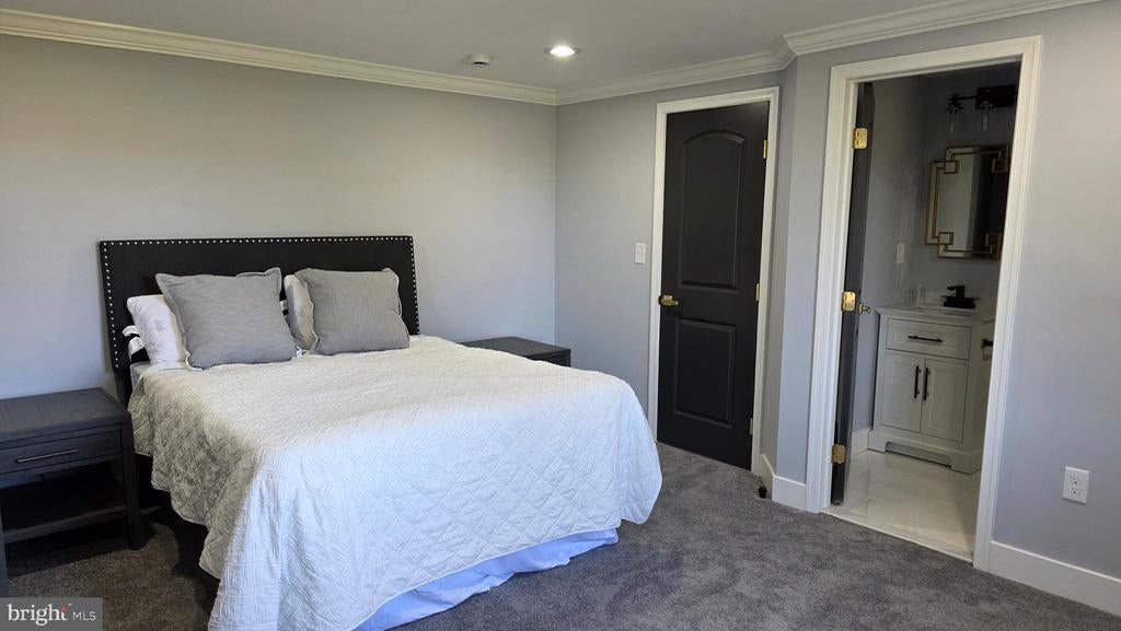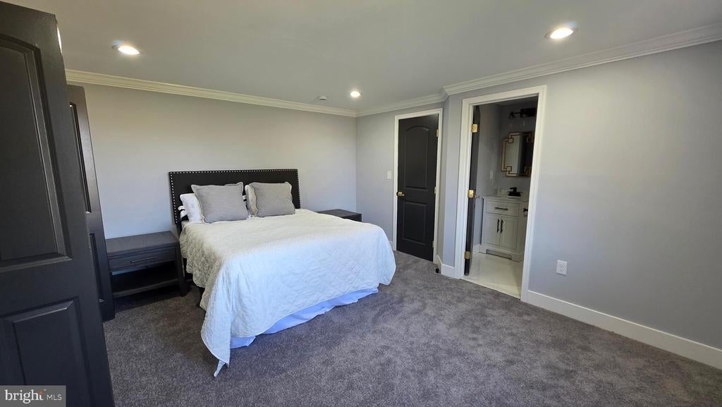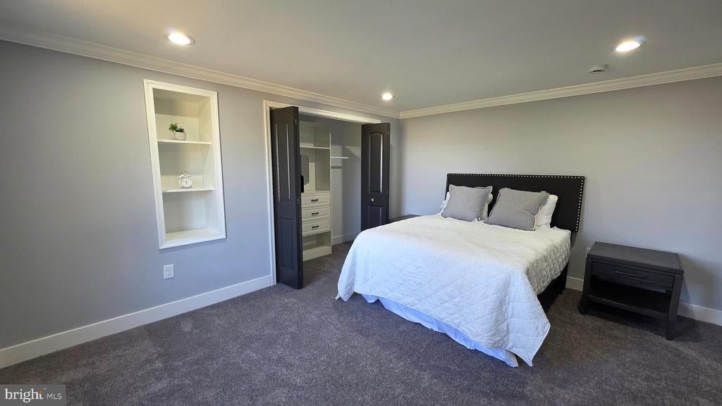 Bar, Carpet, Crown Molding, Recessed Lighting, Master Bath(s), Wood Floors