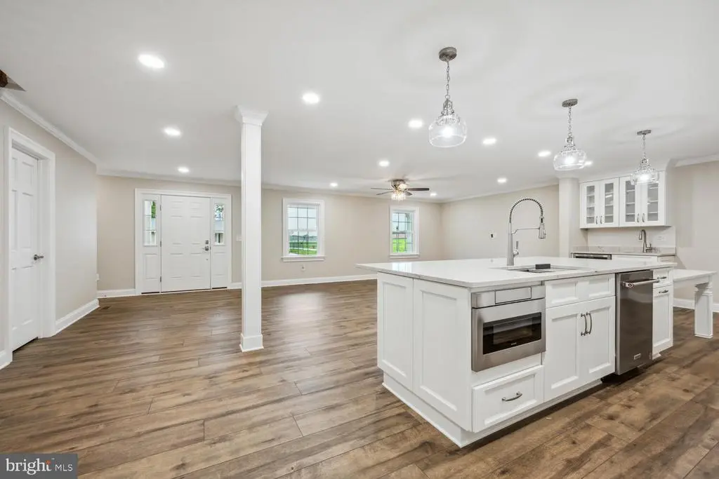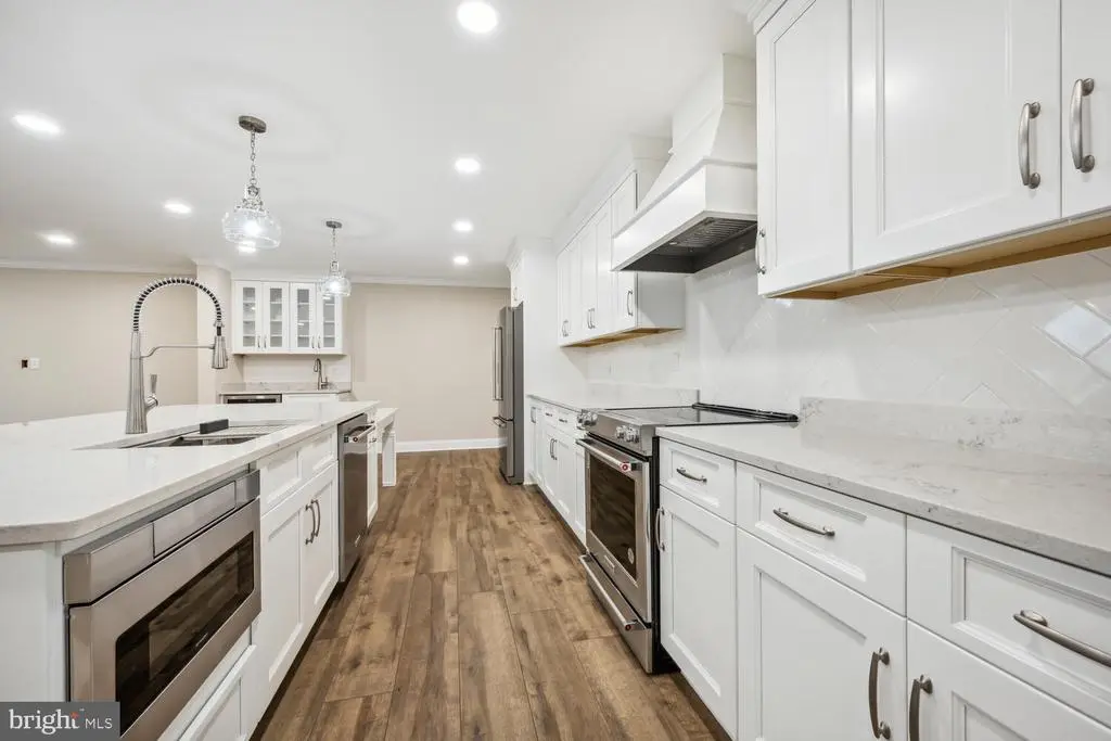 Welcome to this beautifully reimagined 4-bedroom, 3.5-bath home, newly renovated down to the studs with modern design and thoughtful finishes throughout. Step inside to discover a gourmet kitchen featuring quartz countertops, premium cabinetry, stainless steel appliances, an oversized island, and built in wet bar. The open-concept kitchen and living area, create one spacious, light-filled great room. Off of the living room, the first-floor primary suite boasts a spacious walk-in closet and stunning en-suite bath with a soaking tub, walk-in shower, and dual vanities. An additional bedroom and full bath on the main level offer flexibility for guests or a home office. Upstairs, you'll find two generously sized bedrooms as well as a storage/utility room. Additional highlights include a convenient laundry room, sun room, a 2-car garage, and a prime corner lot location.