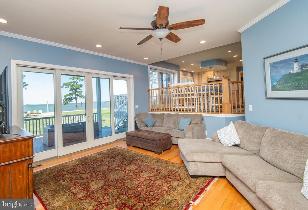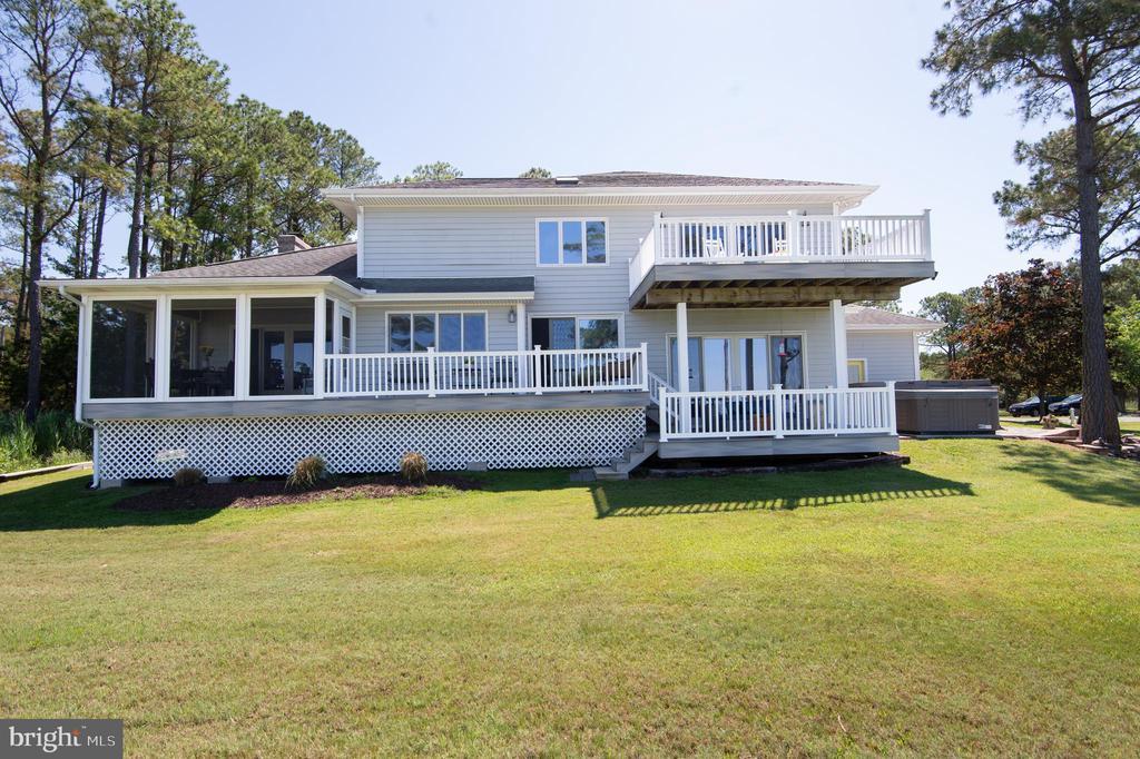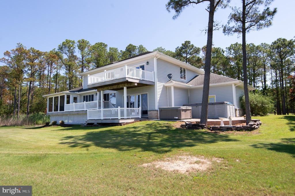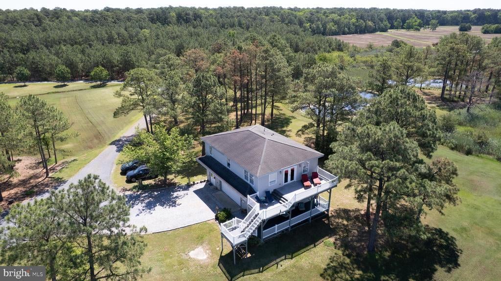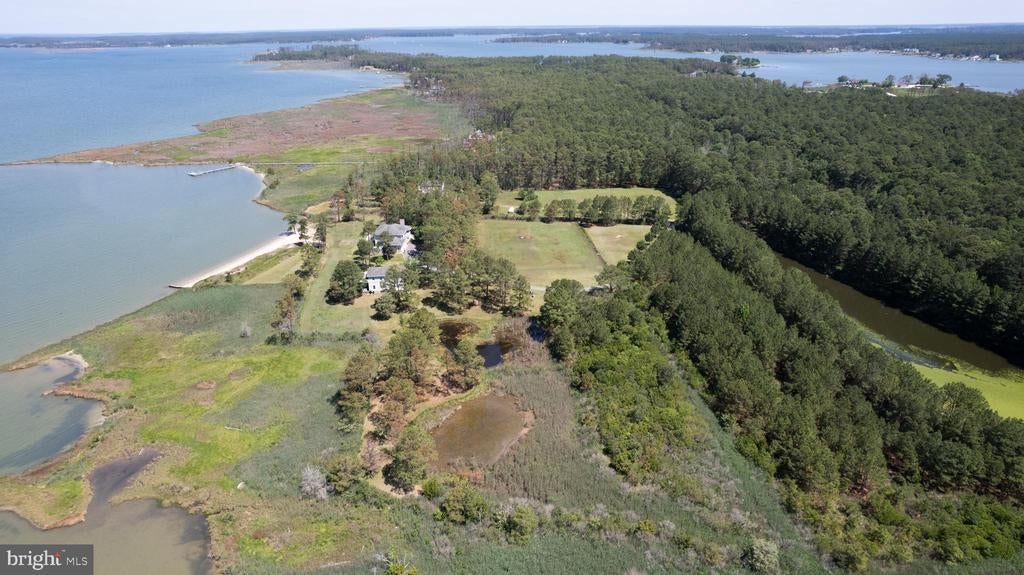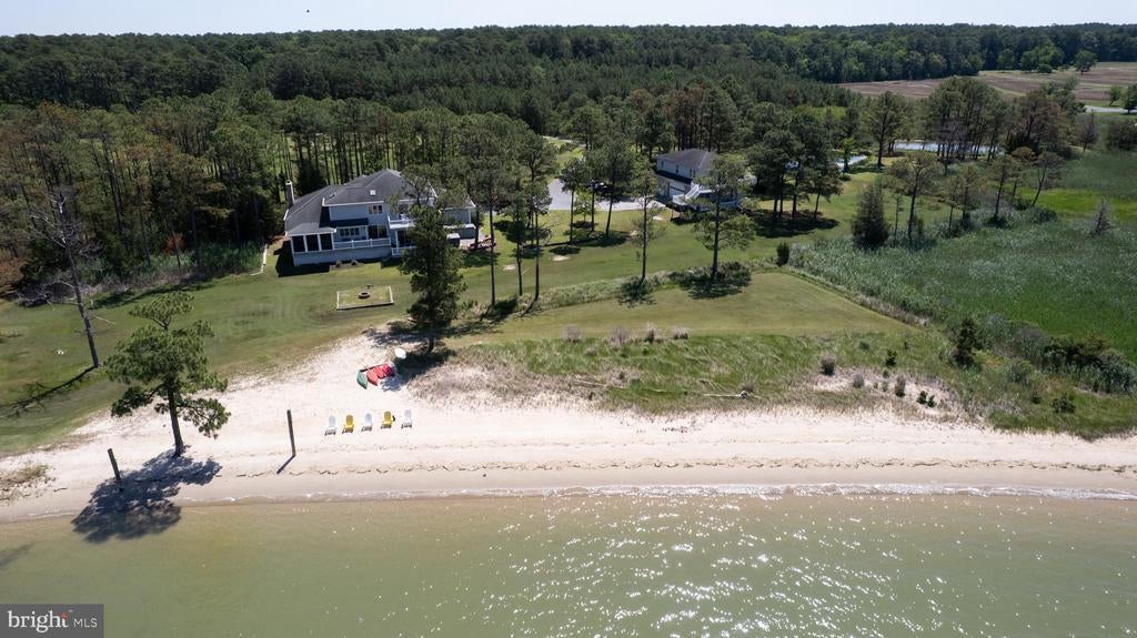 Beautiful waterfront on Madson Bay! Rarely do you find a property with your own private beach. This exceptional property checks all the boxes. 22+ acres. 10 acres are wooded, 2 ponds, 890 ft of shoreline, a sandy beach and a 3 bedroom, 2 bath guesthouse on the end of a private cul-de-sac. This impeccable home offers 4 bedrooms, 3 full baths, upper/lower decks, large screen porch, 3 car garage and a partial basement. When entering the foyer, to the right it opens up to the stunning living room with beamed cathedral ceilings, hardwood flooring, brick wood burning fireplace. The beautiful bay window enhances the room with natural sunlight. From the foyer to the left steps down to the stunning waterfront kitchen with granite countertops, stainless steel appliances, beverage cooler, induction cooktop, island, recessed lighting and beautiful view of the beach. To the right of the kitchen is the formal dining room with beamed cathedral ceiling, hardwood floors, built-in shelving. Off of the dining is the screened porch/sunroom with water views. To the left of the kitchen steps down to the family room. The family room is the heart of the home with hardwood floors, built-in shelving, double sliding glass doors that opens up to the large deck with broad water views and the sandy beach. The main floor also has 1-bedroom, full bath, laundry room and entry to the partial basement. The second floor offers the primary suite which spreads over the entire back of the home. Imagine waking up every morning to breath taking water views and the smell of fresh air. Enjoy your morning coffee on your private balcony or relax in the soaking tub in the gorgeous primary bath with views of Madson Bay. The large primary bath has 2 walk-in closets, skylight, double tiled shower and double sinks with granite countertops. To the left of the primary bedroom is a cozy sitting room where you can cuddle up, watch a movie or read a good book. The second floor also has a full bath with skylight and 2 bedrooms. HAVE I GOT YOUR ATTENTION? This waterfront Oasis is a MUST see. There is so much to enjoy. Boating, kayaking, canoeing, water skiing, fishing, crabbing, swimming or just relaxing on the sandy beach, swim spa and hot tub. Oh, did I mention the 10 acres of woods and 2 ponds and the abundance of wildlife that roams the property. Look out across the property and see Whitetail deer, Sekia deer, fox and turkey. The 2 ponds are filled with duck and geese and maybe a few fish. The guesthouse would make a great weekend rental or a get-away for family and friends. Main house or guesthouse has never flooded. You can get a permit for a pier. Water depth for pier is 5-6 ft on low tide. Click on the last photo for virtual video.