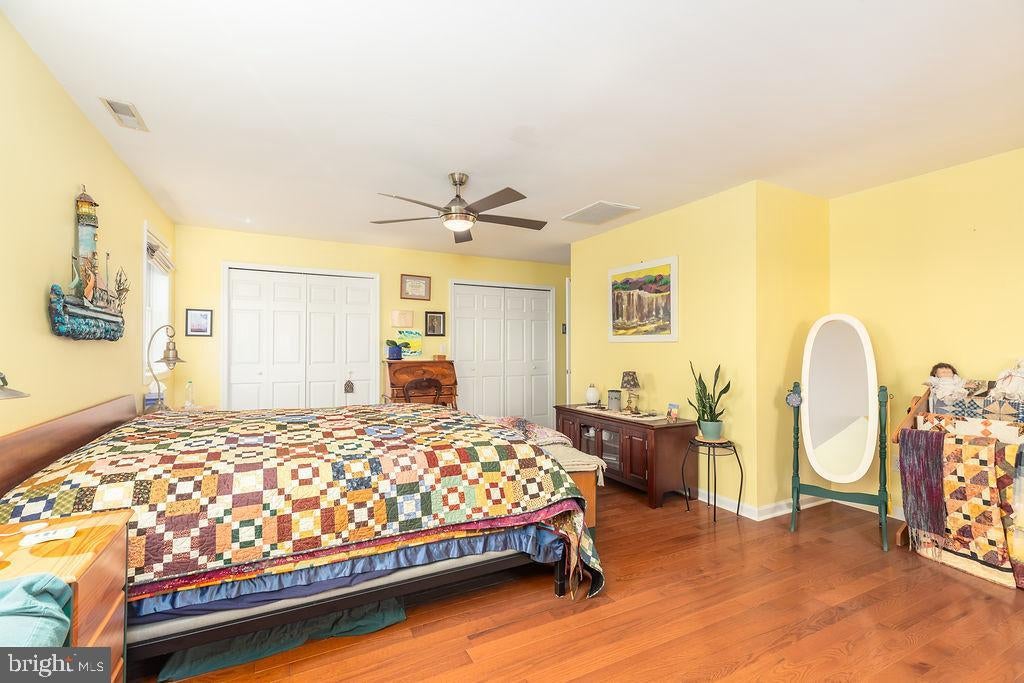 Bathroom - Walk-In Shower, Tub Shower, Built-Ins, CeilngFan(s), Entry Lvl BR, Upgraded Countertops, Shades/Blinds, Wood Floors