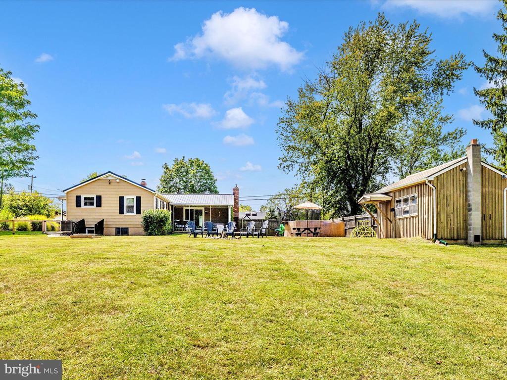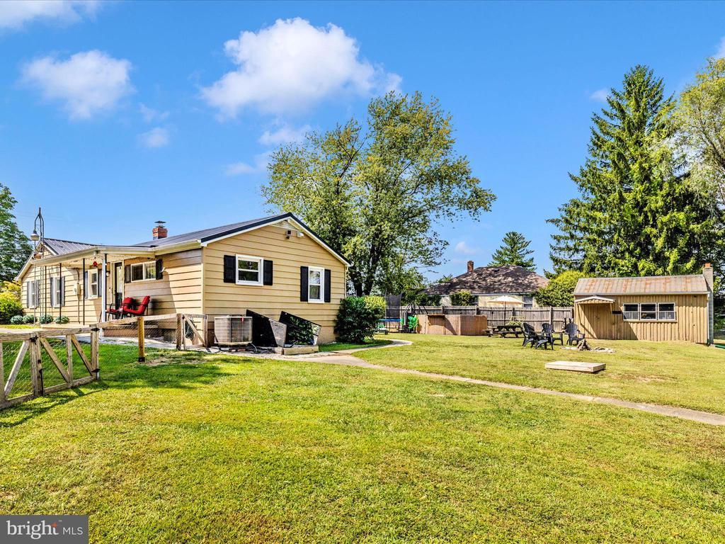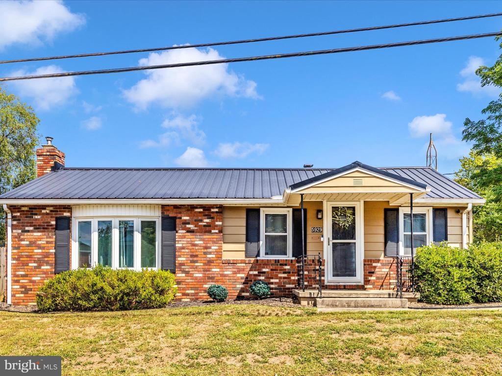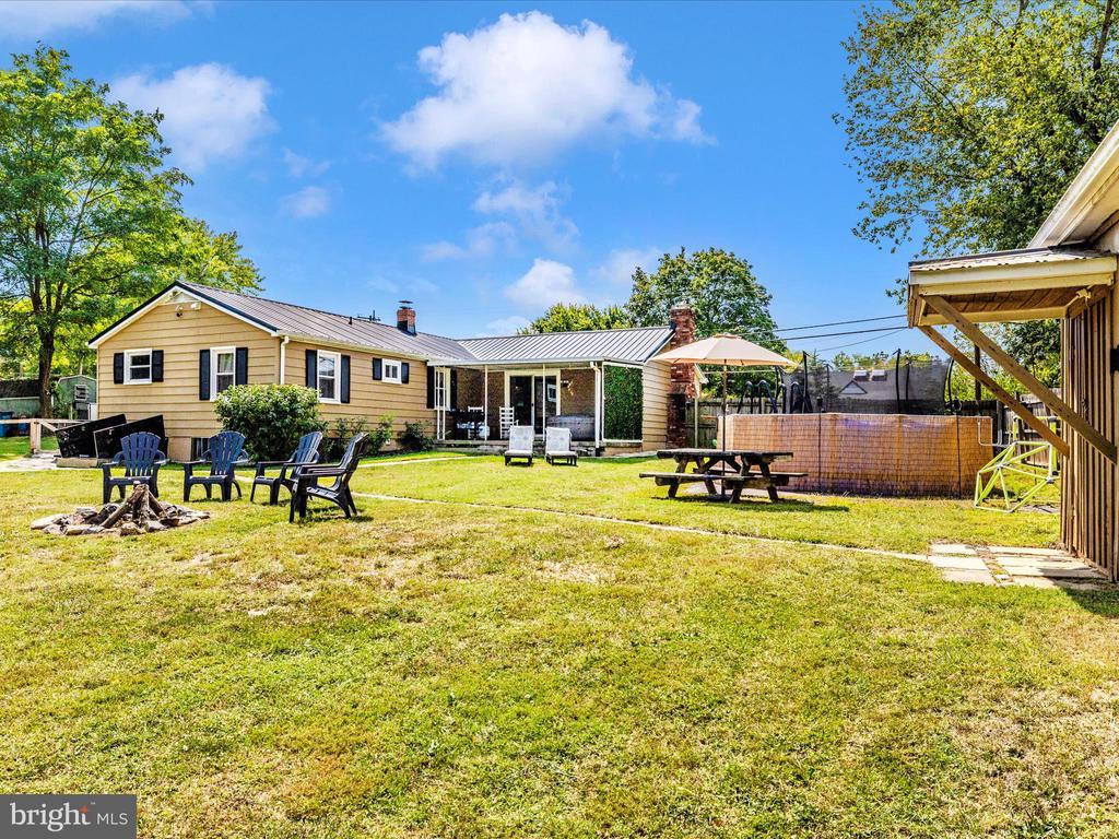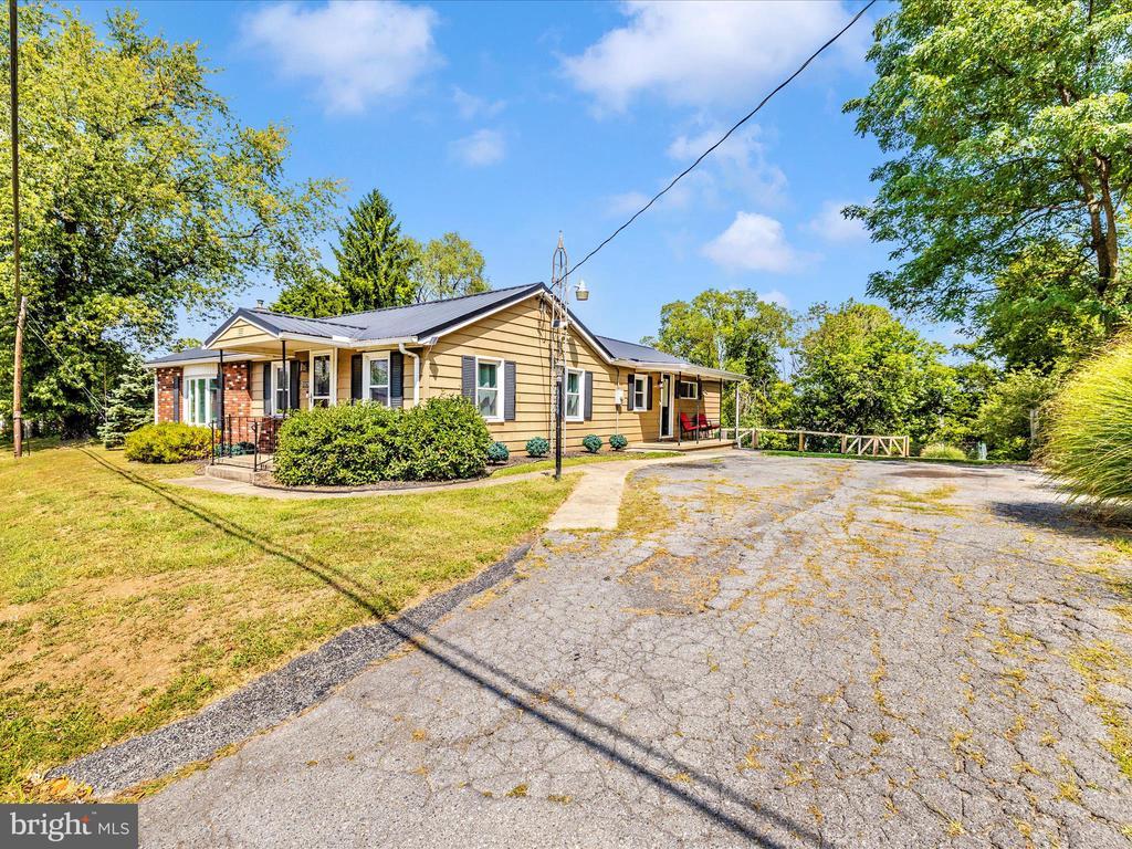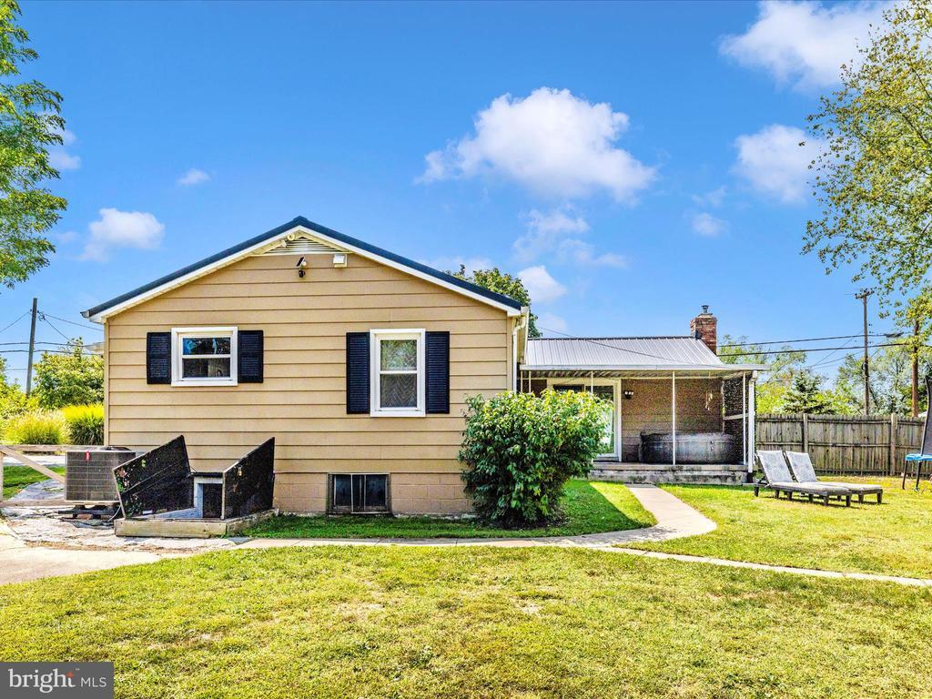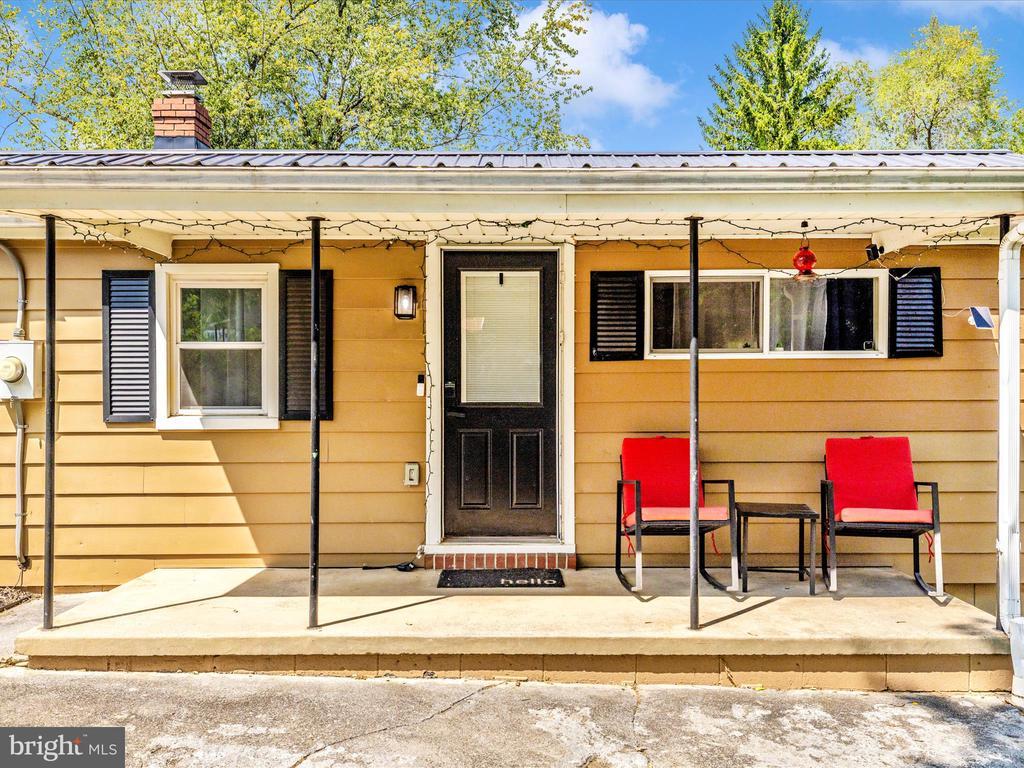 This ADORABLE 3 Bedroom Rancher is FULLY UPDATED! Entering through the covered side porch off the driveway, you are greeted with the stunning updated kitchen which features stainless steel appliances, designer painted cabinets, optimised countertop space, and is nice and open to the dining area comfortably fitting a large table. Centered between two of the bedrooms is the updated full bathroom with a marble tiled tub shower, modern vanity and fixtures, and quaint built-in storage cabinets behind the mirrors. The 19x19 great room has the living room and home office and features a vaulted ceiling with a gorgeous oversized industrial style fan and has access to the front porch. Large primary bedroom features a bay window, dual closets, a white painted brick fireplace with stained mantle, and a slider door to the covered backyard patio! Entertaining in the backyard is easy with the privacy fence on the front & left side yard and a neighborhood forest conservation in the rear. The rest of the backyard is enclosed with a wire fence used to keep the pets in. Level and cleared yard. The first shed is set up like a workshop and has a covered entry, electricity, shop lights, storage space in the floored attic, windows, and a brick & block chimney for a future stove. There is a second shed in the rear that has a concrete patio next to it. The basement has the laundry with washer & dryer, all the mechanicals, and storage space. UPDATES: 2019 the WHOLE HOUSE was RENOVATED: ALL cabinets & countertops, all appliances, full bathroom, LVP flooring, paint, light fixtures, HVAC and central air installed, and interior walls were all insulated. Pressure tank & filter 2023. Hot water heater 10/2024. Septic pumped 2023. Metal roof, gutters, & windows were new when the sellers bought in 2019 from the previous owner. No City Taxes & No HOA! Spring Ridge Shopping Center is just around the corner & Downtown Frederick is less than 10 minutes away!