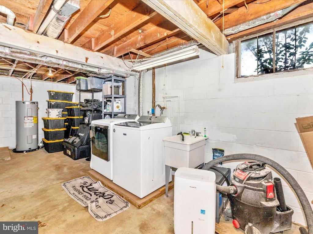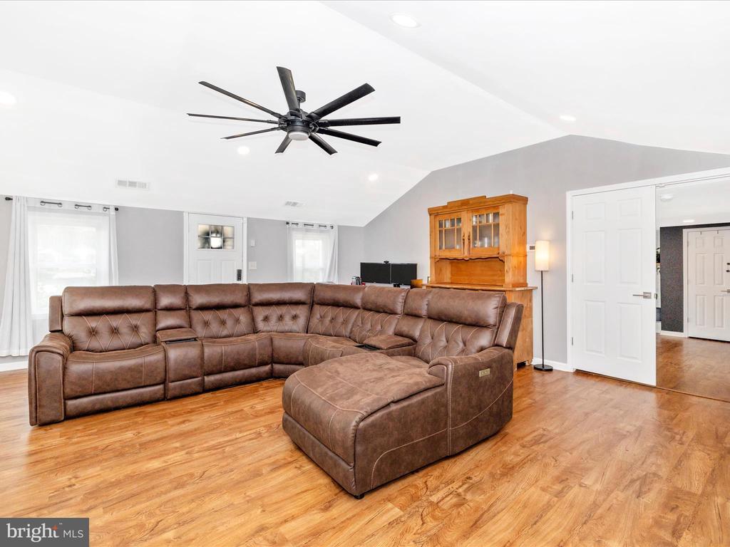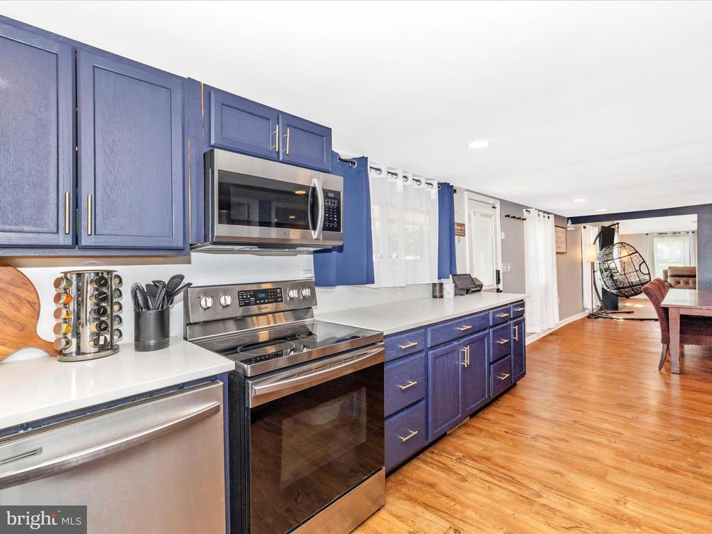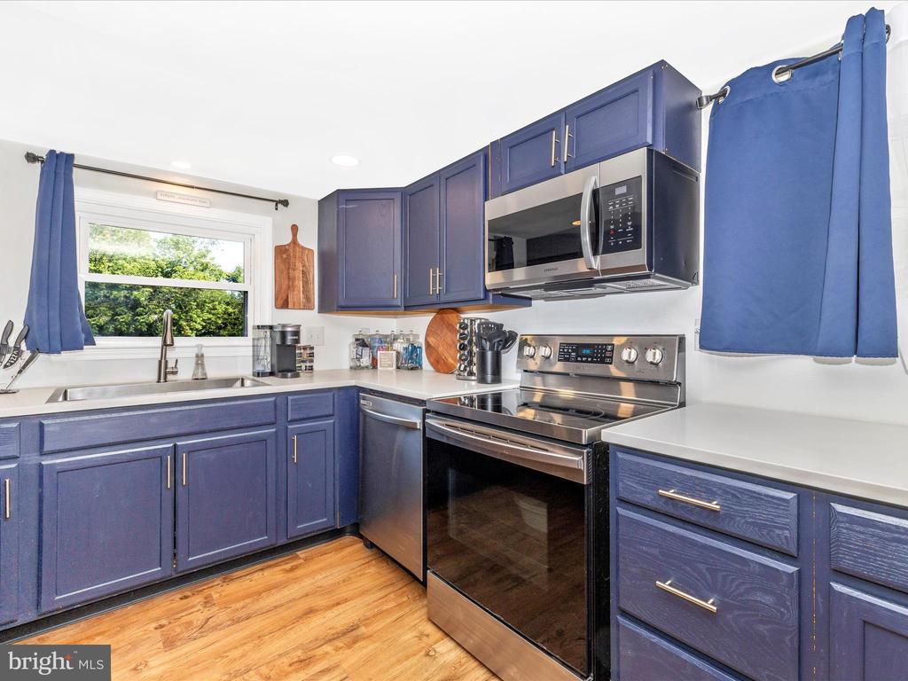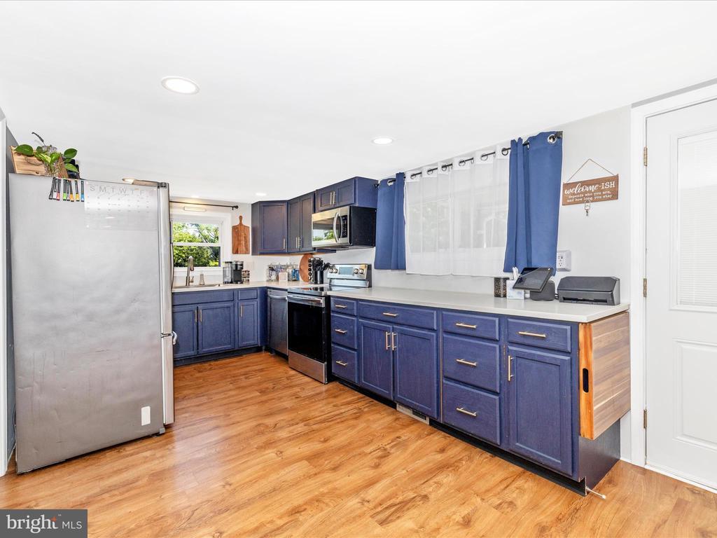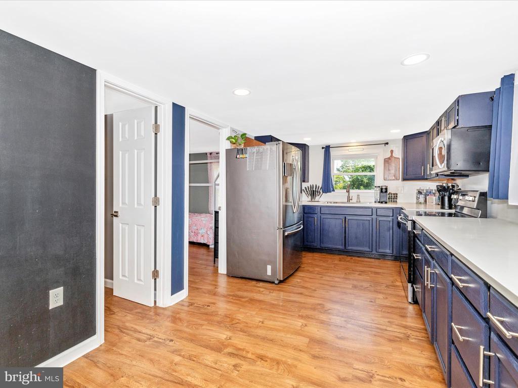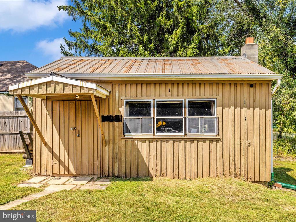 This ADORABLE 3 Bedroom Rancher is FULLY UPDATED! Entering through the covered side porch off the driveway, you are greeted with the stunning updated kitchen which features stainless steel appliances, designer painted cabinets, optimised countertop space, and is nice and open to the dining area comfortably fitting a large table. Centered between two of the bedrooms is the updated full bathroom with a marble tiled tub shower, modern vanity and fixtures, and quaint built-in storage cabinets behind the mirrors. The 19x19 great room has the living room and home office and features a vaulted ceiling with a gorgeous oversized industrial style fan and has access to the front porch. Large primary bedroom features a bay window, dual closets, a white painted brick fireplace with stained mantle, and a slider door to the covered backyard patio! Entertaining in the backyard is easy with the privacy fence on the front & left side yard and a neighborhood forest conservation in the rear. The rest of the backyard is enclosed with a wire fence used to keep the pets in. Level and cleared yard. The first shed is set up like a workshop and has a covered entry, electricity, shop lights, storage space in the floored attic, windows, and a brick & block chimney for a future stove. There is a second shed in the rear that has a concrete patio next to it. The basement has the laundry with washer & dryer, all the mechanicals, and storage space. UPDATES: 2019 the WHOLE HOUSE was RENOVATED: ALL cabinets & countertops, all appliances, full bathroom, LVP flooring, paint, light fixtures, HVAC and central air installed, and interior walls were all insulated. Pressure tank & filter 2023. Hot water heater 10/2024. Septic pumped 2023. Metal roof, gutters, & windows were new when the sellers bought in 2019 from the previous owner. No City Taxes & No HOA! Spring Ridge Shopping Center is just around the corner & Downtown Frederick is less than 10 minutes away!