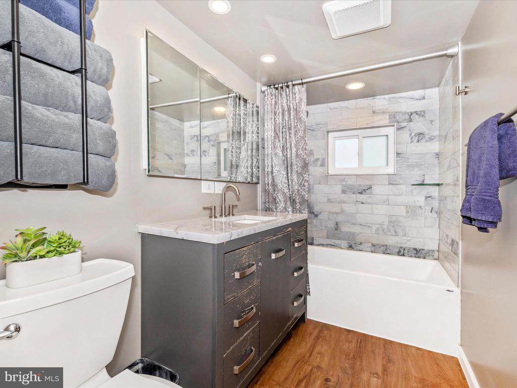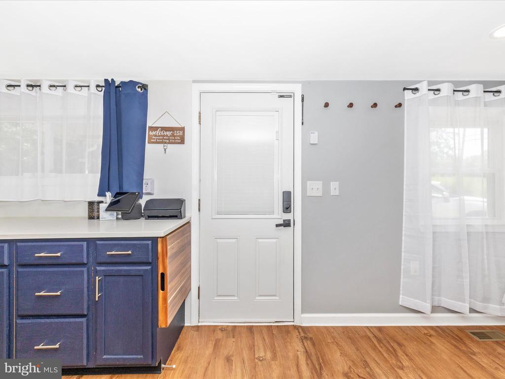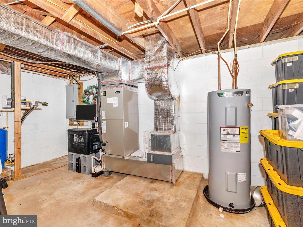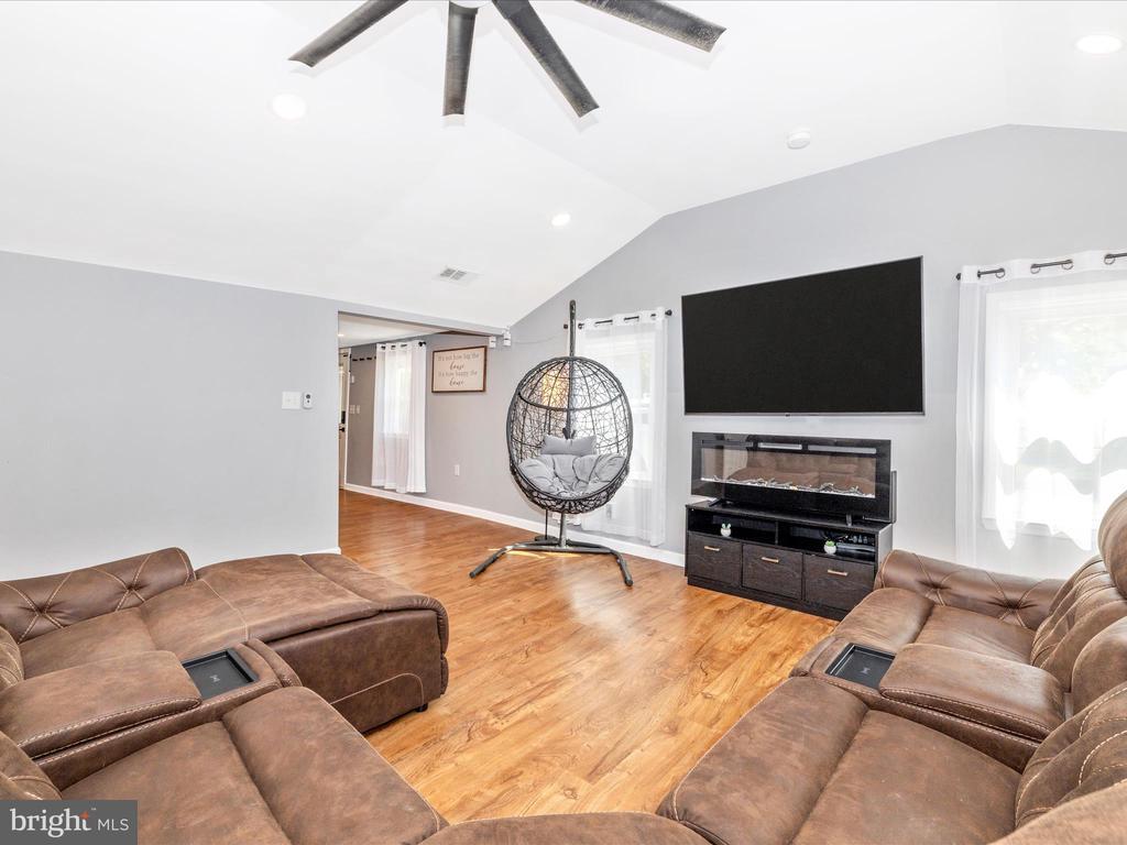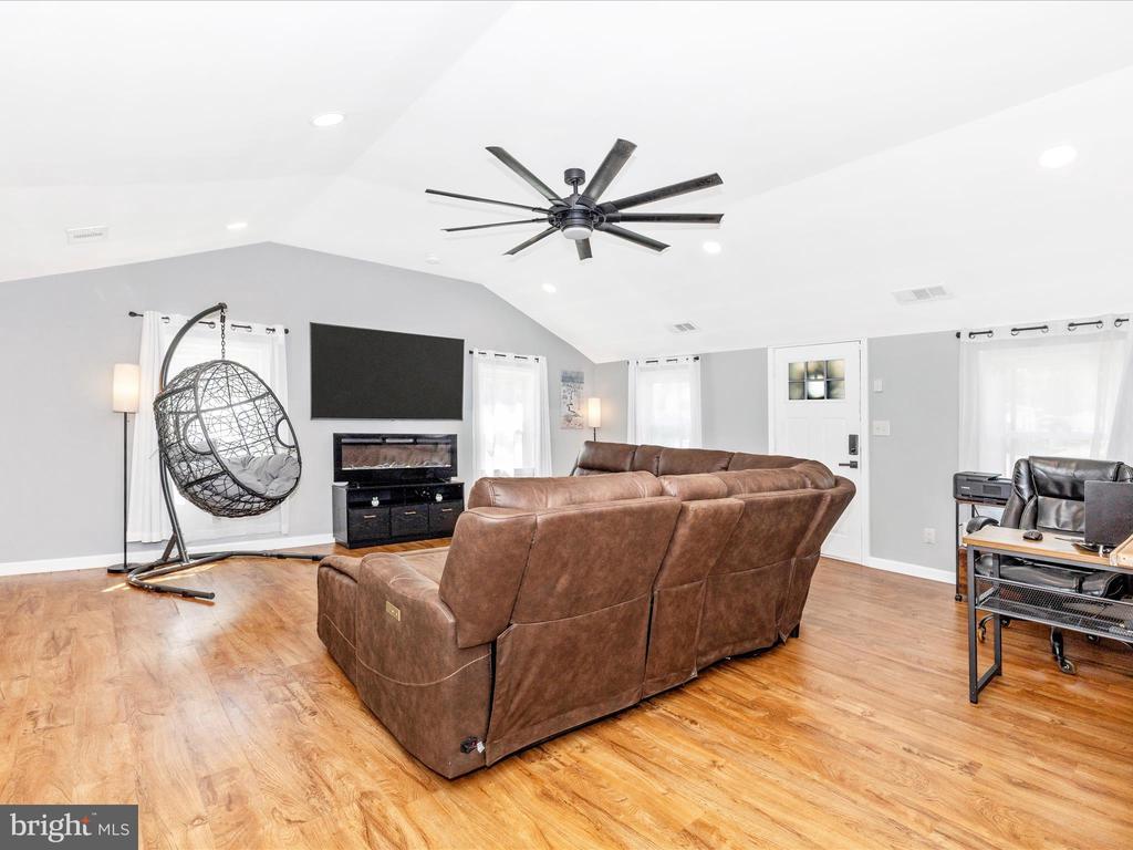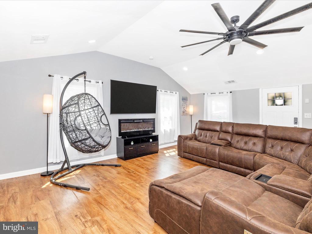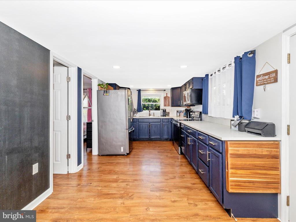 This ADORABLE 3 Bedroom Rancher is FULLY UPDATED! Entering through the covered side porch off the driveway, you are greeted with the stunning updated kitchen which features stainless steel appliances, designer painted cabinets, optimised countertop space, and is nice and open to the dining area comfortably fitting a large table. Centered between two of the bedrooms is the updated full bathroom with a marble tiled tub shower, modern vanity and fixtures, and quaint built-in storage cabinets behind the mirrors. The 19x19 great room has the living room and home office and features a vaulted ceiling with a gorgeous oversized industrial style fan and has access to the front porch. Large primary bedroom features a bay window, dual closets, a white painted brick fireplace with stained mantle, and a slider door to the covered backyard patio! Entertaining in the backyard is easy with the privacy fence on the front & left side yard and a neighborhood forest conservation in the rear. The rest of the backyard is enclosed with a wire fence used to keep the pets in. Level and cleared yard. The first shed is set up like a workshop and has a covered entry, electricity, shop lights, storage space in the floored attic, windows, and a brick & block chimney for a future stove. There is a second shed in the rear that has a concrete patio next to it. The basement has the laundry with washer & dryer, all the mechanicals, and storage space. UPDATES: 2019 the WHOLE HOUSE was RENOVATED: ALL cabinets & countertops, all appliances, full bathroom, LVP flooring, paint, light fixtures, HVAC and central air installed, and interior walls were all insulated. Pressure tank & filter 2023. Hot water heater 10/2024. Septic pumped 2023. Metal roof, gutters, & windows were new when the sellers bought in 2019 from the previous owner. No City Taxes & No HOA! Spring Ridge Shopping Center is just around the corner & Downtown Frederick is less than 10 minutes away!