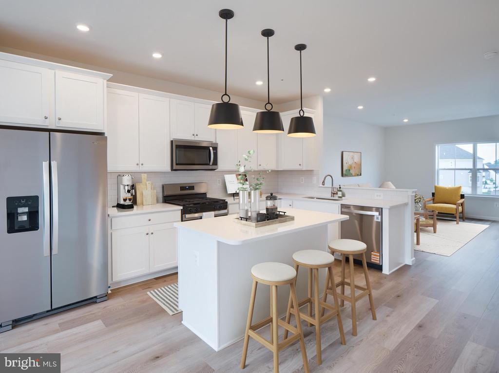 This Hayward Traditional is a stunning three-story townhome offering 4 bedrooms and 3.5 bathrooms. Step inside the 1st-floor Foyer, where you'll find a convenient coat closet and direct access to the garage. Down the hall, a Flex Space provides versatility for a home office or workout area. Continue to a private Guest Suite featuring a walk-in closet and ensuite full bath—perfect for visitors or multi-generational living. On the 2nd floor, the open-concept layout is designed for effortless living and entertaining. The spacious Family Room is filled with natural light from triple windows, while the Kitchen showcases quartz countertops, a tile backsplash, a gas range, Whirlpool stainless steel appliances, and extended cabinetry. Adjacent to the Kitchen, the Dining Area features doors opening to a composite deck, ideal for outdoor relaxation. A Powder Room completes this level. Beautiful engineered plank flooring runs throughout the entire floor. The 3rd floor is home to the luxurious Owner’s Suite, featuring a walk-in closet and private bathroom with a dual vanity. Two additional bedrooms, each with double-door closets, share a full bath. A Laundry Room and hall closet add extra convenience to this level. Keystone Custom Homes is building a community of new homes in Frederick, MD, a city that has recently been ranked among the top 100 best places to live in the United States! Kellerton is a luxurious, equestrian-inspired community, nested near towns like Whittier, Cannon Bluff, and Clover Hill, and has tree-lined streets and a variety of home styles. Residents of Kellerton look forward to the community’s many amenities including tot lots for the kids to play on, several athletic fields, walking trails, a dog park, and a beautiful award-winning clubhouse with an Olympic-sized pool! Residents get to enjoy all of this and more just by stepping out their front door. Price shown includes all applicable incentives when using a Keystone Custom Homes preferred lender. Price subject to change without notice. Estimated Completion: Winter '25-'26