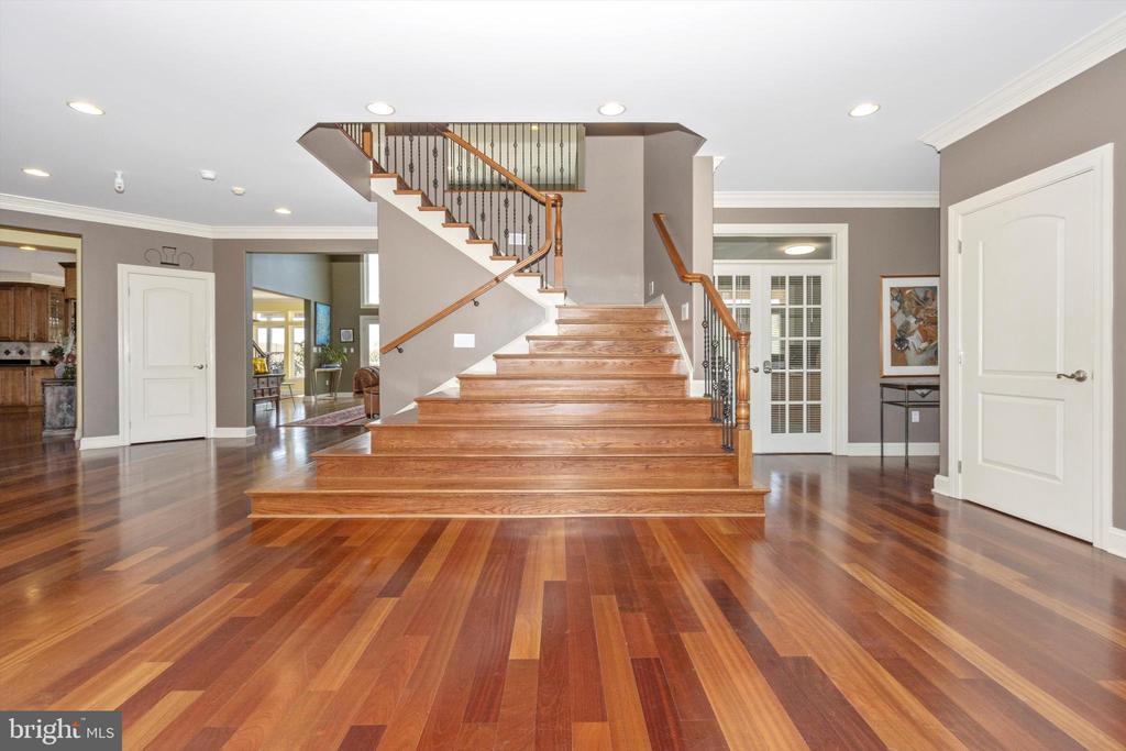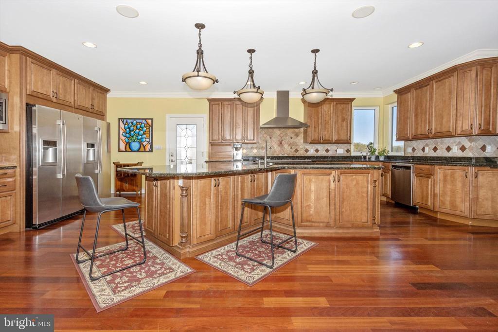 Welcome to one of Southern Frederick County’s most exceptional luxury estates, located in the highly sought-after Urbana High School district. This breathtaking property sits on over 1.4 acres of beautifully landscaped and fully fenced grounds, offering the perfect blend of rural serenity, timeless elegance, and refined functionality. As you arrive, a newly paved and sealed circular driveway framed by stunning stone columns creates a grand entrance and offers ample parking for guests. A detached one-car garage adds even more convenience and versatility. This stately home immediately captivates with its architectural presence and thoughtful design. Step through rich mahogany French doors into a gracious foyer with polished hardwood floors and fresh paint throughout. Natural light pours into every room, showcasing the home’s elegant craftsmanship, soaring ceilings, and high-end finishes. The flowing floor plan is both open and inviting, while still offering distinct spaces for entertaining, relaxing, and everyday living. At the heart of the home, the fully remodeled kitchen is a chef’s dream. It features sleek countertops, top-of-the-line stainless steel appliances, custom cabinetry, and an expansive island perfect for casual meals or conversation. The kitchen opens directly into the dramatic two-story great room, where towering windows frame idyllic views of the backyard and surrounding farmland. This home offers six generously sized bedrooms and eight bathrooms, including a luxurious primary suite that functions as a private sanctuary. Enjoy a separate sitting area, a walk-out deck overlooking wide-open fields, and a spa-like bathroom complete with a soaking tub, walk-in shower, and dual vanities. Every detail in this home is built for comfort and flexibility. The rough-in for an elevator on each floor—currently used as oversized closets—adds an incredible opportunity for future accessibility or multigenerational living. It’s a rare and thoughtful feature that truly future-proofs the home. The fully finished lower level offers over 2,500 square feet of additional living space and is ideal for extended family, guests, or even income-producing potential. It includes two bedrooms, a second fully remodeled kitchen, a large living space, a private theater room, and multiple separate entryways for added privacy and ease of access. Enjoy every season in the four-season conditioned sunroom, which brings the outdoors in with floor-to-ceiling windows, making it the perfect spot to sip your morning coffee or unwind with a glass of wine. Step outside and follow charming stone pathways that wind through lush gardens and lead to a fenced backyard oasis—ideal for entertaining, outdoor dining, or simply relaxing in complete privacy. This estate is also loaded with high-value upgrades: a brand-new roof, new well pump, a blue-light UV water filtration system, and a two-year-old hot water heater, all offering long-term peace of mind. These improvements blend seamlessly with the timeless architectural features and provide both modern convenience and enduring value. Located just minutes from Urbana’s vibrant town center, award-winning schools, shops, and commuter routes, this property offers a rare opportunity to own a luxurious, move-in-ready home in one of Frederick County’s most desirable areas. Whether you’re searching for a multigenerational estate, an entertainer’s paradise, or simply a peaceful retreat with room to grow, this is the one you’ve been waiting for.