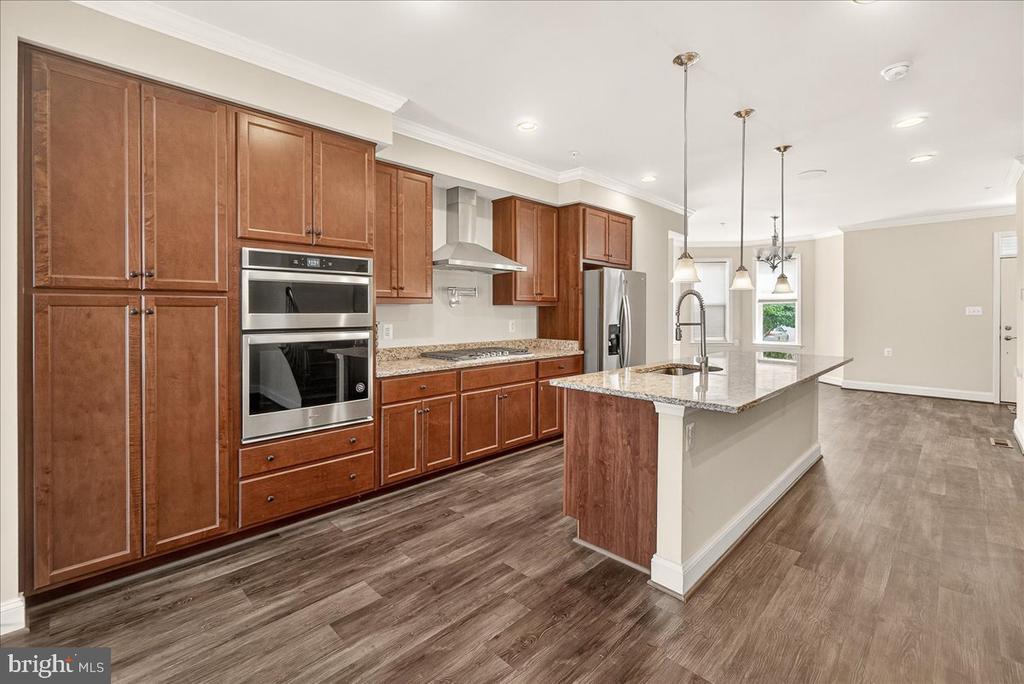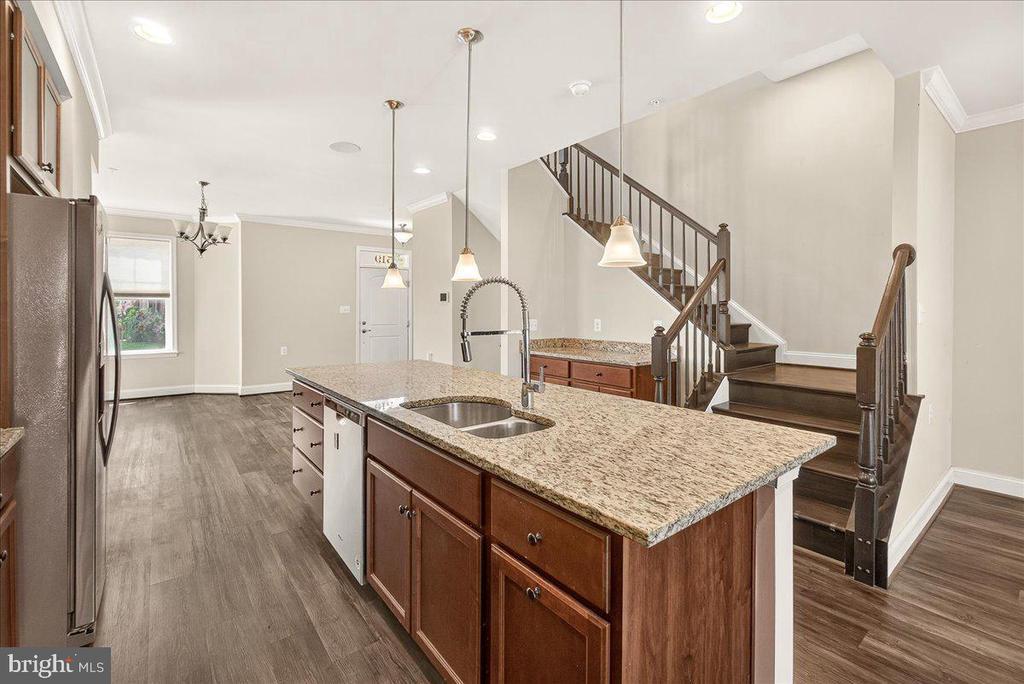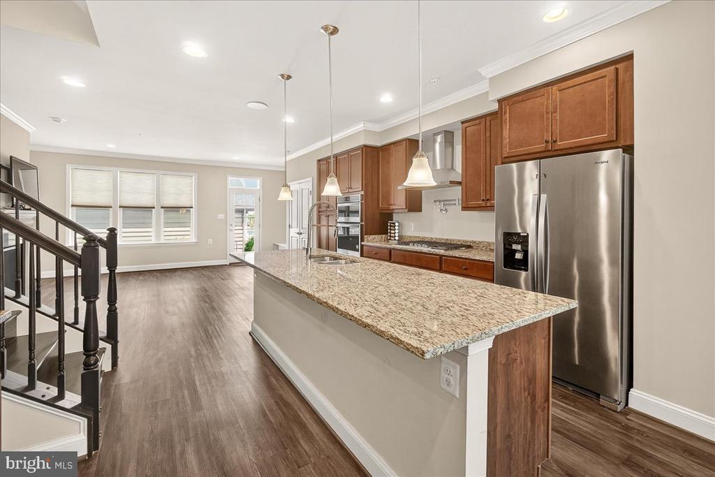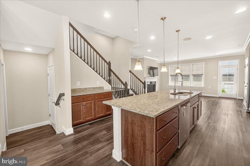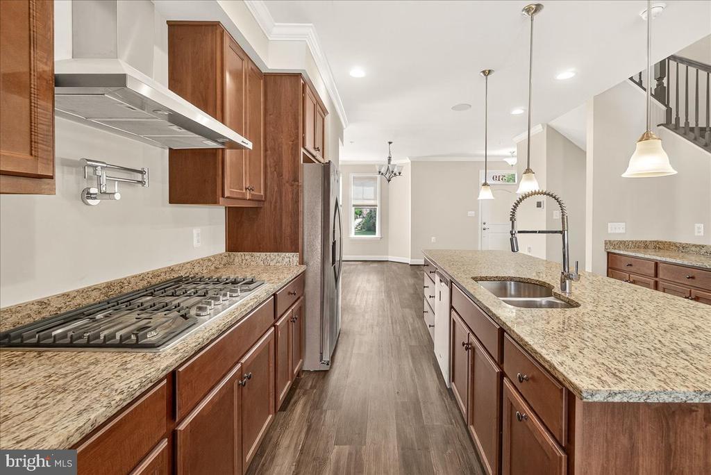 This "Ascroft" model, featuring 4 Bedrooms and 2 & 1/2 Baths, was built by Wormald, an award winning builder since 1964. All 4 levels have an extra 3 foot bump out giving additional square footage to enjoy. The best energy saving appliances and insulation package were used to help keep those utility bills down! You'll find upgrades such as granite island kitchen, a pot spigot above the stove for those who love to cook and marble counters in the bath rooms. This prime end unit lot not only provides more sapce, but it faces the neighborhood open space. For entertaining, there is a wet bar and additional balcony on the top level and stone patio off of the living room. The theater room in lower level contains a surround sound system that conveys. The top level can also easily serve as the 4th bedroom. Close to Historic Downtown Frederick but easy access to 70 and 15. This is a must see!