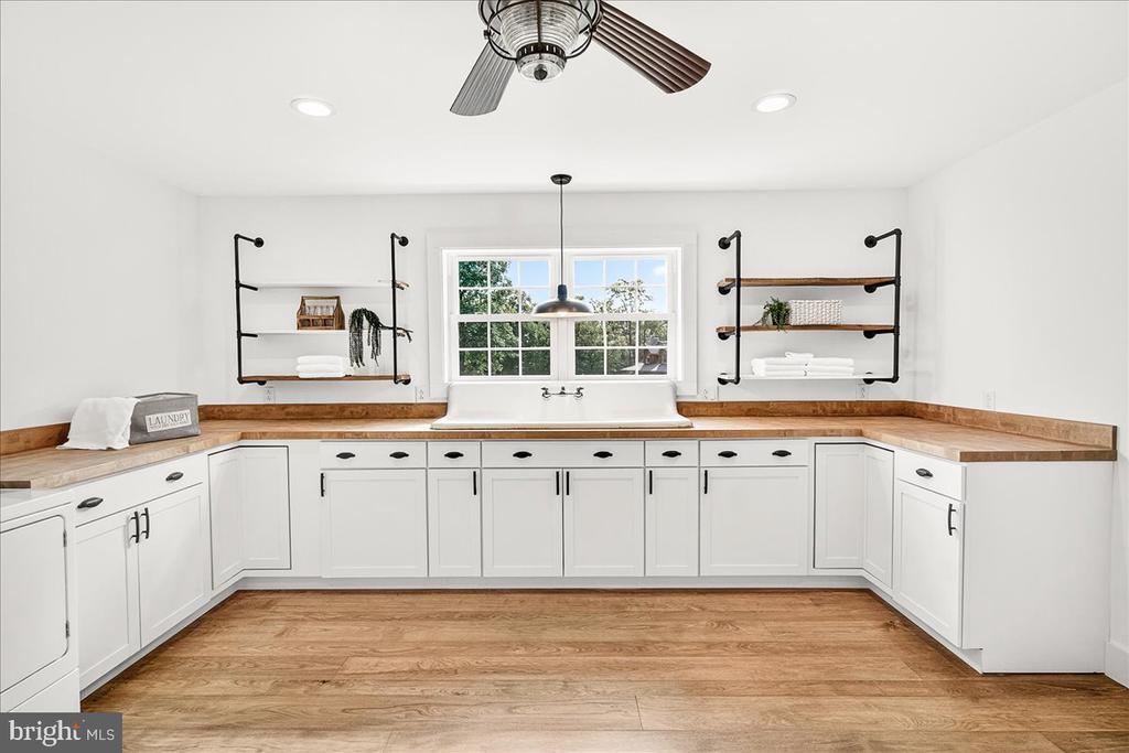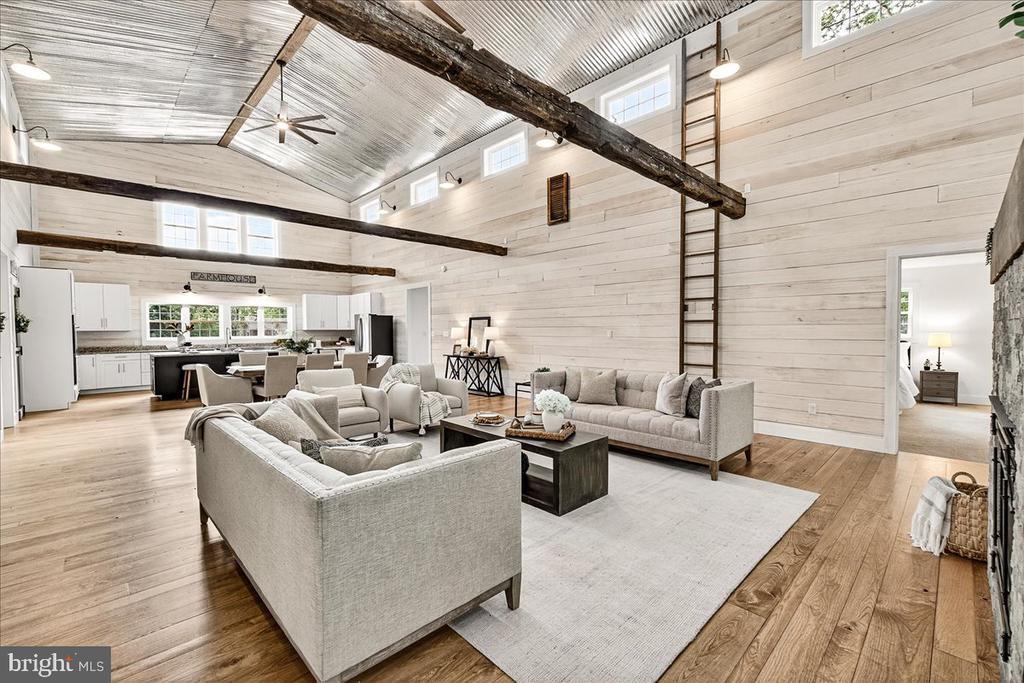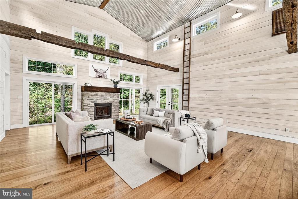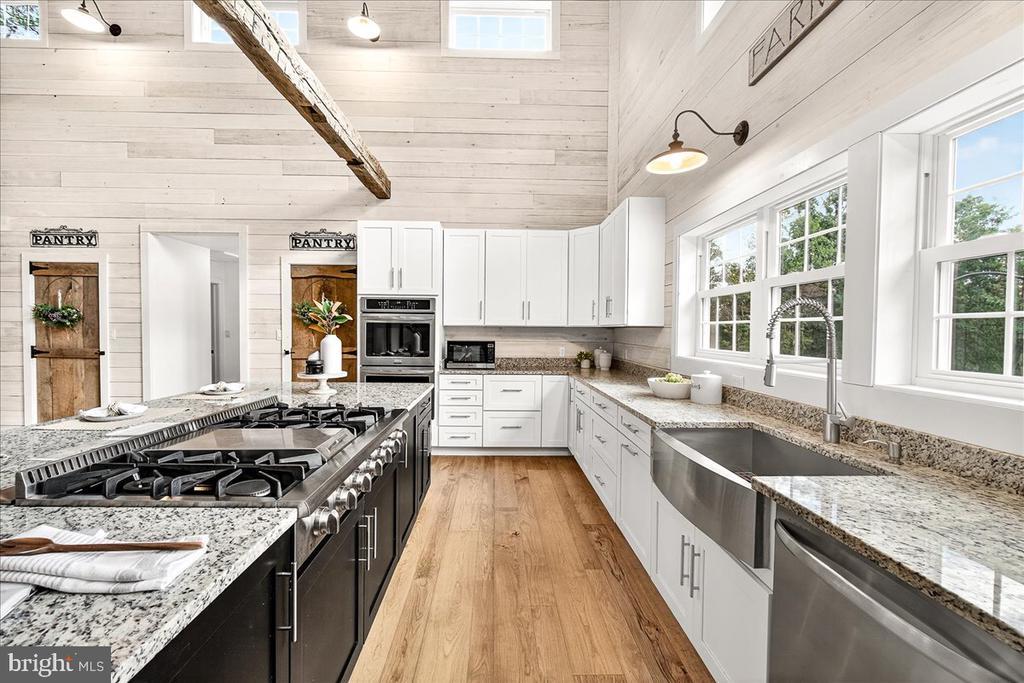 Welcome home to this custom-built, one-of-a-kind estate offering over 3.5 private acres on the coveted Frederick County side of Smithsburg. This dreamy, modern farmhouse features open-concept main-level living with three bedrooms, two and a half bathrooms, and a massive Great Room. The Great Room is a showstopper, boasting beautiful, vaulted tin ceilings complemented by custom repurposed wood cross beams. Abundant natural light floods the space through many upper-level windows, highlighting the gleaming hardwood floors. The rustic charm continues with shiplap walls throughout the main living area, perfectly balanced by fresh paint and new carpeting in the bedrooms and laundry room. The oversized chef's kitchen is a delight, featuring professional-grade appliances, an abundance of counter space, and stunning granite countertops. Retreat to the luxurious Primary Suite, complete with an ensuite full bath, a large soaking tub, and the comfort of heated tile floors (also in the second full bath). A spectacular, dedicated laundry room and a full, unfinished basement stand ready for your personal touch. The home offers modern convenience and peace of mind: enjoy a cozy evening by the gas fireplace with a thermostat, relax on the covered porch, perfect for additional living space, and park in the oversized attached two-car garage with built-in cabinets. Recent upgrades include a whole-house propane generator, a new roof, a newly paved driveway, and a new washer. Enjoy your private oasis, perfectly nestled in a wooded lot with mature trees. This exceptional property has it all! Schedule your private tour today before it's too late!