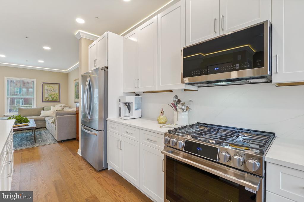 Stainless Steel Appliances, Dishwasher, Disposal, Icemaker, Microwave, Oven/Range-Gas, Refrigerator, Washer-front loading, Dryer-front loading, Washer/Dryer Stacked