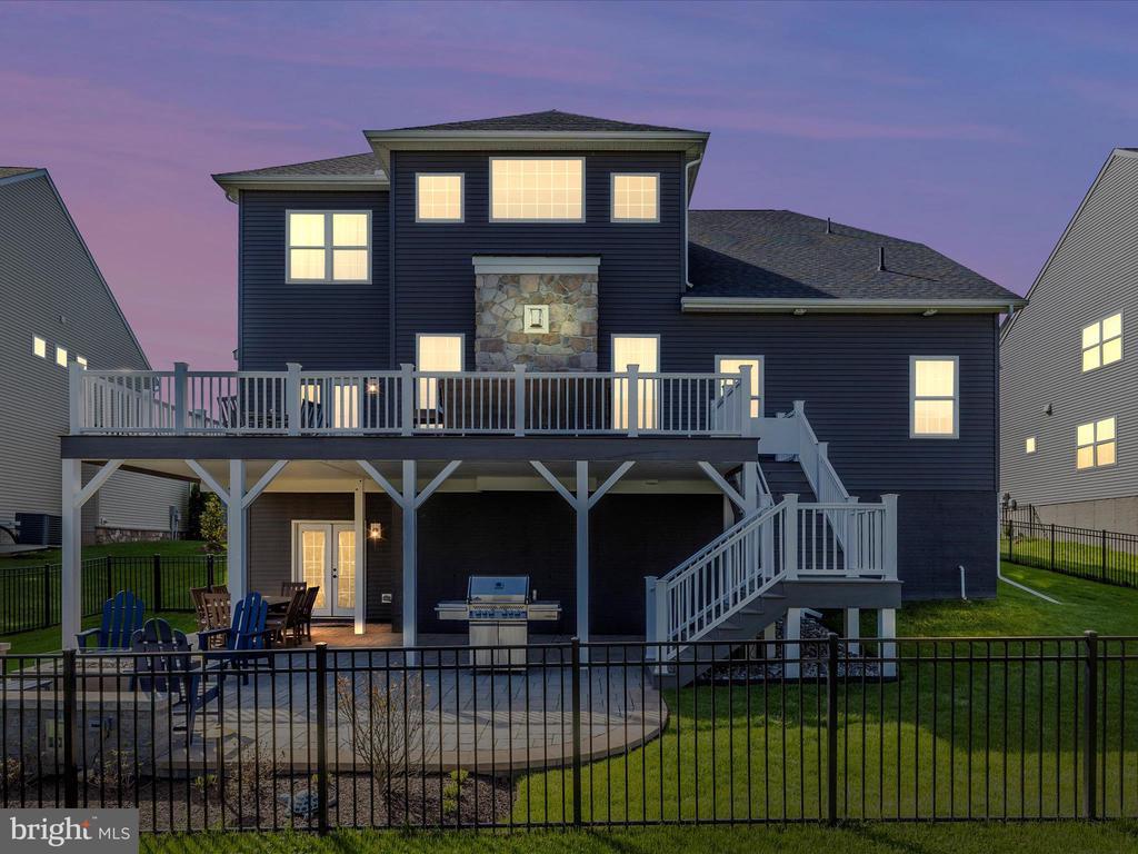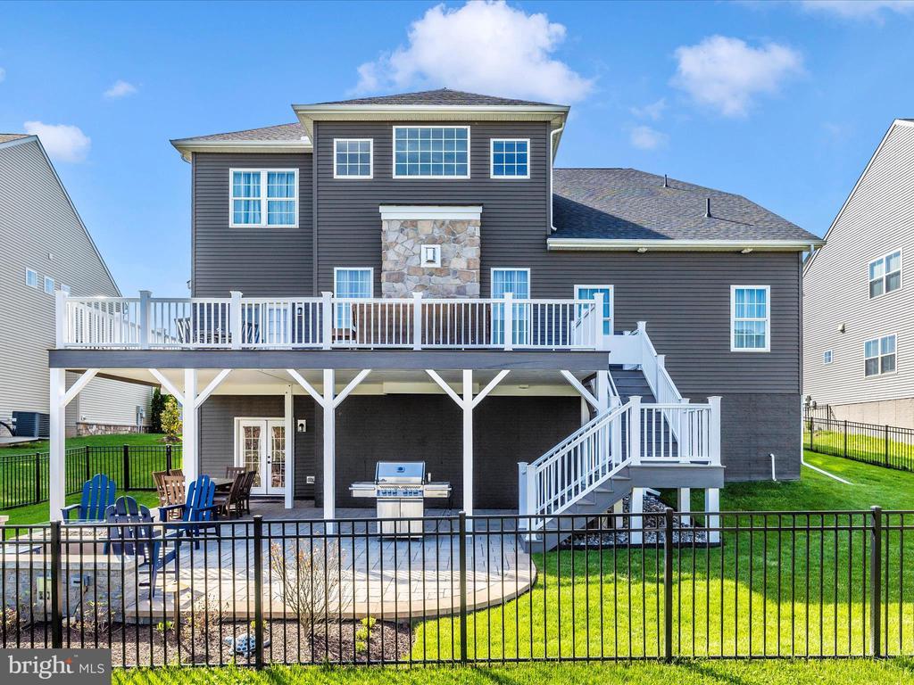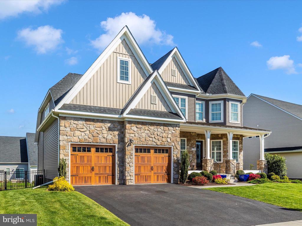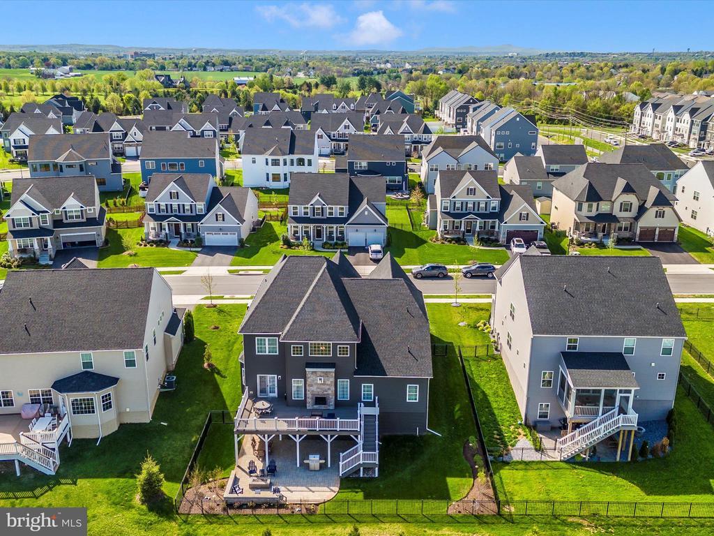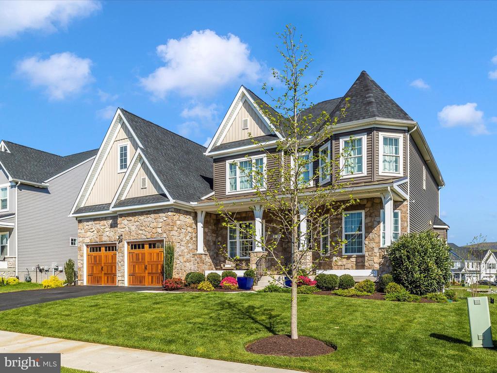 Welcome to this exceptional residence at 2729 Moon Shot Ln in the popular community of Kellerton, blending sophisticated design with modern functionality. The main level captivates with 10’ ceilings, rich hardwood floors, and abundant natural light. The two-story family room features a coffered ceiling, built-ins, and a dual-sided fireplace shared with the expansive rear deck. The gourmet kitchen boasts custom cabinetry, a grand island, quartz countertops, a farm sink, Wolf six-burner gas cooktop, wall oven, and a Sub-Zero refrigerator. Host elegantly in the formal dining room or work efficiently in the dedicated office. The main-level primary suite indulges with a spa-inspired bath, including twin vanities and a walk-in shower. The upper level offers three generously sized bedrooms and a versatile second-level family room. The lower level impresses with a wet bar, recreation room, and bonus room, ideal for entertaining. Extensive moulding and solid core two-panel doors elevate the home’s refined aesthetic throughout. Exterior living shines with a gracious front porch perfect for relaxing, a spacious rear deck accessed via glass doors from the kitchen, and a fully fenced rear yard. The deck, offering serene mountain views, descends to an expansive hardscape patio with a fire pit, creating an inviting outdoor retreat. Experience Kellerton’s premier amenities, just steps away, including a community pool, a clubhouse with exercise room, sidewalks, tot lots, pavilions, and a dog park. Ideally located with easy access to commuter routes and minutes from Downtown Frederick, this home delivers luxury and lifestyle in equal measure.