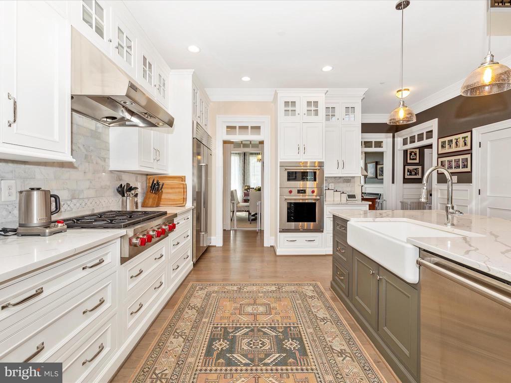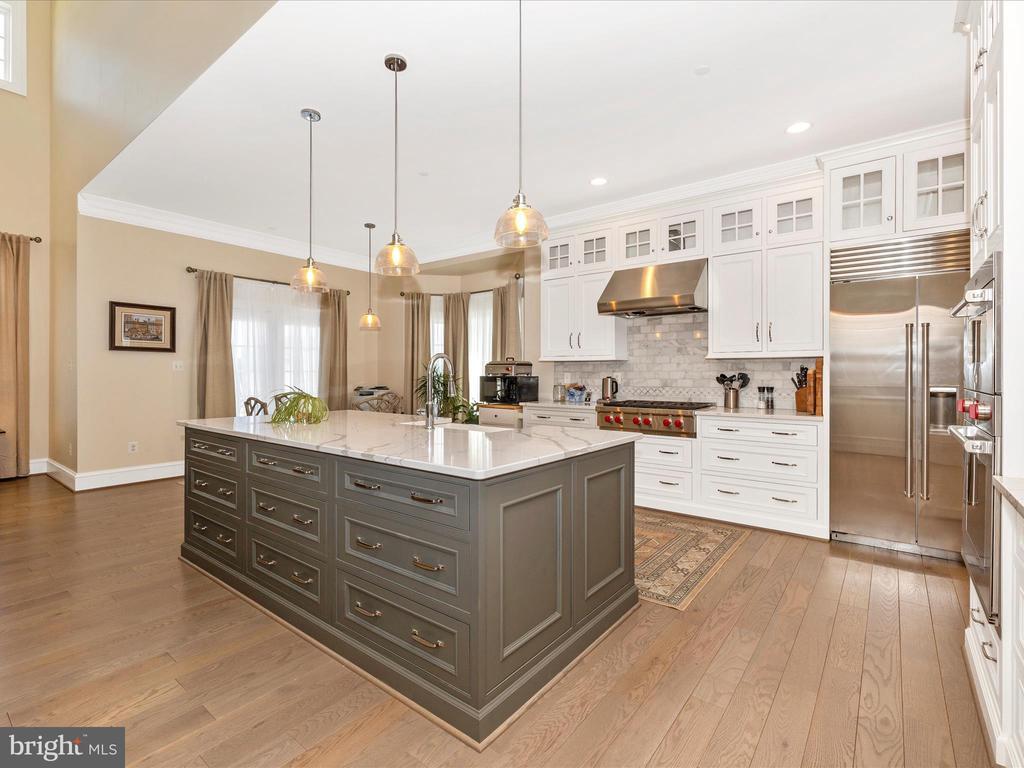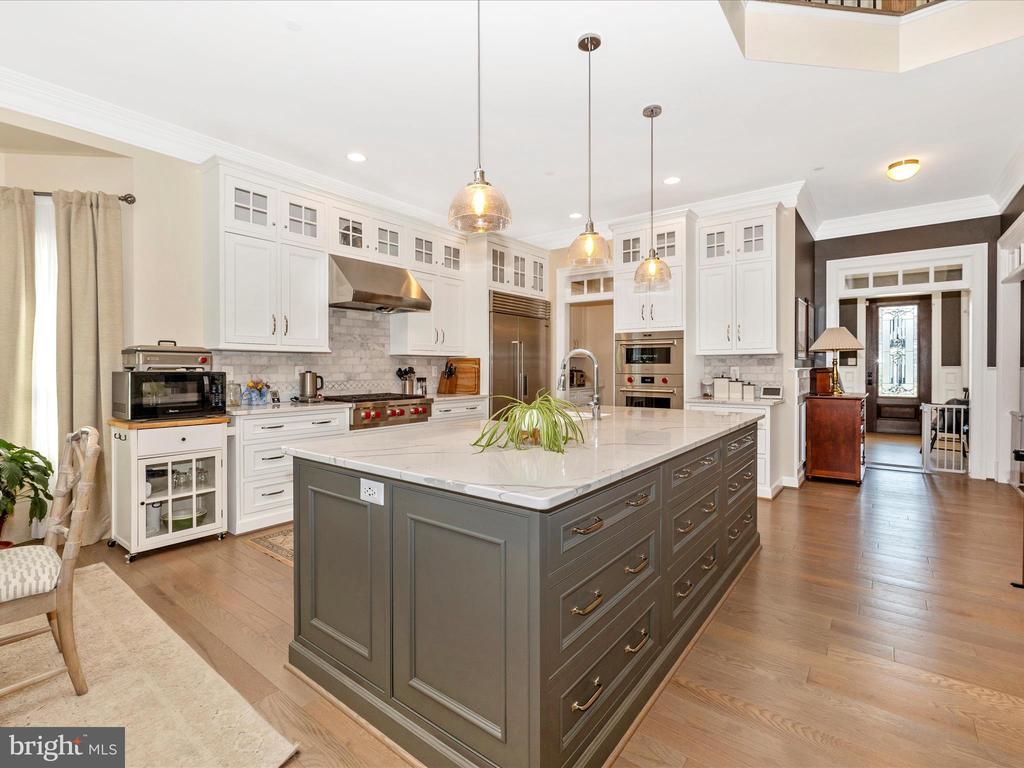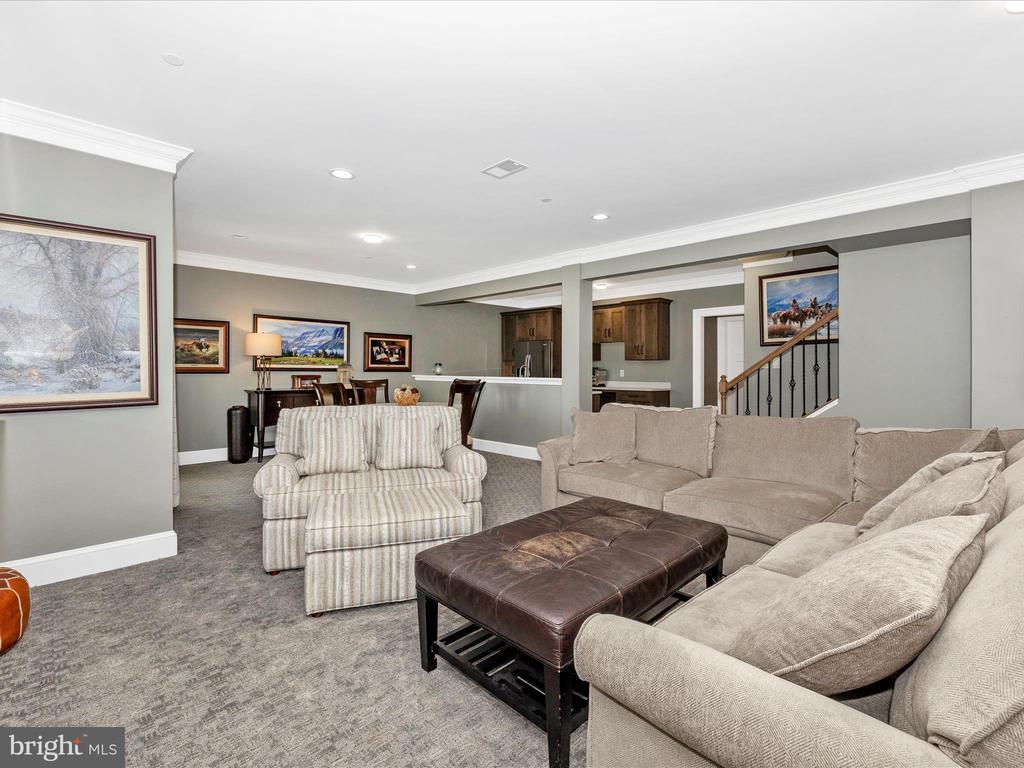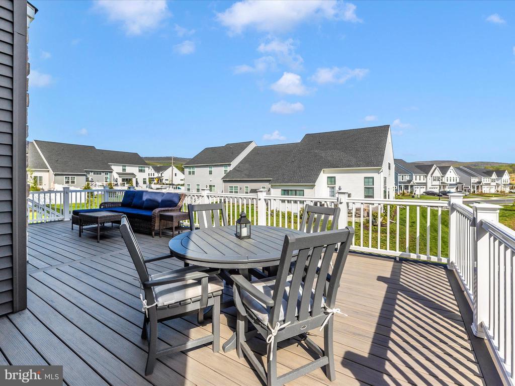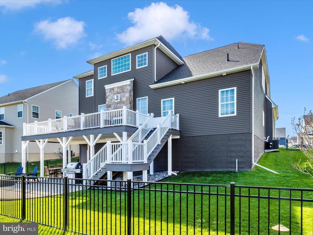 Welcome to this exceptional residence at 2729 Moon Shot Ln in the popular community of Kellerton, blending sophisticated design with modern functionality. The main level captivates with 10’ ceilings, rich hardwood floors, and abundant natural light. The two-story family room features a coffered ceiling, built-ins, and a dual-sided fireplace shared with the expansive rear deck. The gourmet kitchen boasts custom cabinetry, a grand island, quartz countertops, a farm sink, Wolf six-burner gas cooktop, wall oven, and a Sub-Zero refrigerator. Host elegantly in the formal dining room or work efficiently in the dedicated office. The main-level primary suite indulges with a spa-inspired bath, including twin vanities and a walk-in shower. The upper level offers three generously sized bedrooms and a versatile second-level family room. The lower level impresses with a wet bar, recreation room, and bonus room, ideal for entertaining. Extensive moulding and solid core two-panel doors elevate the home’s refined aesthetic throughout. Exterior living shines with a gracious front porch perfect for relaxing, a spacious rear deck accessed via glass doors from the kitchen, and a fully fenced rear yard. The deck, offering serene mountain views, descends to an expansive hardscape patio with a fire pit, creating an inviting outdoor retreat. Experience Kellerton’s premier amenities, just steps away, including a community pool, a clubhouse with exercise room, sidewalks, tot lots, pavilions, and a dog park. Ideally located with easy access to commuter routes and minutes from Downtown Frederick, this home delivers luxury and lifestyle in equal measure.