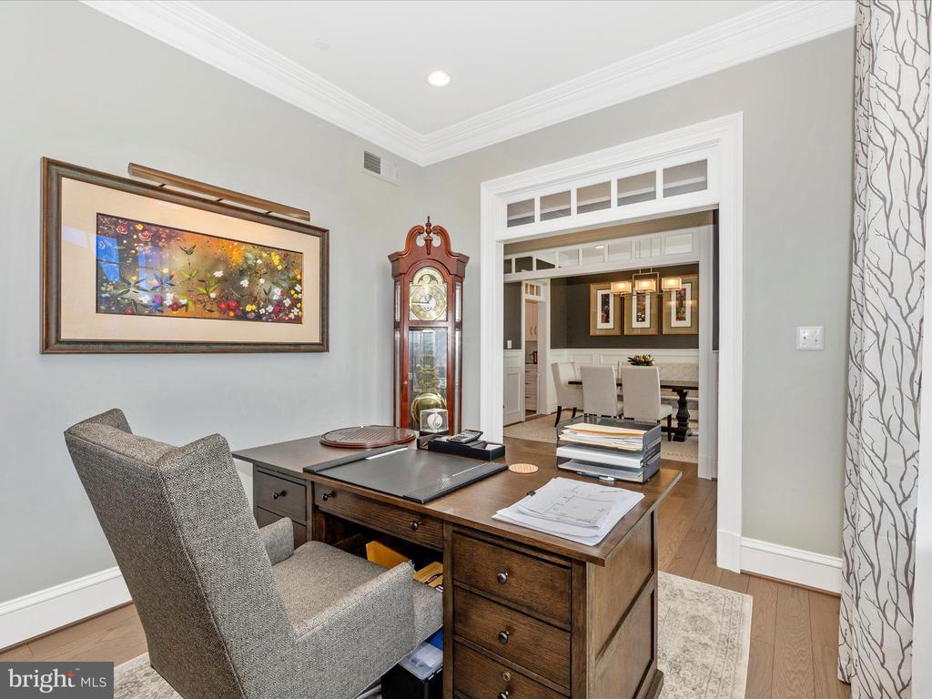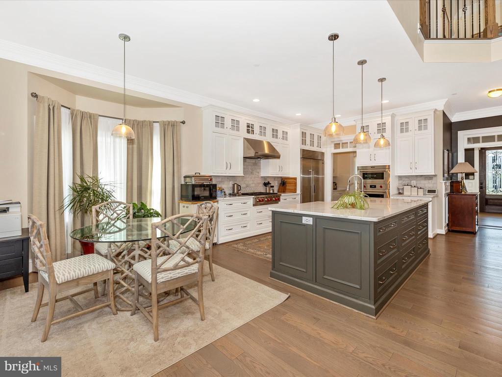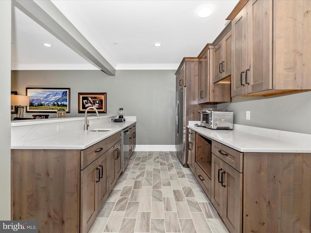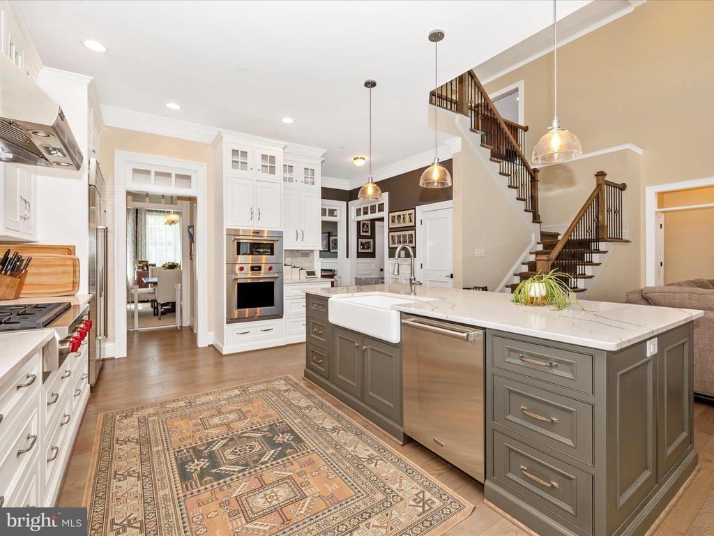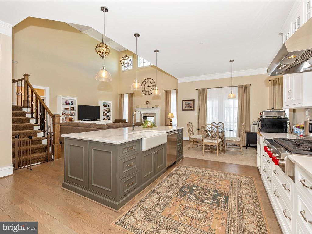 Welcome to this exceptional residence at 2729 Moon Shot Ln in the popular community of Kellerton, blending sophisticated design with modern functionality. The main level captivates with 10’ ceilings, rich hardwood floors, and abundant natural light. The two-story family room features a coffered ceiling, built-ins, and a dual-sided fireplace shared with the expansive rear deck. The gourmet kitchen boasts custom cabinetry, a grand island, quartz countertops, a farm sink, Wolf six-burner gas cooktop, wall oven, and a Sub-Zero refrigerator. Host elegantly in the formal dining room or work efficiently in the dedicated office. The main-level primary suite indulges with a spa-inspired bath, including twin vanities and a walk-in shower. The upper level offers three generously sized bedrooms and a versatile second-level family room. The lower level impresses with a wet bar, recreation room, and bonus room, ideal for entertaining. Extensive moulding and solid core two-panel doors elevate the home’s refined aesthetic throughout. Exterior living shines with a gracious front porch perfect for relaxing, a spacious rear deck accessed via glass doors from the kitchen, and a fully fenced rear yard. The deck, offering serene mountain views, descends to an expansive hardscape patio with a fire pit, creating an inviting outdoor retreat. Experience Kellerton’s premier amenities, just steps away, including a community pool, a clubhouse with exercise room, sidewalks, tot lots, pavilions, and a dog park. Ideally located with easy access to commuter routes and minutes from Downtown Frederick, this home delivers luxury and lifestyle in equal measure.