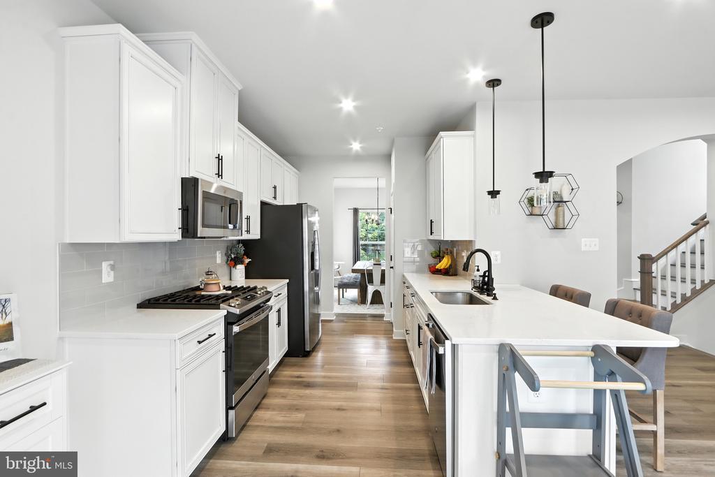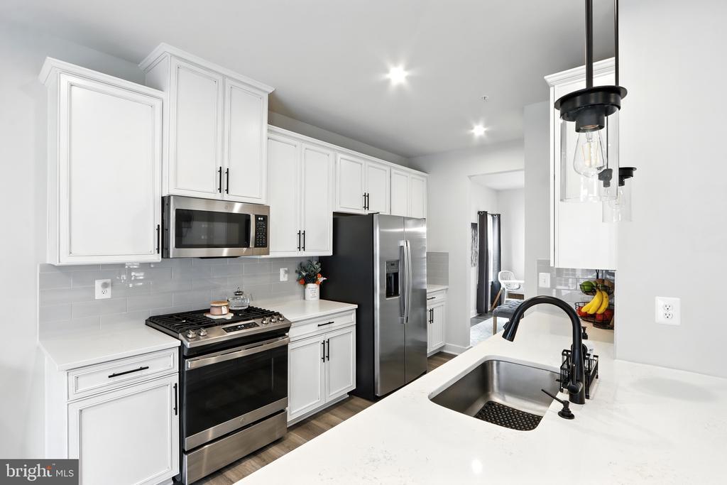 Just listed and move-in ready! This 2023-built home offers 4 bedrooms, 3.5 bathrooms, and a thoughtfully designed layout perfect for modern living. The main level welcomes you with a bright living room featuring a cozy gas fireplace, a sun-filled dining area, and a chef’s kitchen complete with quartz countertops, a breakfast bar, stainless steel appliances, and ample cabinet space. A dedicated office and convenient half bath add to the functionality of the first floor. Upstairs, you’ll find three spacious bedrooms and two full bathrooms, including a primary suite with a tray ceiling, walk-in closet, and a spa-like bath with double vanity and walk-in shower. The second full bath includes a quartz countertop, ceramic tile, and a tub, while the upstairs laundry room with storage makes daily living easy. The finished lower level expands your living space with a large family room, an additional bedroom, full bathroom with upgraded vanity and ceramic tile, plus a utility room with extra storage, a tankless water heater, and a gas furnace. Outside, enjoy a fully fenced backyard with a patio—perfect for entertaining—along with a 2-car garage. Ideally located near Baker Park, the community playground, and downtown Frederick, this home blends comfort, style, and convenience. Schedule your private showing today!