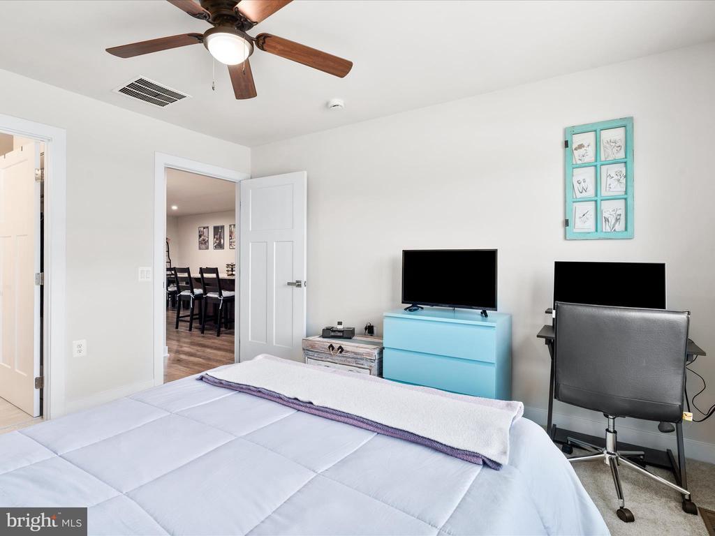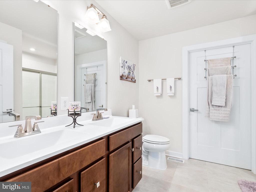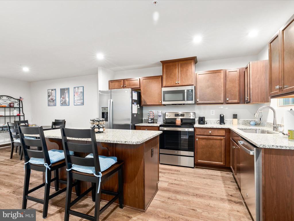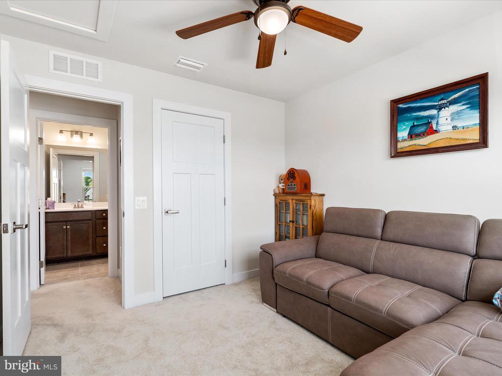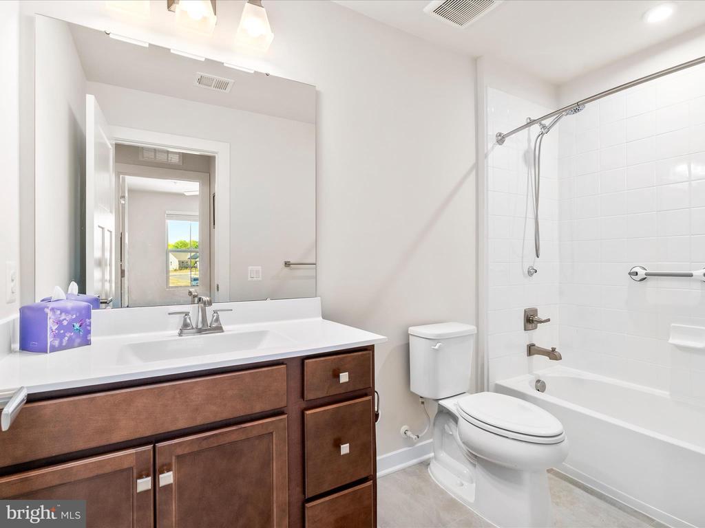 Welcome to Bloomfields, Frederick’s premier 55+ active adult community where resort-style amenities and a vibrant lifestyle come together. This like-new, 2-year-old Nassau Villa offers comfort, privacy, and convenience — without the wait of new construction. Thoughtfully designed for low-maintenance living, this home includes lawn care and snow removal, allowing you to spend more time enjoying life and less time on upkeep. Step inside to a bright, open floor plan centered around a beautiful kitchen with a spacious entertaining island, granite countertops, upgraded cabinetry, and wide-plank LVP flooring that flows throughout the main level. The private first-floor primary suite features a generous walk-in closet and full bath, while upstairs, two additional bedrooms and a full bath provide space for guests or hobbies. The walkout lower level offers exciting potential for future finished living — already framed with a rough-in bath and walkout to a private patio, ready for your personal touch. Extend your living outdoors with the screened, covered porch, a peaceful spot for morning coffee or evening relaxation overlooking the tranquil grounds of Homewood at Crumland Farms — a beautifully maintained neighboring retirement community that enhances both privacy and serenity. Enjoy the convenience of a one-car garage and all that Bloomfields offers: dog parks, community gardens, walking trails, and more. A clubhouse and outdoor pool are coming soon, further enhancing the resort-like feel of this sought-after neighborhood. Located just minutes from Wegmans, coffee shops, restaurants, and healthcare, this home strikes the perfect balance between tranquility and easy access to daily conveniences. Why wait to build? Move in now and start living the lifestyle you’ve been looking forward to — at an unbeatable value.