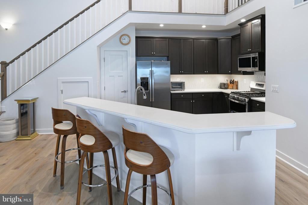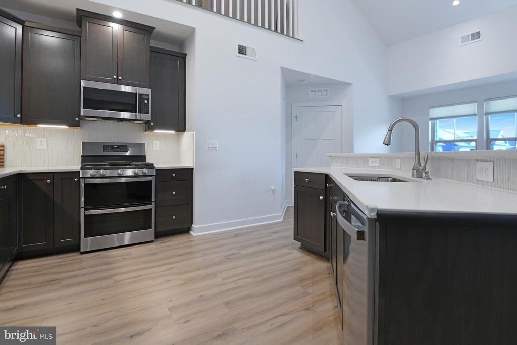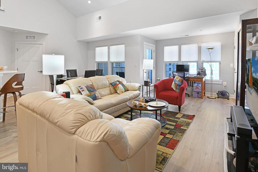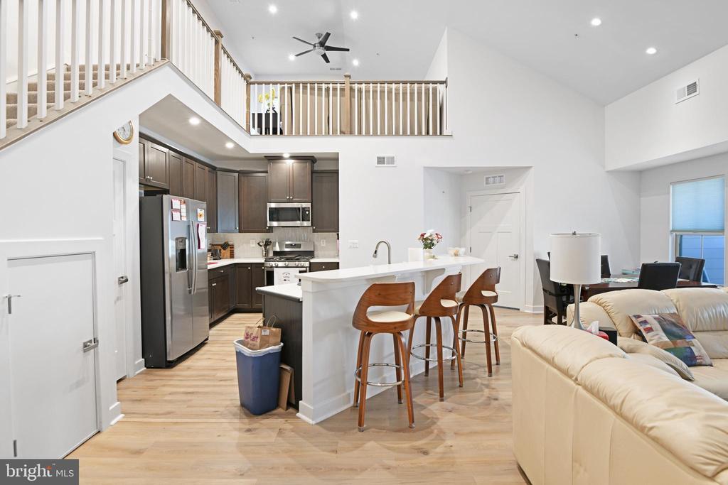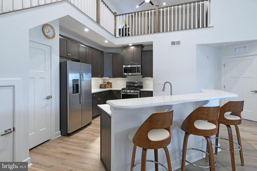 Here's your opportunity to own one of the highly sought-after penthouse condos in the Woodlands of Urbana, Maryland's premiere 55 plus community! These penthouse condos rarely come on the market-- so don't miss your opportunity! With grand 19-foot high volume ceilings, an open concept floorplan and upstairs loft, this beautifully upgraded home offers over 1,700 square feet of refined living space. The smart floorplan features two large bedrooms and two ensuite bathrooms--each tucked away in their own corner of the home for optimal privacy. The gourmet kitchen features upgraded 42" cabinets, a custom tile backsplash, stainless steel appliances, quartz countertops, and a large island with a breakfast bar. The kitchen is seamlessly connected to the living and dining areas, creating the ideal space for both entertaining guests and everyday living. From the light-filled living area, step outside to the private covered balcony–your outdoor retreat. The standout feature of this condo is the added loft—perfect for use as an additional entertaining area, TV watching or reading area or even a play zone! The Primary Bedroom Suite is a luxurious escape with two large closets and an ensuite bathroom with a dual quartz vanity, a large tiled shower with a convenient built-in bench, and a linen closet for extra storage. The equally spacious secondary bedroom features a large closet and an ensuite bathroom with an upgraded quartz vanity and a custom tile tub/shower combo. All this, plus a laundry room, a convenient coat closet in the entry and an expansive walk-in storage closet. The oversized one-car garage provides space for your vehicle and additional storage needs. Access the elevator from your garage via a short hallway. The amenities for residents of the Woodlands are truly exceptional, and include a heated pool, fantastic clubhouse with billiards, a poker room, kitchen, extensive gym, yoga/exercise studio, golf simulator, and meeting rooms for the myriad of community and group activities. Plus, you can enjoy walking trails, pickleball, bocce courts, an herb garden, covered pavilions, putting green and two dog parks! This condo is conveniently located near all of the great features of Urbana including a grocery store, restaurants, library, senior center, doctor’s offices, YMCA and multiple parks--making it easy to enjoy everything the area has to offer. Schedule your showing today!