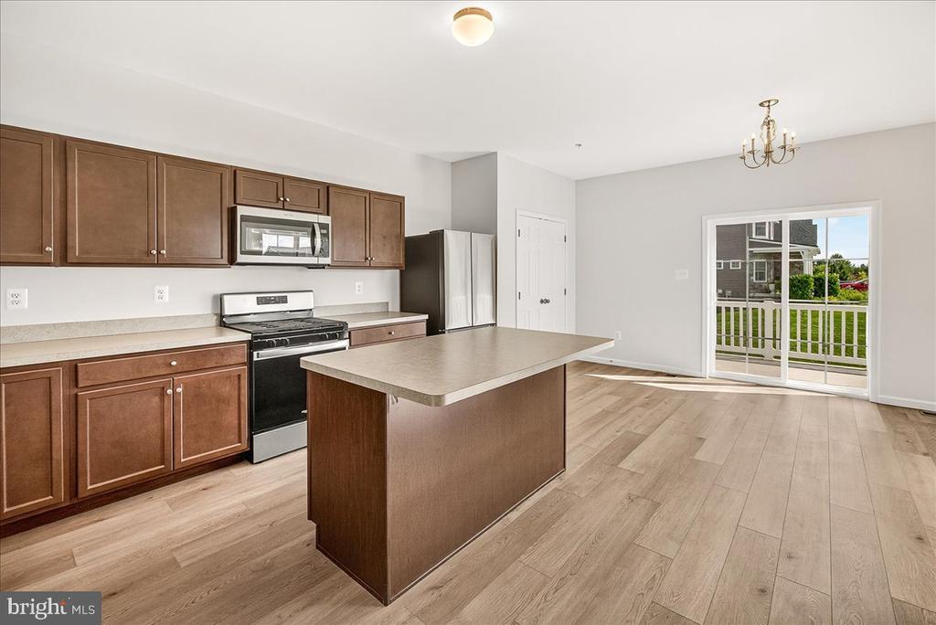 Experience modern comfort in this spacious, never-lived-in end-unit townhome located in one of Frederick’s most desirable neighborhoods. The entry level features a foyer with a coat closet and access to an oversized two-car garage that has been upgraded with sleek flooring and a clean, finished look that adds both style and functionality. The main living area, located on the second floor, offers durable engineered plank flooring throughout and a bright, open floor plan that includes a spacious living room, a kitchen with ample storage, a dining area, and a convenient powder room. The upper level features the primary bedroom with a walk-in closet and an en-suite bathroom with dual vanities. Two additional bedrooms, a full bathroom, and a conveniently located laundry room complete this level. Kellerton is a luxurious, equestrian-inspired community offering premium amenities such as a clubhouse, swimming pool, walking trails, playgrounds, fitness center, dog park, and basketball court. Don’t miss your opportunity to own this beautiful Kellerton townhome!