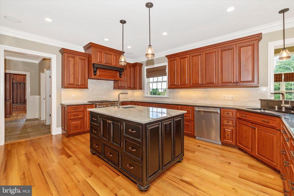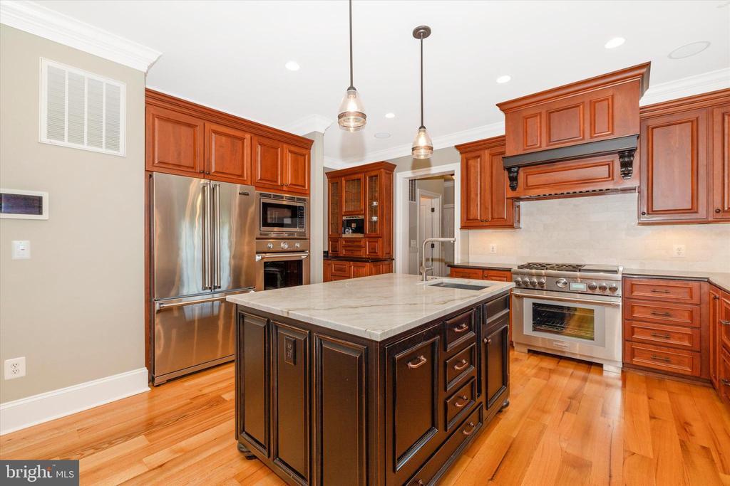 Welcome home to 10036 Old Frederick Terrace! This stunning property features a breathtaking 4-level 5 bedroom 4 1/2 bathroom main residence, a detached oversized 3-car garage with a 1 bedroom 1 bathroom 1,100 square foot upper level accessory unit, and an extraordinary outdoor entertainment space like you've never seen before! First, stepping into the entry level of the main residence you'll find gorgeous newly refinished hardwood floors spanning your formal living and dining rooms, incredible gourmet kitchen with high-end Viking and Thermador appliances, and inviting sunroom. The main level also features an enormous pantry, spacious mud room with laundry, and guest half bath. Making your way to the first upper level you'll find your primary suite with dual walk-in custom closets and private full bath, a secondary bedroom suite with private full bath, plus a third and fourth bedroom with shared full bath. The second upper level offers a rec area and additional bedroom suite with private full bath. The lower level of the home is unfinished, but offers endless possibilities with elevated ceilings, a fireplace, and a rough in for a full bath and wet bar. Making your way outside you'll fall in love with the incredible outdoor space featuring a deck, spacious patio, hot tub, custom fireplace, a billiards garden, and a sprawling yard with a dense tree-line for privacy. The oversized detached 3 car garage offers plenty of space for a business owner or car enthusiast, with a surprisingly luxurious upper level accessory unit featuring a large living area, secondary kitchenette, bedroom and full bathroom. This truly one-of-a-kind property offers all of this in a convenient location, just off Route 15, less than 15 minutes from Downtown Frederick, plus there's no HOA! Don't miss out on your chance to call this stunning property your very own!