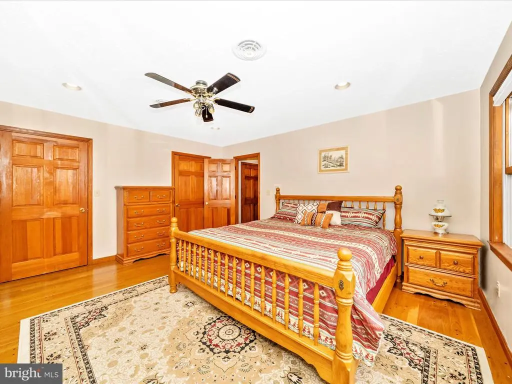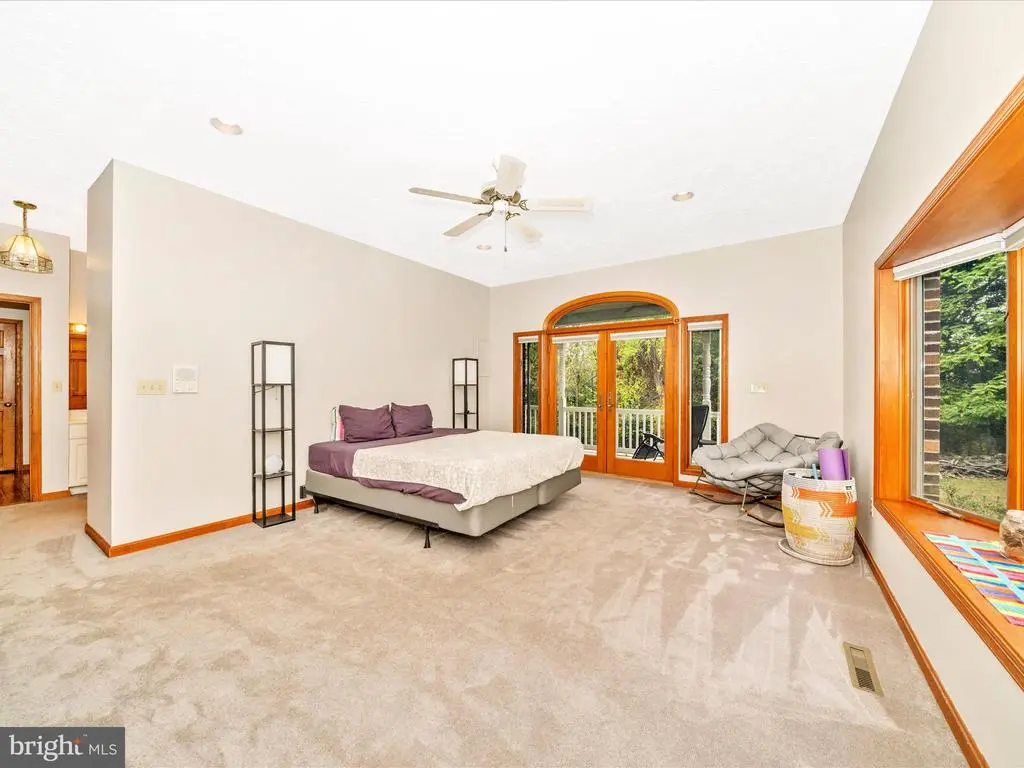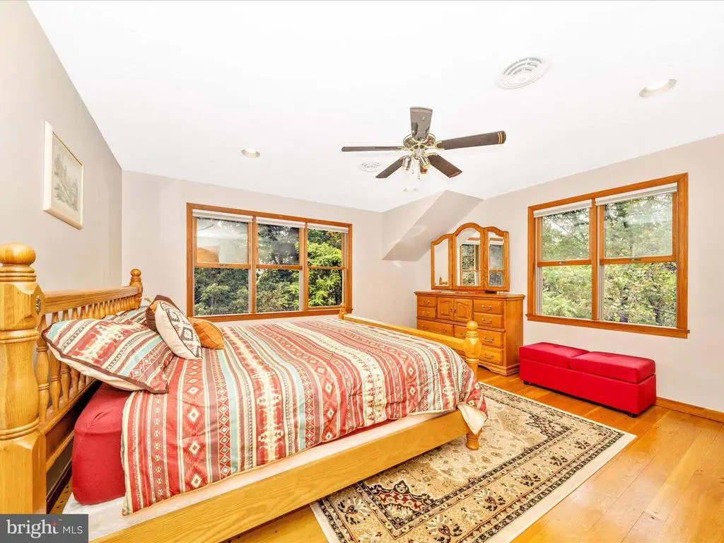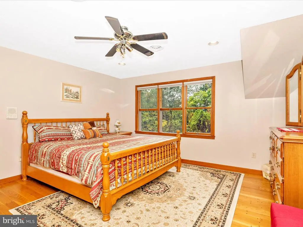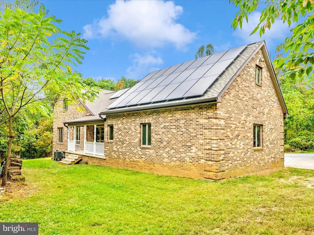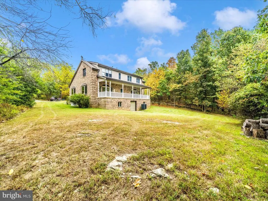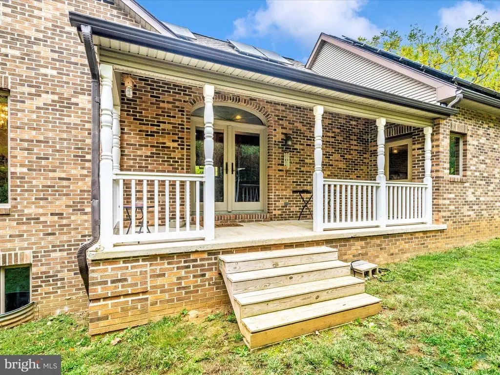 Welcome to Everlee Acres, a secluded estate nestled on over 57 acres of mature woodland in North Frederick County, near Cunningham Falls State Park and other recreational destinations. This all-brick Cape Cod offers more than 3,000 square feet of finished living space, with a spacious main-level primary suite featuring a private bath and French doors that open to a full-length covered porch. The home showcases oak floors with wood pegs, solid wood doors, and large Andersen windows in every room, offering panoramic views of the surrounding forest. The main level includes a formal living room, dining room, and a family room or study, 2 half baths with a rough-in for a wet bar. A second deep porch off the kitchen provides a perfect setting for outdoor dining and entertaining. The recently updated kitchen features solid cherry cabinetry, granite countertops, a custom tile backsplash, stainless steel appliances, and a cleverly designed pantry with hinged storage. Upstairs, three additional bedrooms and a full bath are accessed via a dramatic oak staircase. Each bedroom includes deep closets, and the fourth bedroom or home office offers walk-in access to the attic for additional storage. The walk-out basement spans over 2,000 square feet and includes full-size windows, a rough-in for a future full bath, and a multi-fuel HVAC system designed to run on electricity, propane (buried, owned tank), oil, and wood. A separate heat pump serves the second floor, and an on-demand tankless water heater is available if desired. The home is wired with a Generac backup generator and includes owned solar panels with documentation available for review. A solar water heater is also present in the lower level but is not currently installed. The roof was replaced in 2021, and the solar panels were reinstalled at that time. Additional features include fiber optic internet access, a ChargePoint HomeFlex Level 2 EV Charger in the attached garage, and flat pasture and garden space behind the NEW multi-car garage pole building—ideal for growing produce or establishing a hobby farm. The property also includes a historic outbuilding, scenic trails, and natural stone formations. Everlee Acres offers a rare opportunity to own a private retreat with modern amenities, energy independence, and endless potential. Whether you're seeking a homestead, equestrian property, or peaceful escape, this extraordinary home is ready to welcome you.