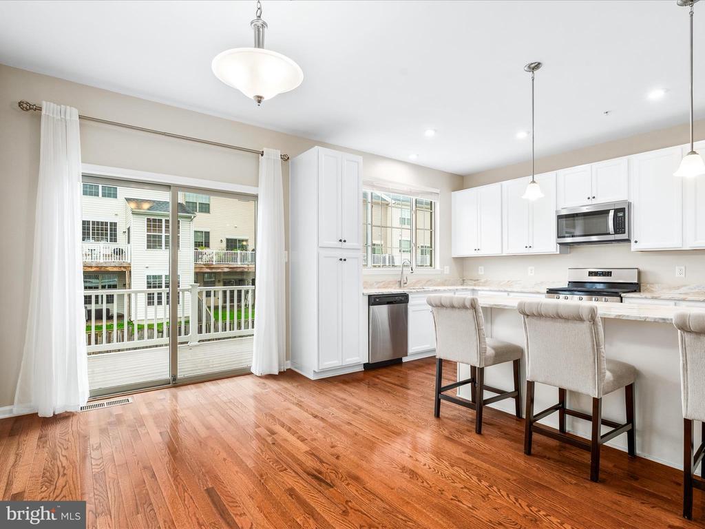 Welcome to this beautifully maintained Surrey model townhome by Drees Homes, located in the highly sought-after Tallyn Ridge at Pinecliff Park. This bright and spacious home offers an ideal blend of comfort, style, and functionality. As you enter, you're greeted by luxury vinyl plank flooring on the lower level, providing durability and a modern look. The hardwood stairs, added in 2024, lead you to the open-concept main level, which features prefinished hardwood flooring throughout the kitchen, dining, and living areas. A large second family room with oversized windows floods the space with natural light, creating an inviting atmosphere. The gourmet kitchen is a chef’s dream, showcasing stunning fantasy brown granite countertops, elegant linen-colored cabinetry, a gas stove, and a large center island perfect for meal prep, casual dining, or entertaining. The eat-in dining area offers additional space for everyday living and gatherings, and it leads to a generous maintenance-free deck—ideal for outdoor dining or relaxing. Upstairs, the primary suite provides a peaceful retreat with an en-suite bathroom and ample closet space. Two additional bedrooms share a well-appointed full hall bath, and the laundry is conveniently located on the bedroom level. The lower level features a full bathroom and offers flexible space for 4th bedroom, home office, guest suite, or recreation area. This home also includes a one-car garage with additional driveway parking. Step outside to a beautifully landscaped and fully fenced backyard complete with a paver patio and a storage shed, creating the perfect space for entertaining, gardening, or play. With 9-foot ceilings throughout, this home feels open and airy on every level. Located just steps from Pinecliff Park, residents of Tallyn Ridge enjoy access to community amenities including a pool, tot lots, and scenic walking trails.