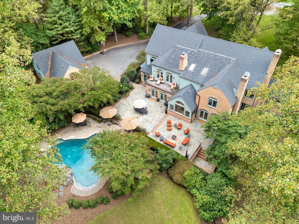 Elegant Georgian Revival Estate with Pool, Elevator, ADU & Five-Car Garage! Experience timeless elegance in this Georgian Revival estate offering over 11,000 square feet of gross living area, with 5 bedrooms, 7.1 baths, and 6 fireplaces. Every space has been thoughtfully designed to combine classic architecture with modern luxury. The home is introduced by a park-like setting with expansive grounds, mature landscaping, and the shadows of tall trees. Its brick front elevation is enhanced by keystone accents above the windows, brick walkways leading to the entrance, a slate-style roof, and traditional copper half-round gutters with round downspouts. At the rear, a private gated brick walkway leads to a landscaped courtyard with a bluestone patio, a decorative balcony overlooking the gardens, and a striking combination of brick and painted wood siding that adds character and dimension. Inside, a dramatic imperial double staircase with a chandelier centerpiece makes a grand first impression. The main level offers a private in-law suite, while the primary bedroom overlooks the pool and opens to its own balcony with a fireplace. Each bedroom is served by its own full bath, ensuring comfort and privacy. The gourmet kitchen is equipped with KitchenAid appliances installed in 2013, including a five-burner gas cooktop, three wall ovens, and a built-in refrigerator. A residential elevator provides convenience and accessibility throughout all levels. The lower level is designed for entertaining, featuring an exercise room, a spacious recreation room with a kitchenette, a den, storage, and a full bath. Outdoor living is centered around the seller’s favorite feature—a 44,000-gallon saltwater pool that is nine feet deep with a gunite finish, diving board, and waterfall. With complete wooded privacy, Rockcustic outdoor speakers, and the relaxing sound of the waterfall, this backyard feels like a private retreat. For car enthusiasts and those in need of flexible space, the property includes garage parking for five vehicles, with a two-car attached garage and a detached three-car garage with a finished accessory dwelling unit above, perfect for guests, a studio, or office space. This estate captures the best of both worlds—historic character and modern amenities—offering a lifestyle of comfort, luxury, and privacy in a truly park-like setting.