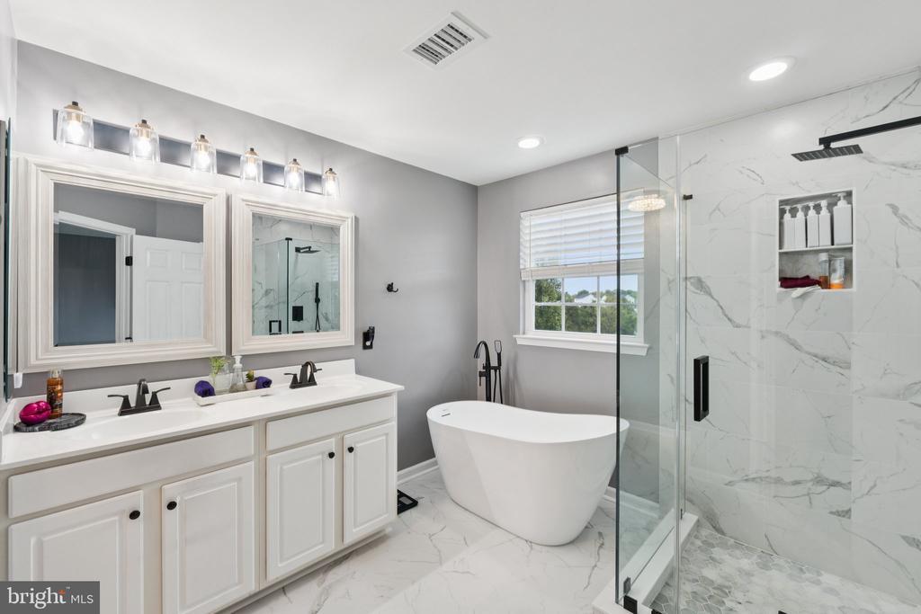 Stylish, Updated, and Move-In Ready End-Unit Townhome! Prepare to fall in love with the luxurious primary suite — your private retreat featuring soaring cathedral ceilings, a huge walk-in closet, and a beautifully updated SPA-INSPIRED BATH showcasing a freestanding soaking tub, frameless glass shower, and dual vanities with elegant finishes. Every detail has been thoughtfully updated in 2025 to create an refined and relaxing space. The home’s freshly painted interior, refinished hardwood floors, and brand-new carpet (all completed in 2025) set the stage for stylish living. The bright and open main level welcomes you with a cheerful foyer, a modern powder room with pedestal sink, and a sun-filled living room that flows seamlessly into the gourmet kitchen. Enjoy gas cooking, an island with breakfast bar, and a spacious dining area with French doors leading to a low-maintenance deck — perfect for entertaining or simply relaxing with scenic views of Frederick County. Upstairs, two additional bedrooms share a beautifully updated full hall bath with modern flooring and lighting. The finished walkout basement adds even more versatility, featuring a large recreation room ideal for movie nights, workouts, or play — plus a lovely laundry room with recent renovations (2025), ample storage, and a rough-in for a future full bath. This home has been meticulously maintained with numerous upgrades, including: **Renovated primary bathroom (2025)** **Refrigerator (2021), Dishwasher (2023), Microwave (2024)** **New roof with architectural shingles (2018)** **Fresh paint and flooring throughout (2025)** Enjoy the numerous community amenities, including a pool, clubhouse, playgrounds, and doggie stations, along with plenty of parking for owners and guests and HOA-MAINTAINED LAWNS. Outdoor enthusiasts will love the miles of paved sidewalks and bike-friendly streets, plus proximity to the Frederick Watershed for hiking, biking, and fishing — just 8 minutes away. This home is also conveniently located near commuter routes and everyday essentials: only 6 minutes to Sheetz, 11 minutes to Wegmans, and right around the corner from the brand-new state-of-the-art Yellow Springs Elementary School opening August 2026. This stunning end-unit townhouse offers the perfect blend of modern updates, prime location, and effortless style — move-in ready and waiting for you! Come take a look during the OPEN HOUSE on Sunday, Ocotber 26th from 12pm - 2pm.